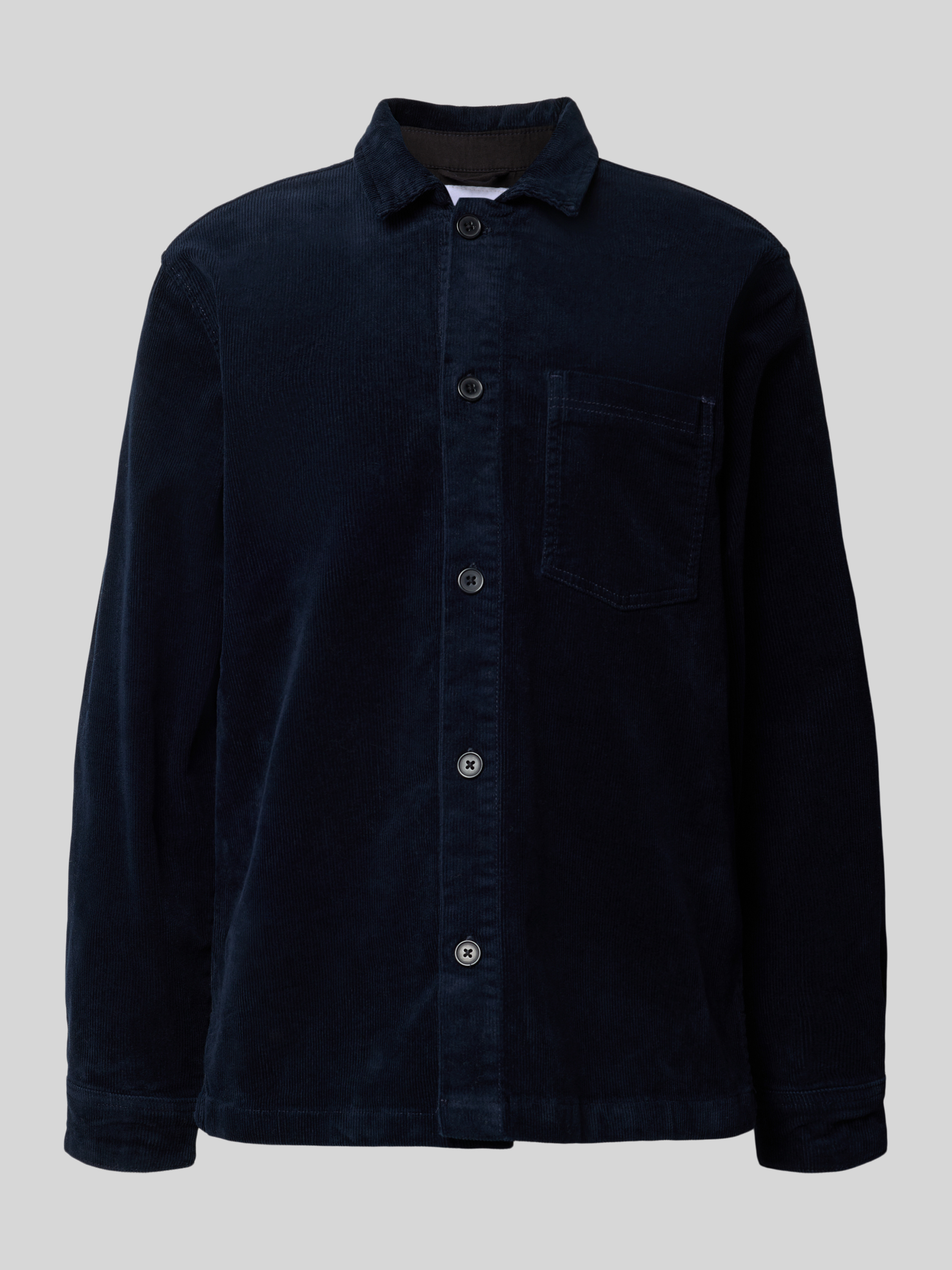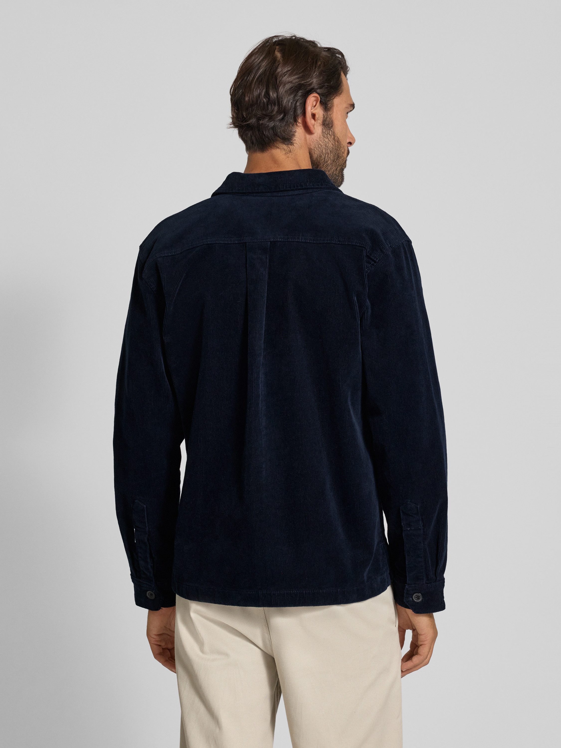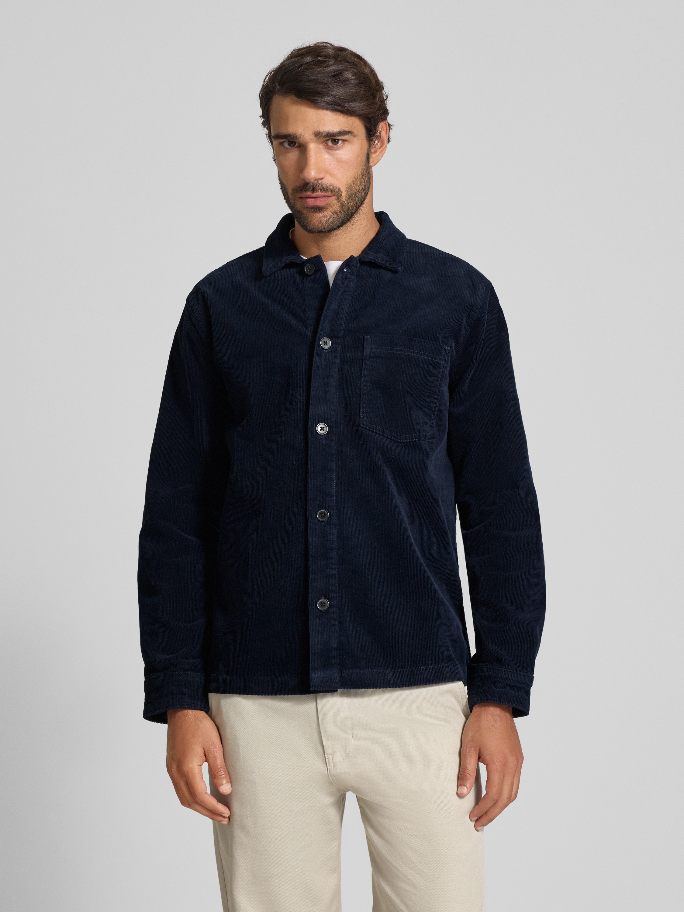 Modern fit overhemdjack met borstzak, model 'Superflex' in donkerblauw
