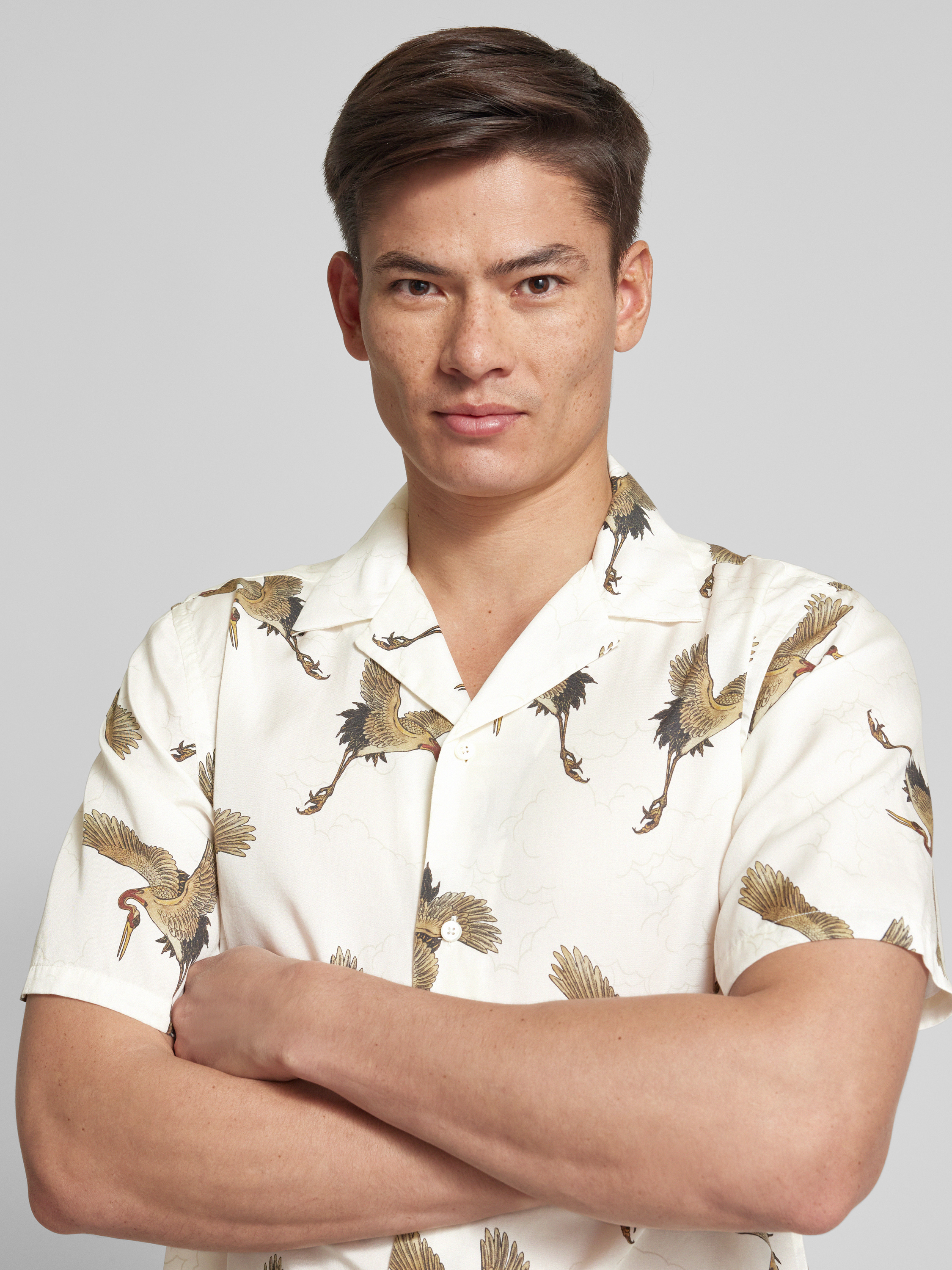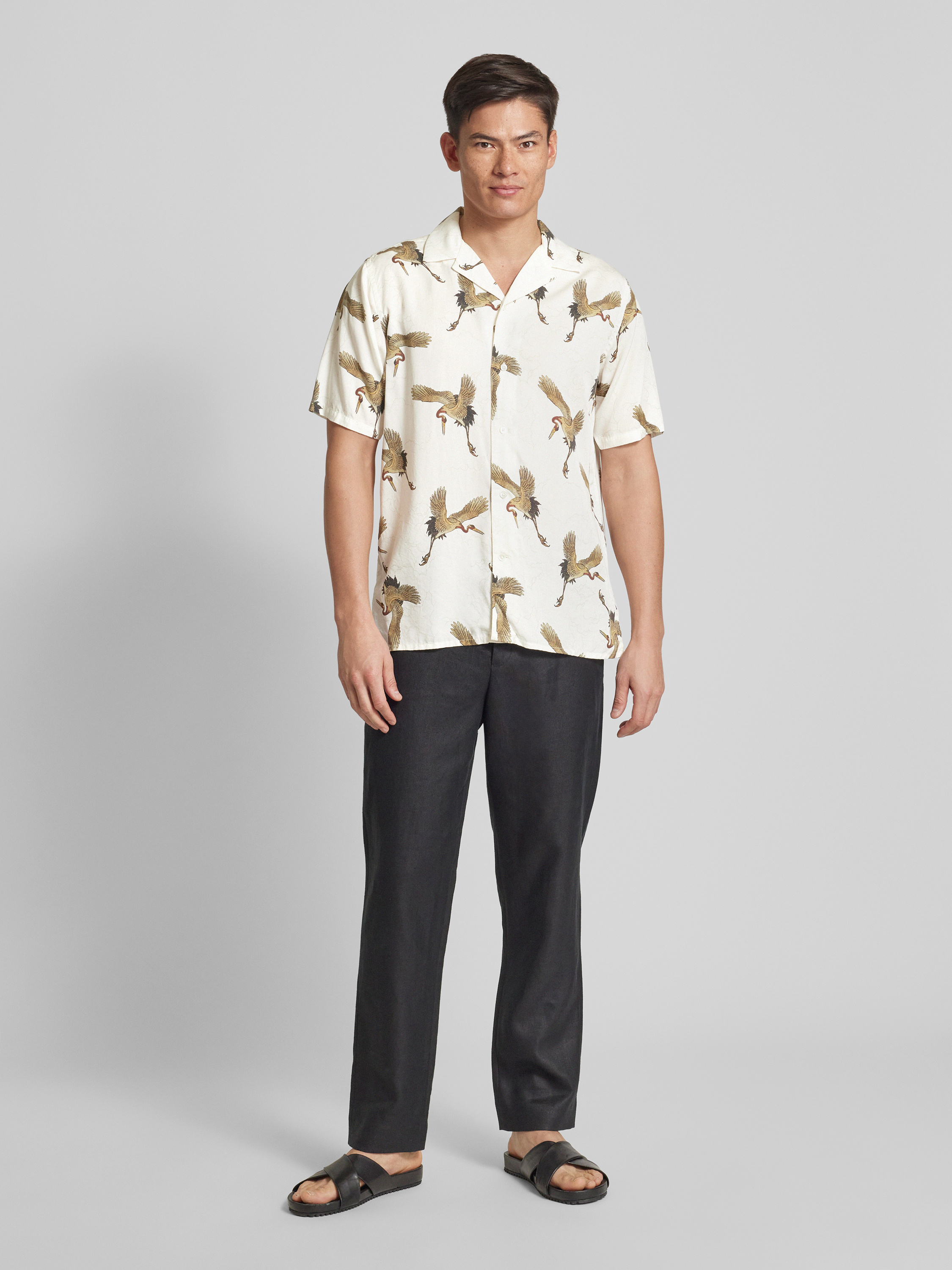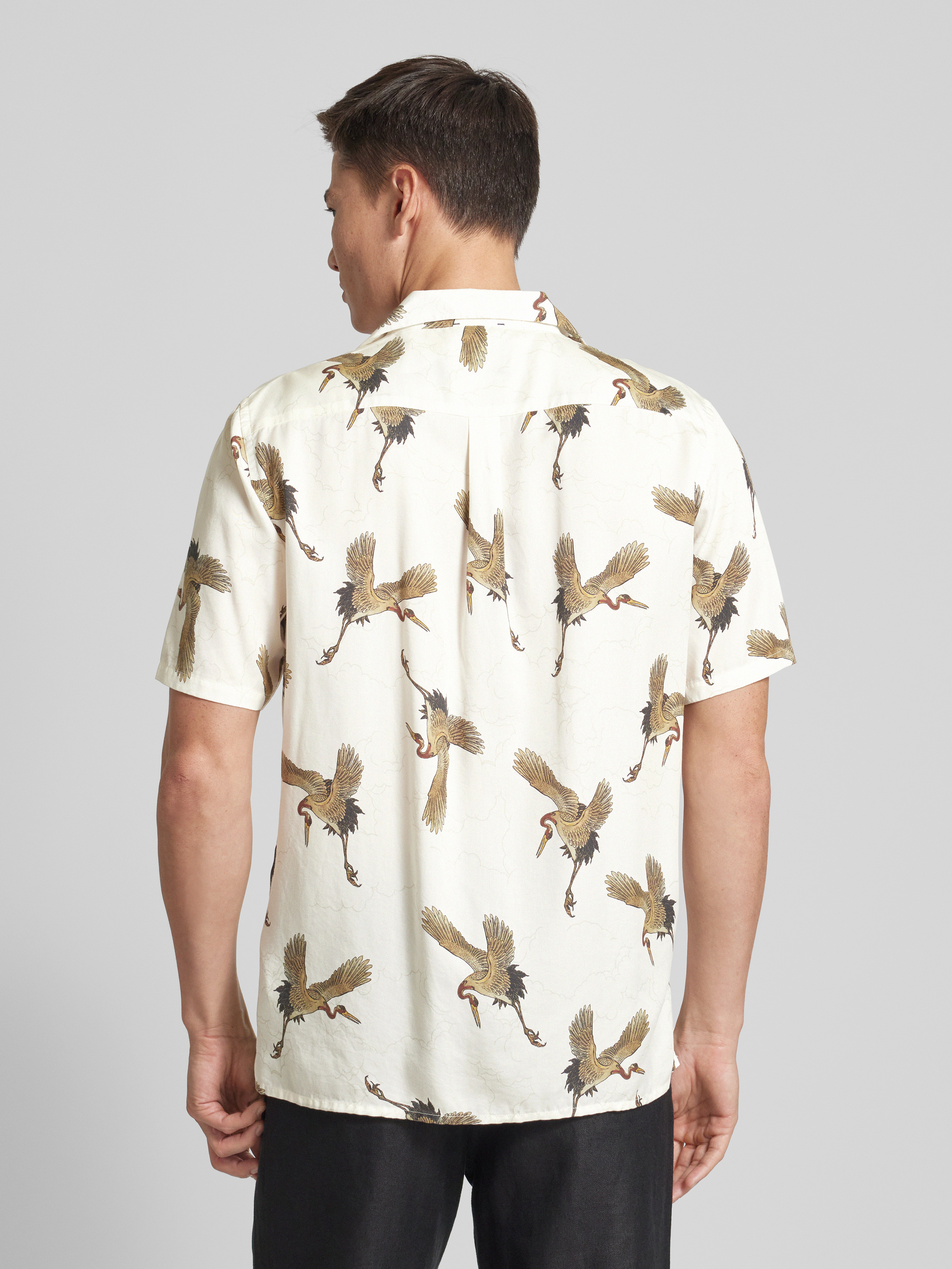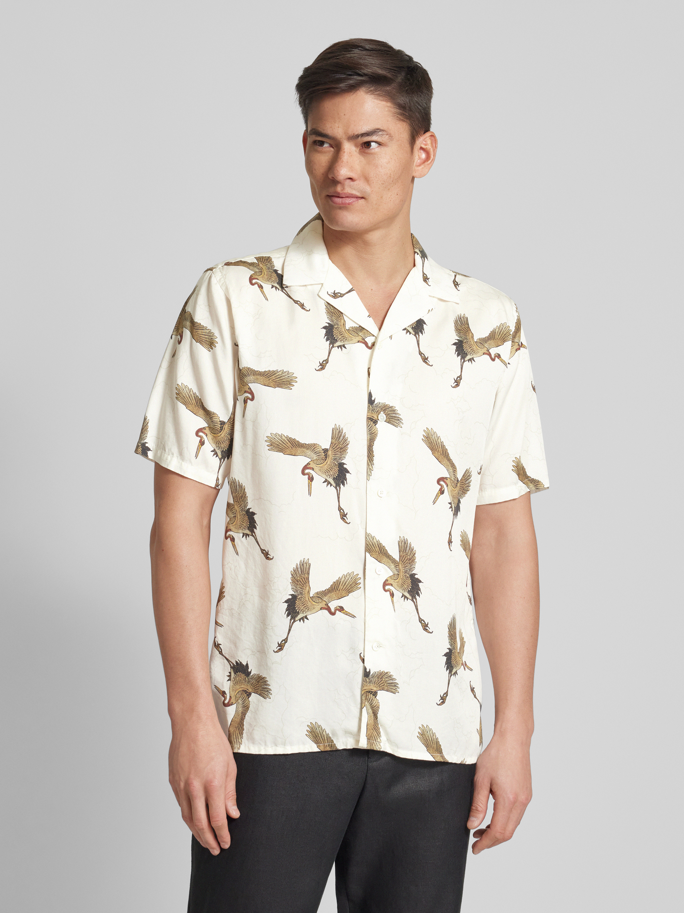 Modern fit vrijetijdsoverhemd met all-over motief, model 'Tencel' in offwhite