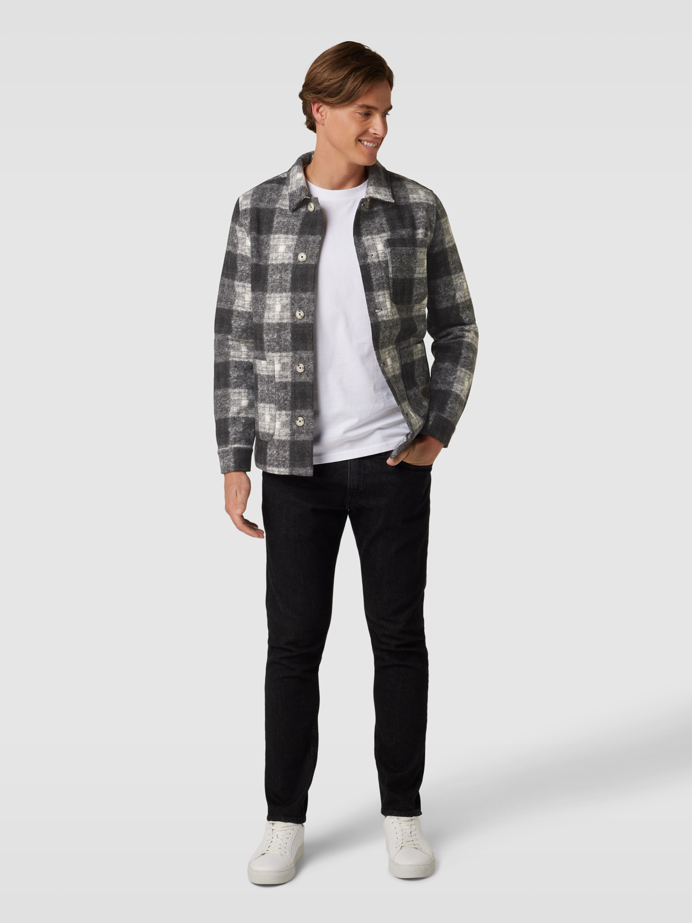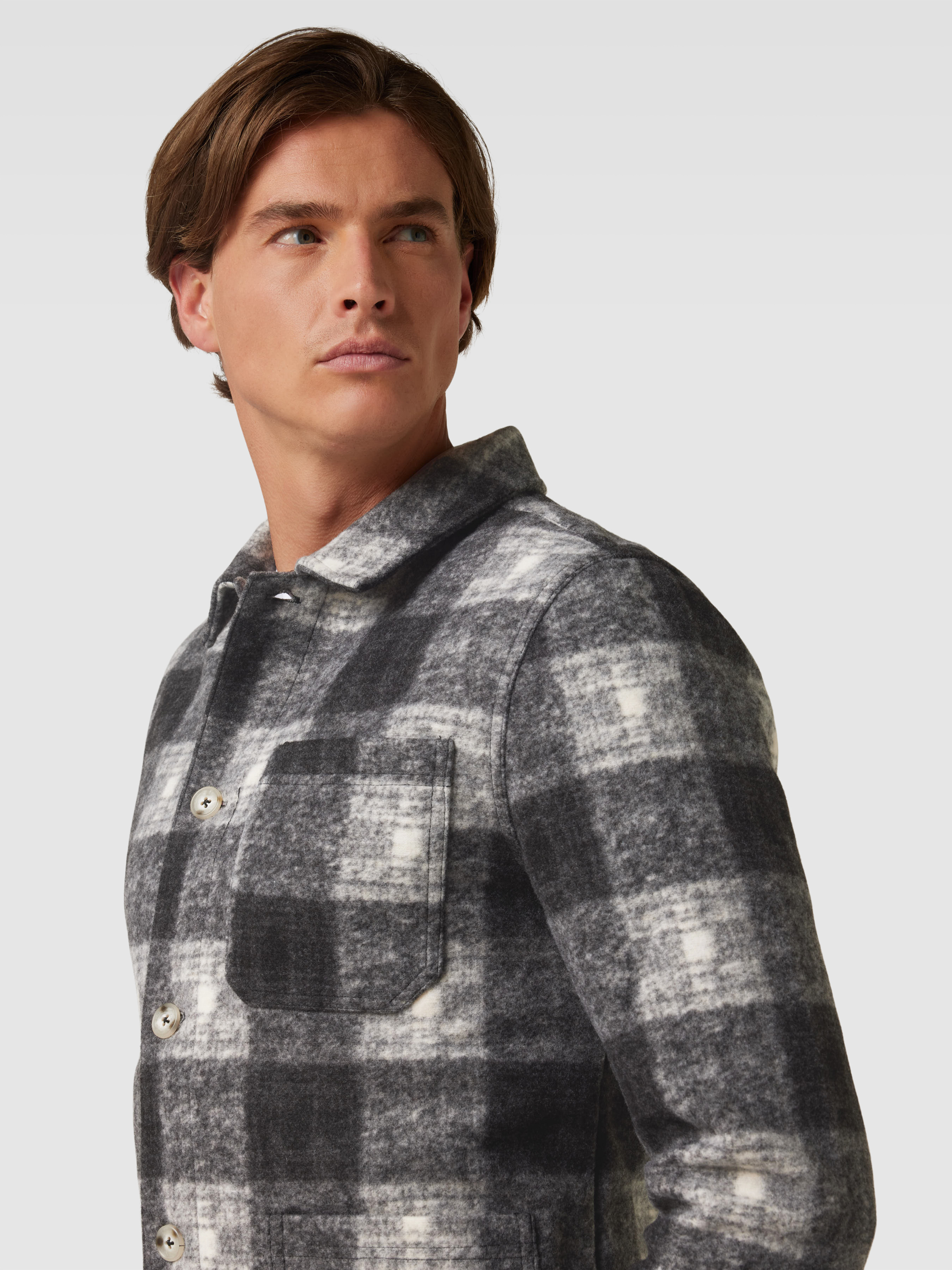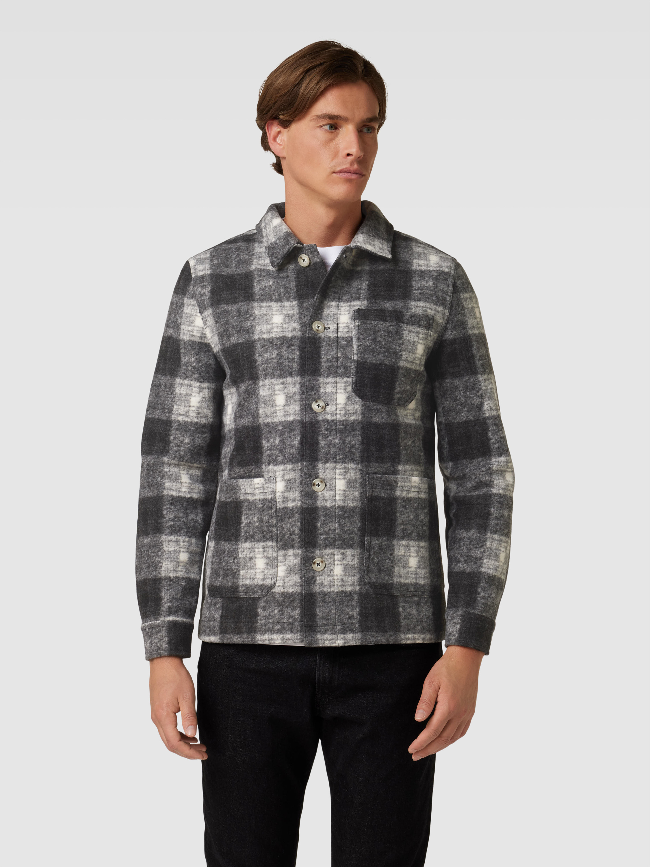 Overhemdjack met ruitmotief in antraciet
