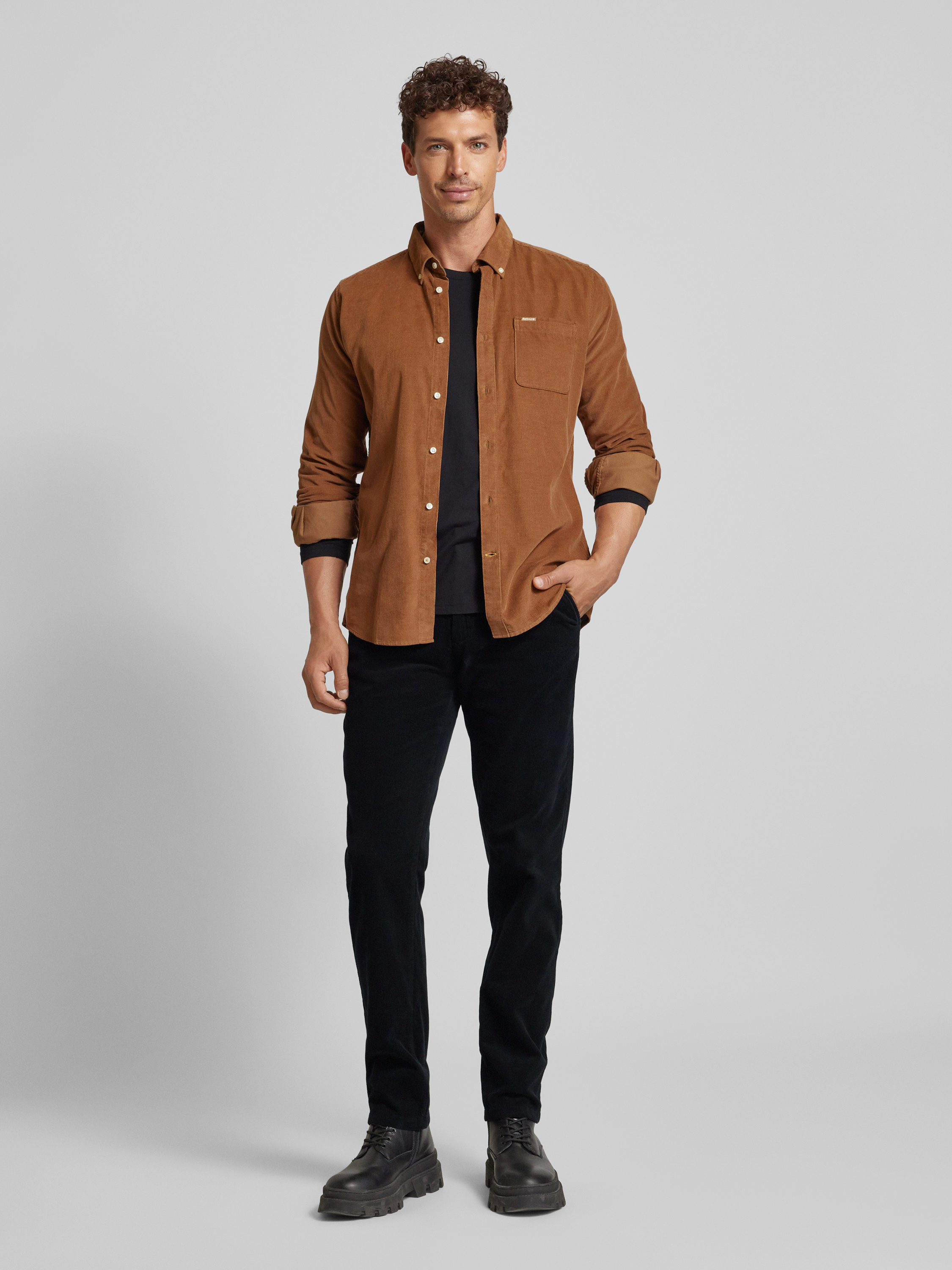 Tailored fit ribcordoverhemd met borstzak, model 'Ramsey'