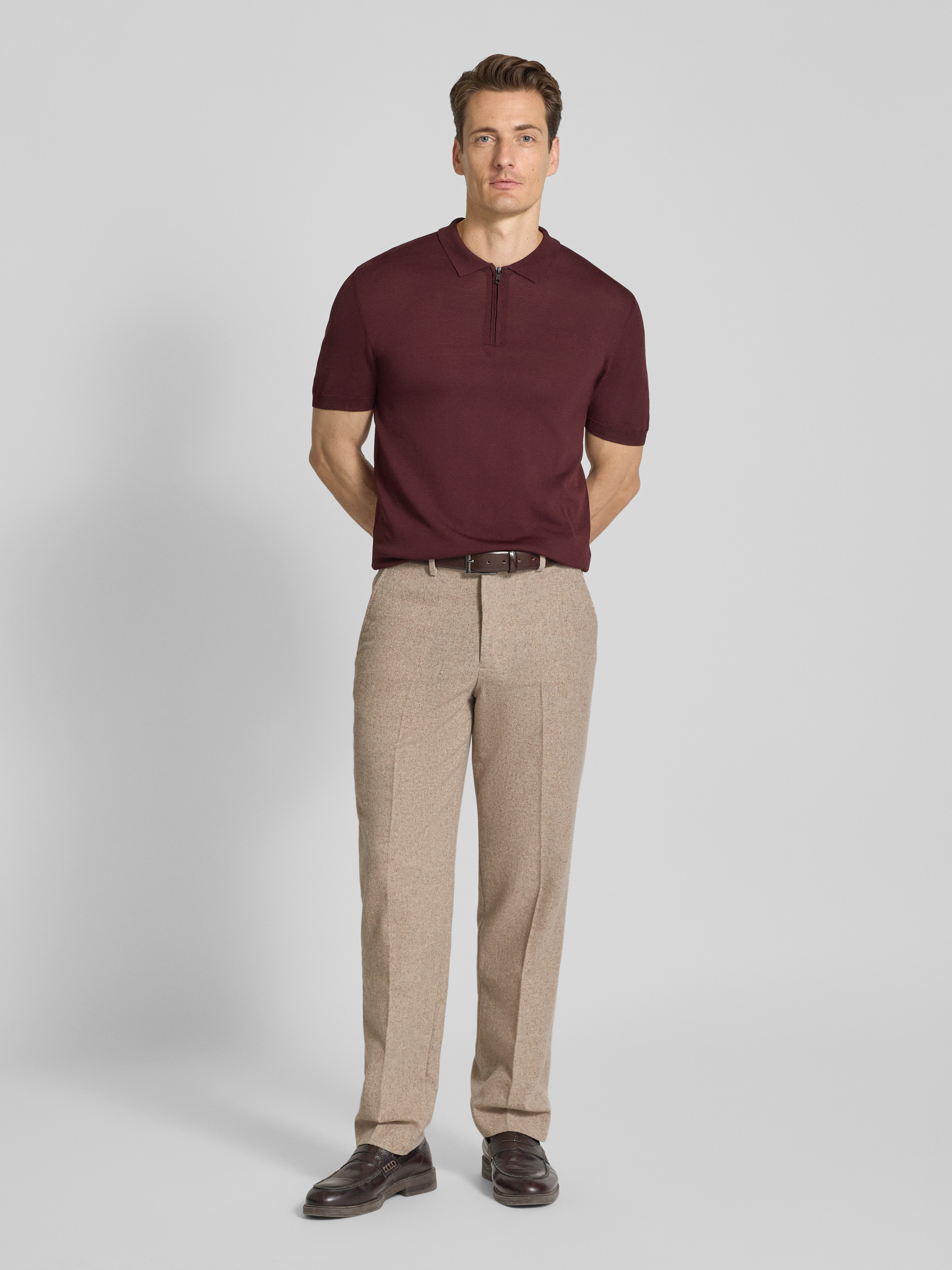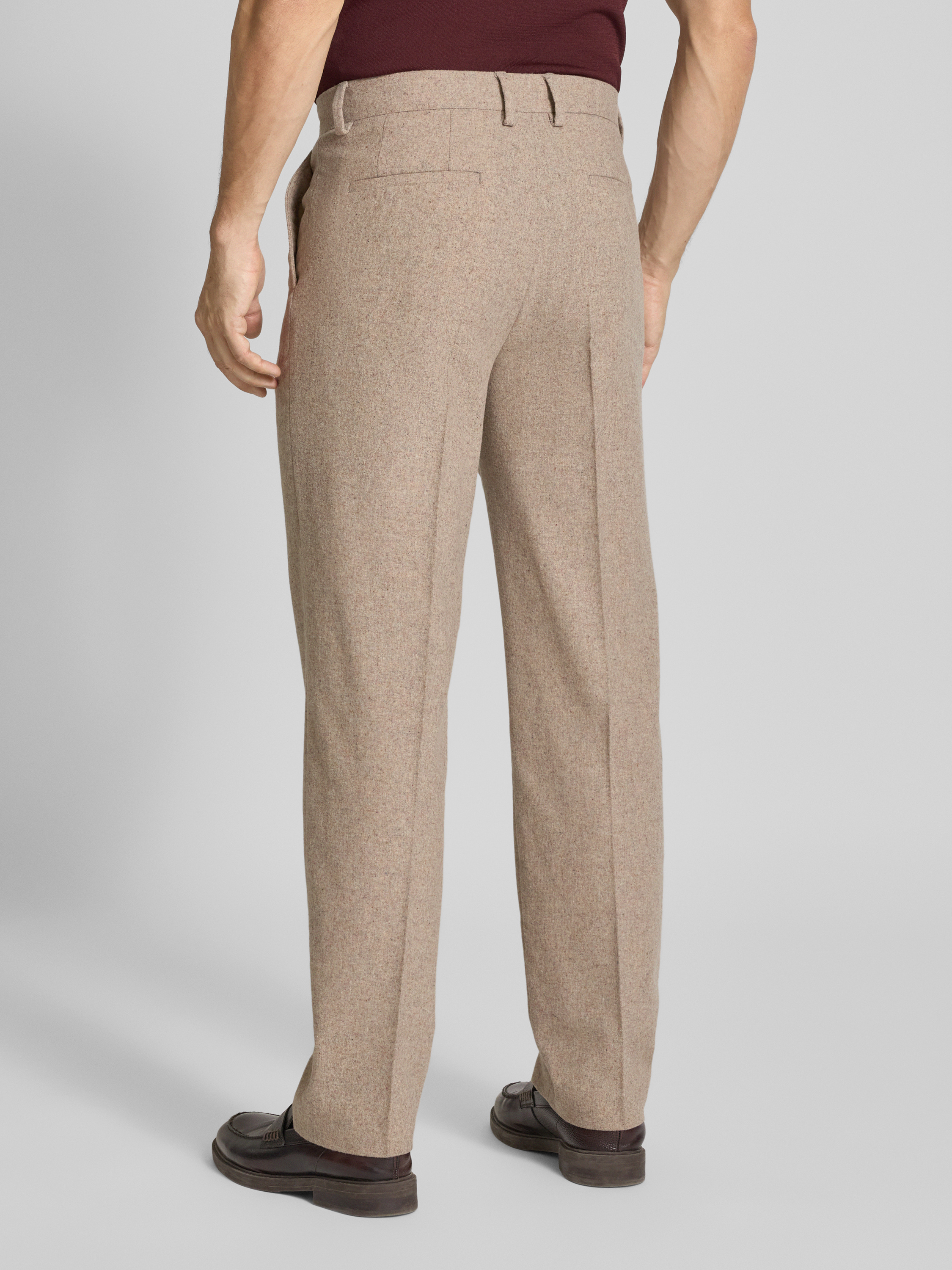Regular fit stoffen broek met persplooien in zand