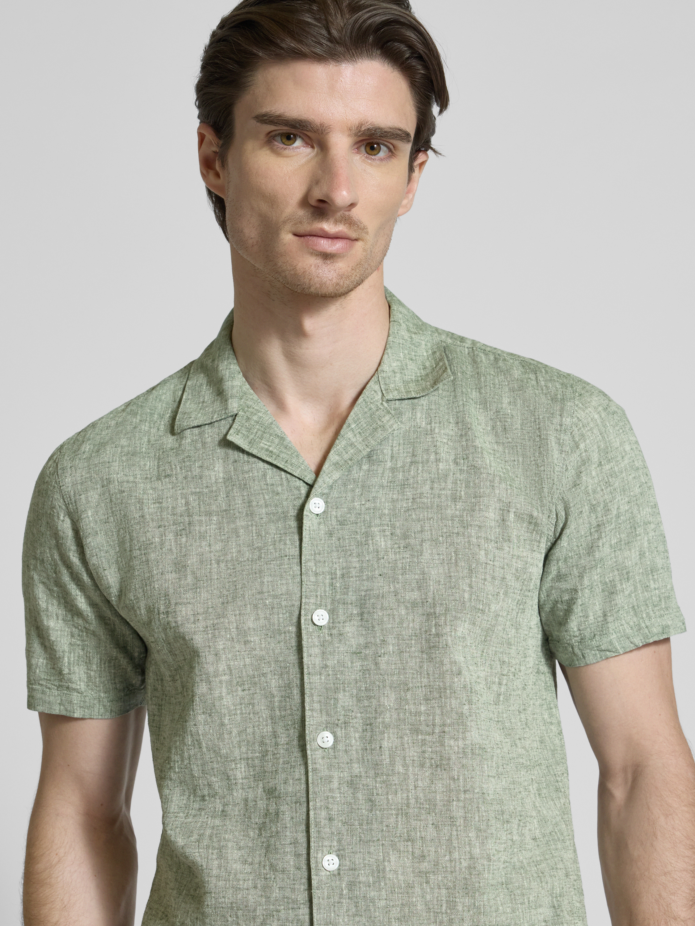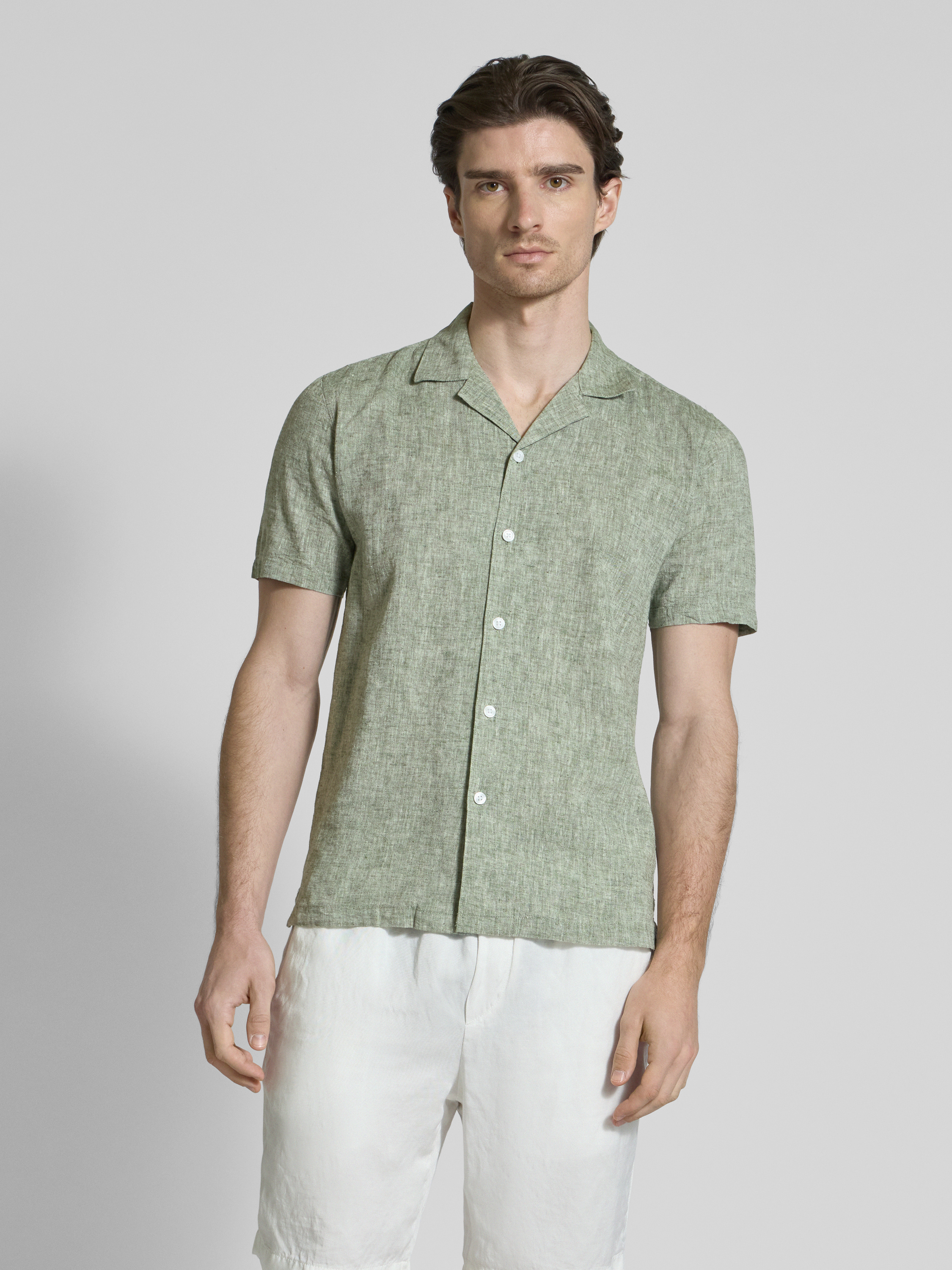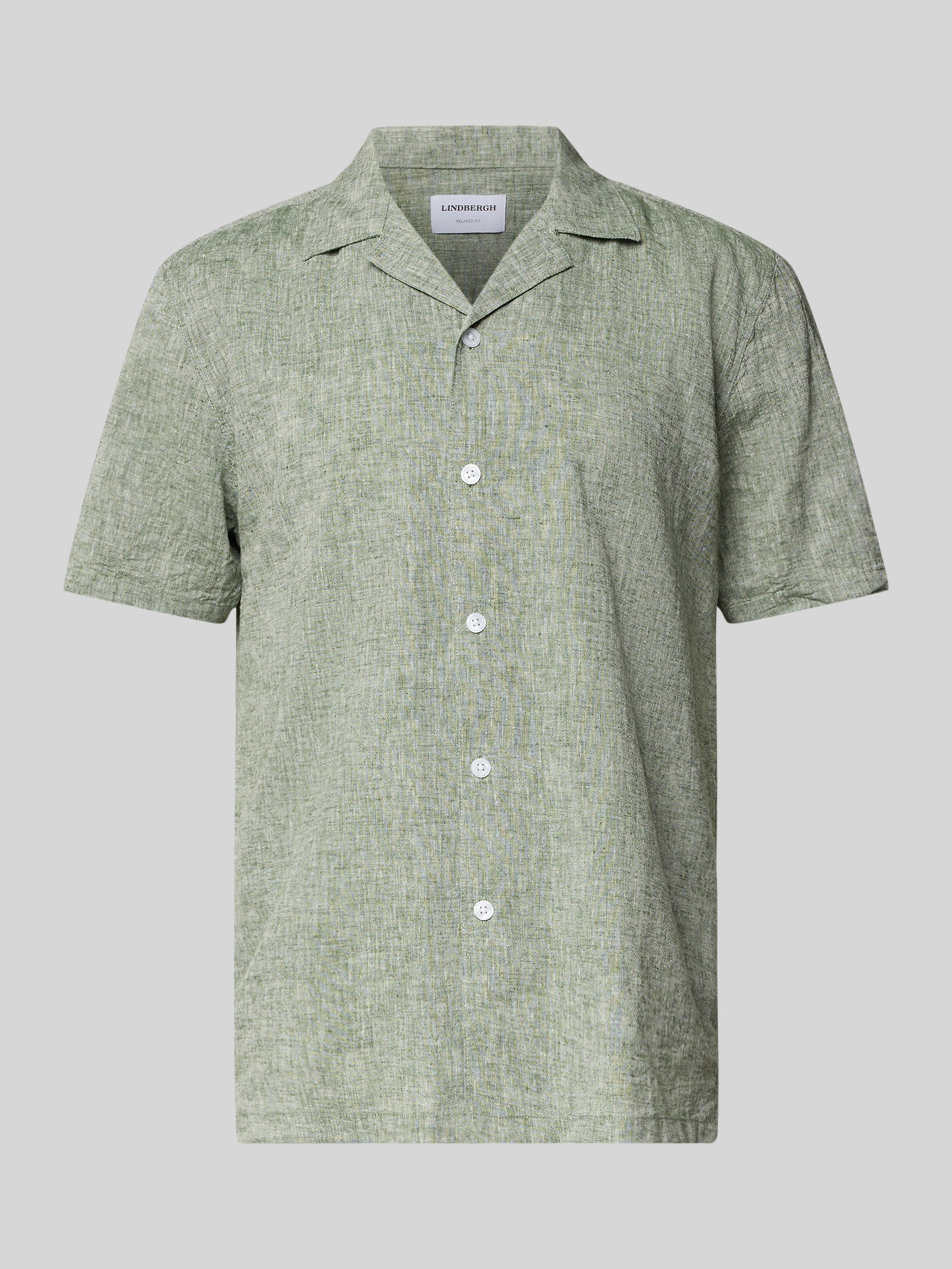 Relaxed fit linnen overhemd met 1/2-mouwen in olijfgroen