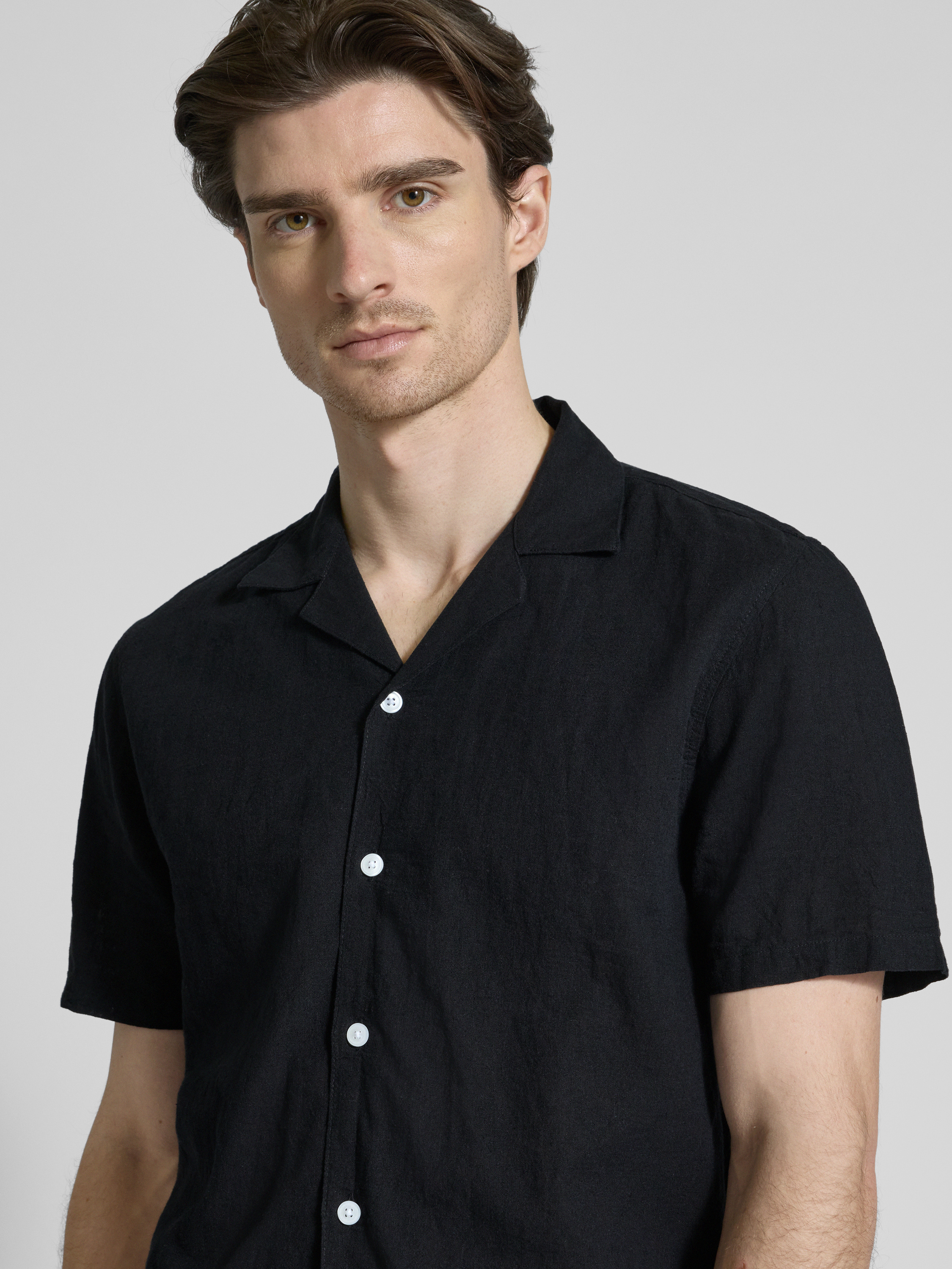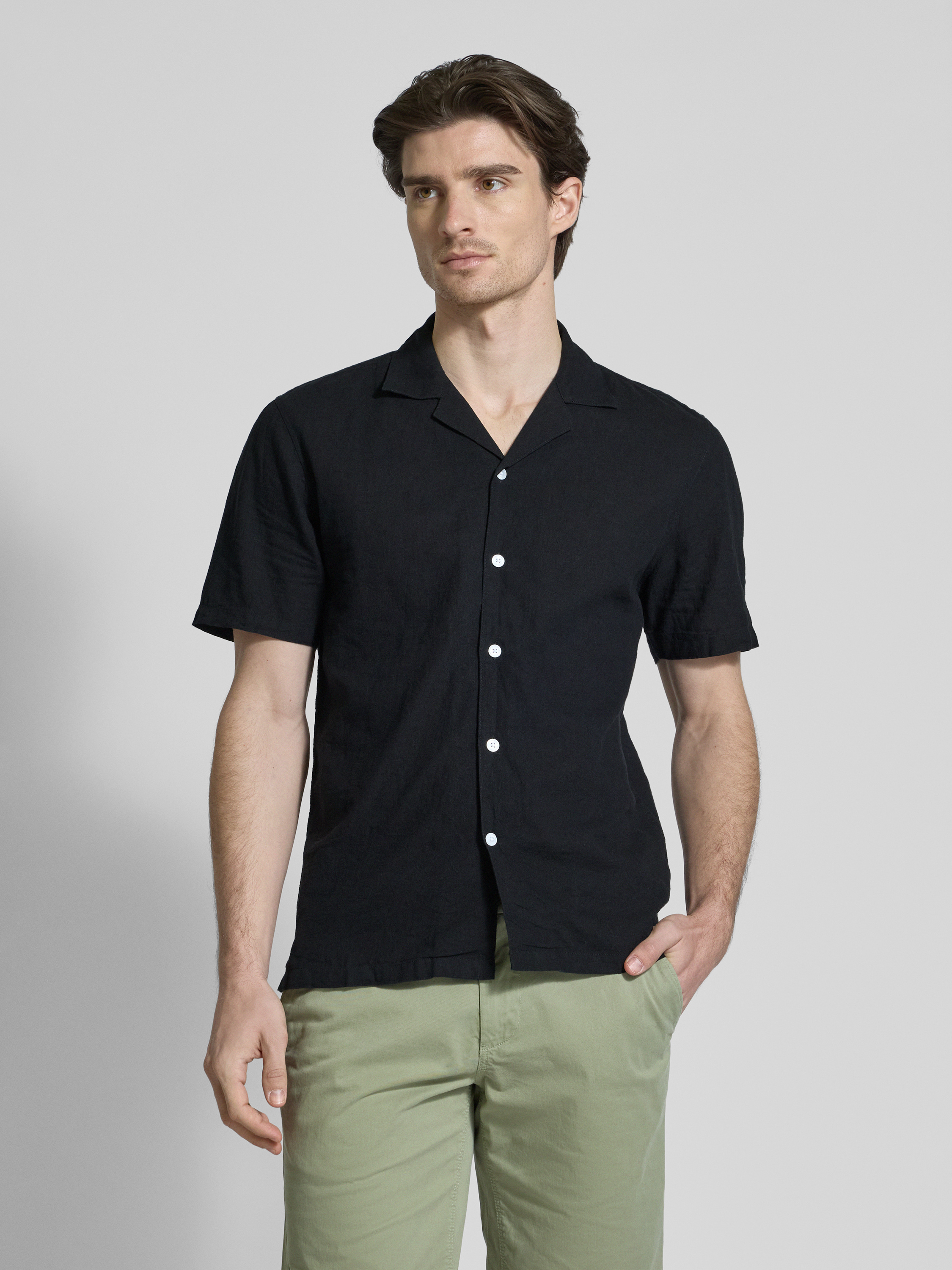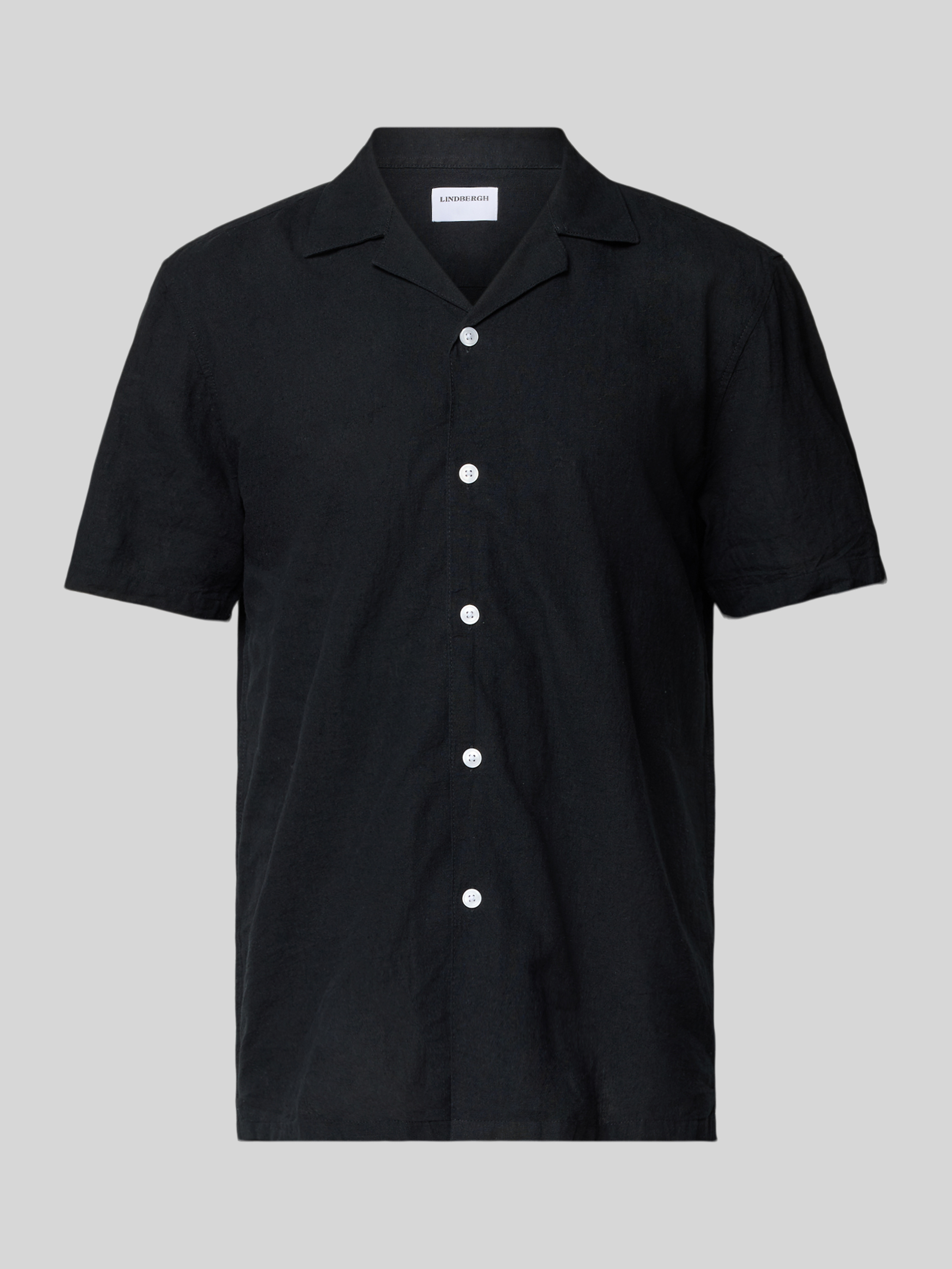 Relaxed fit linnen overhemd met 1/2-mouwen in zwart