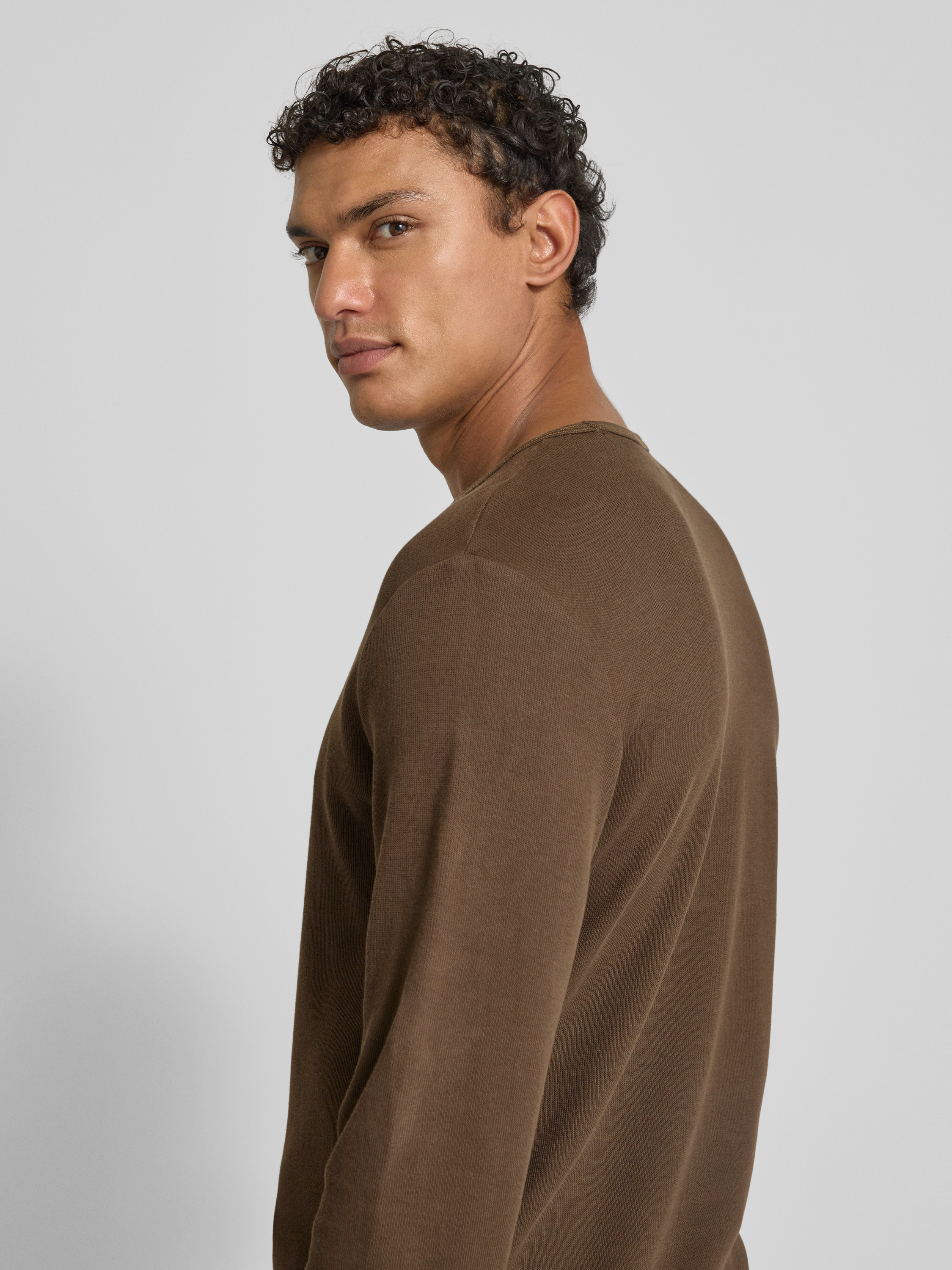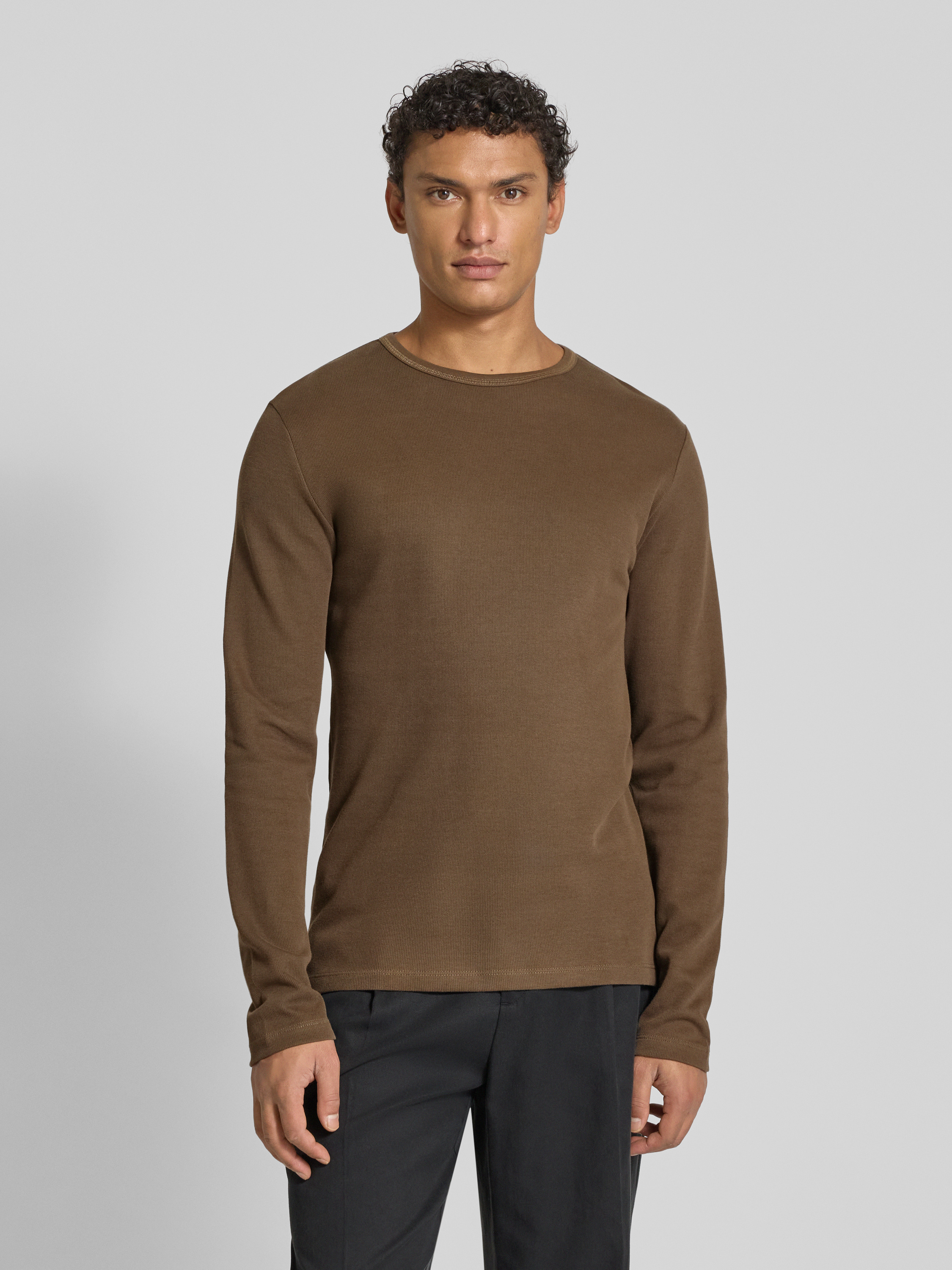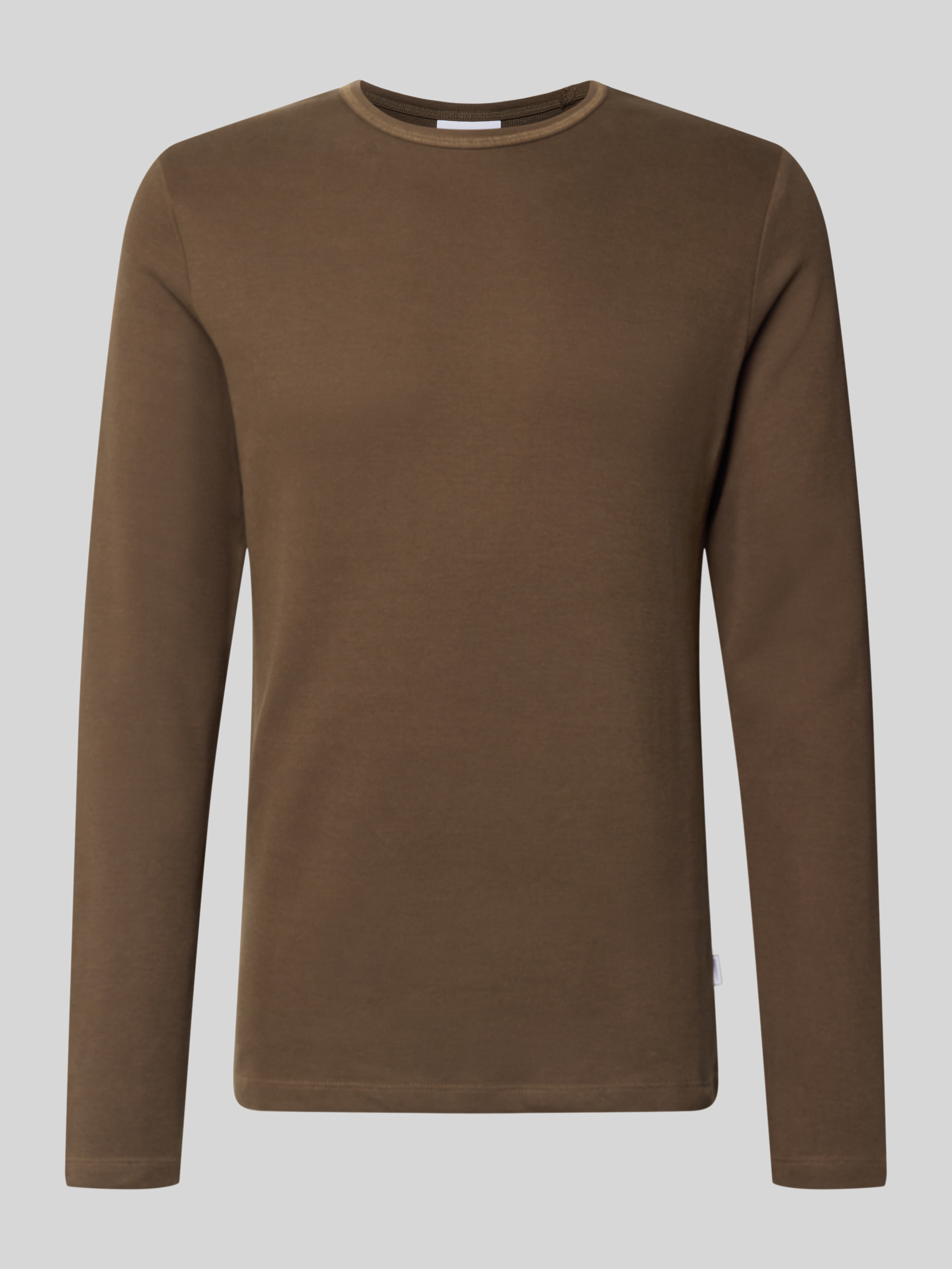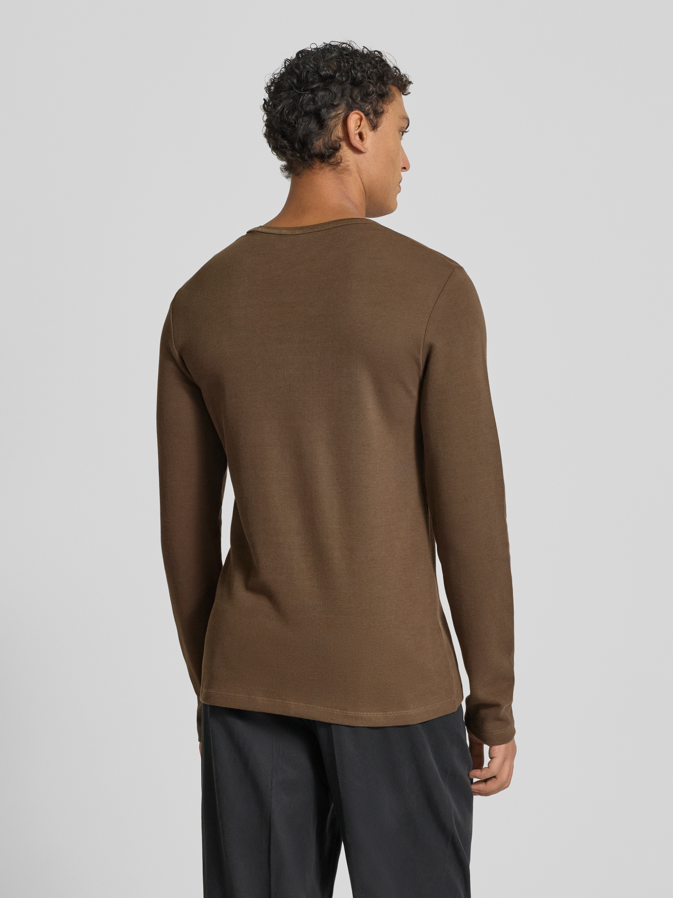 Shirt met lange mouwen, ronde hals en labeldetail in donkerbruin