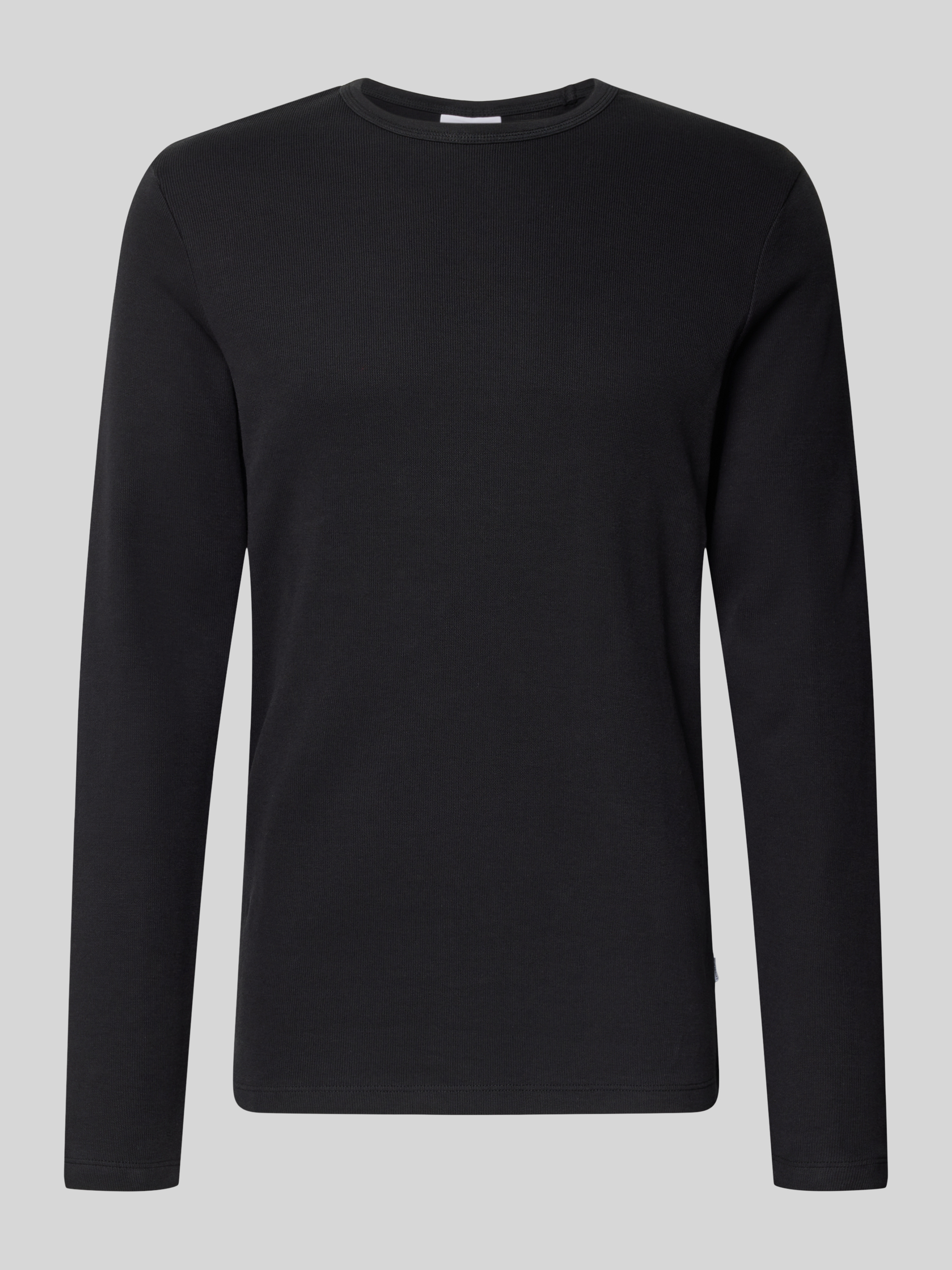 Shirt met lange mouwen, ronde hals en labeldetail in zwart