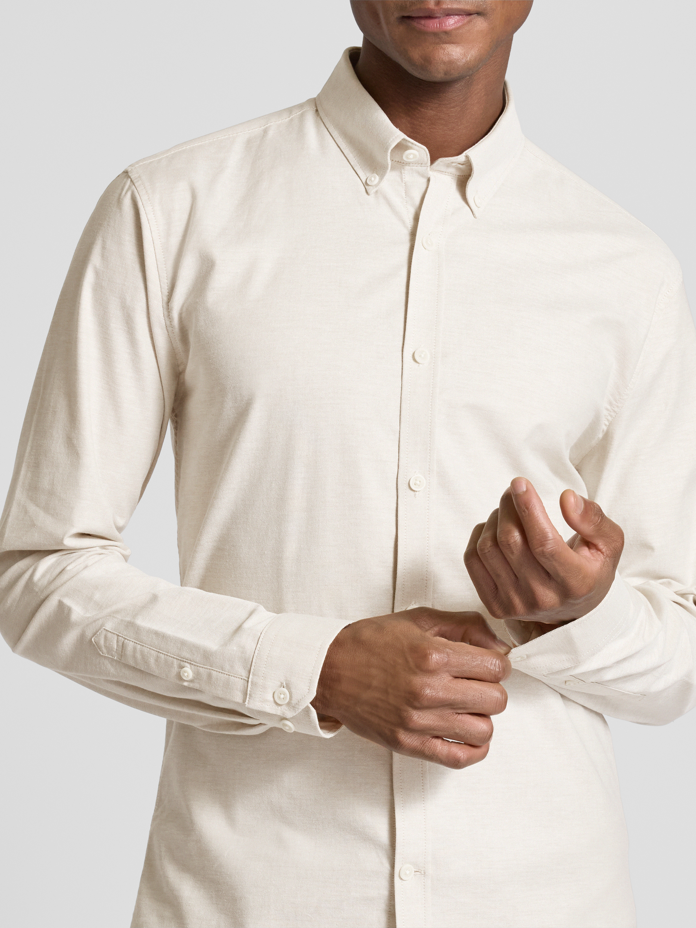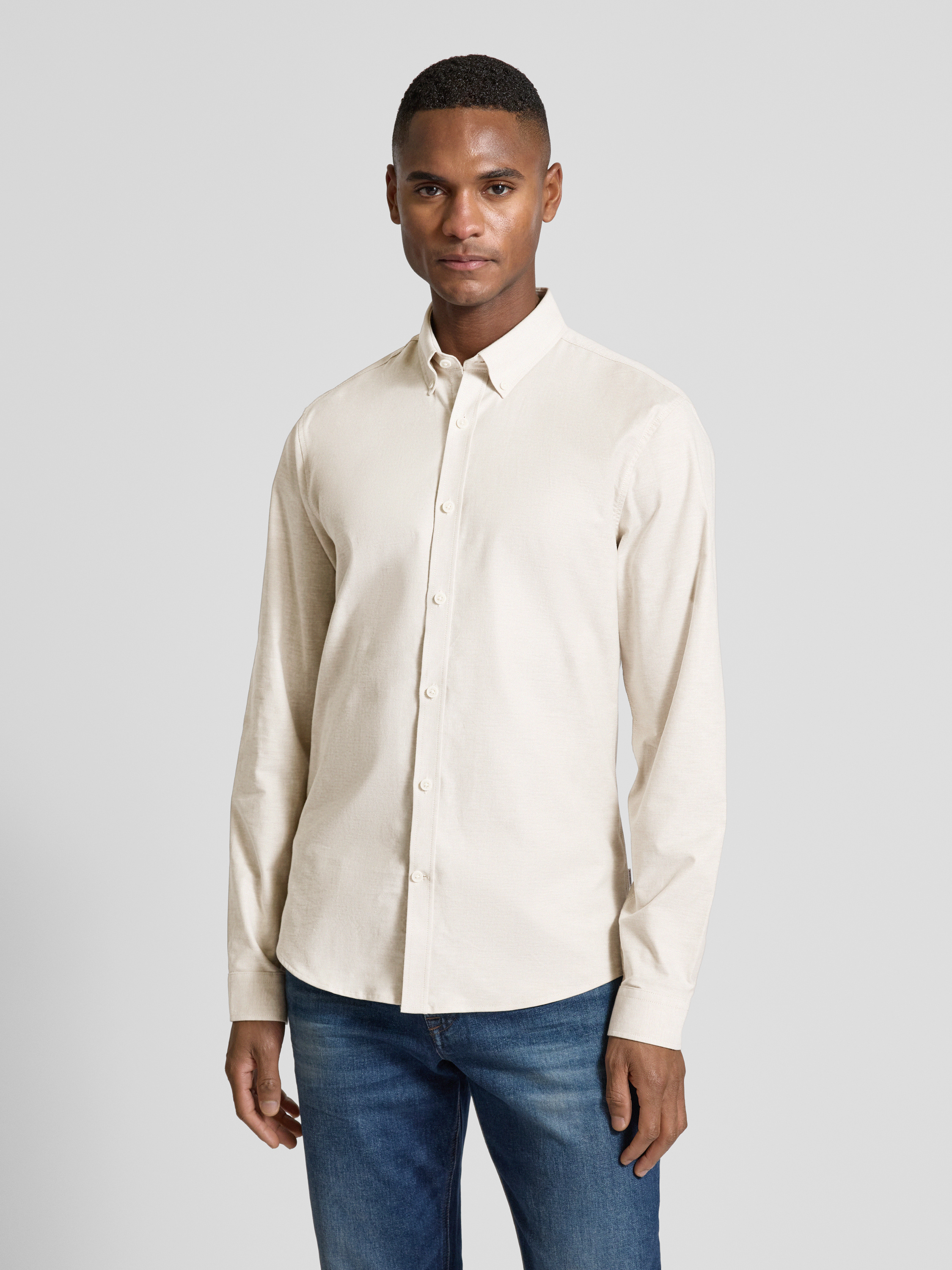 Slim fit vrijetijdsoverhemd met knoopsluiting, model 'Oxford' in zand