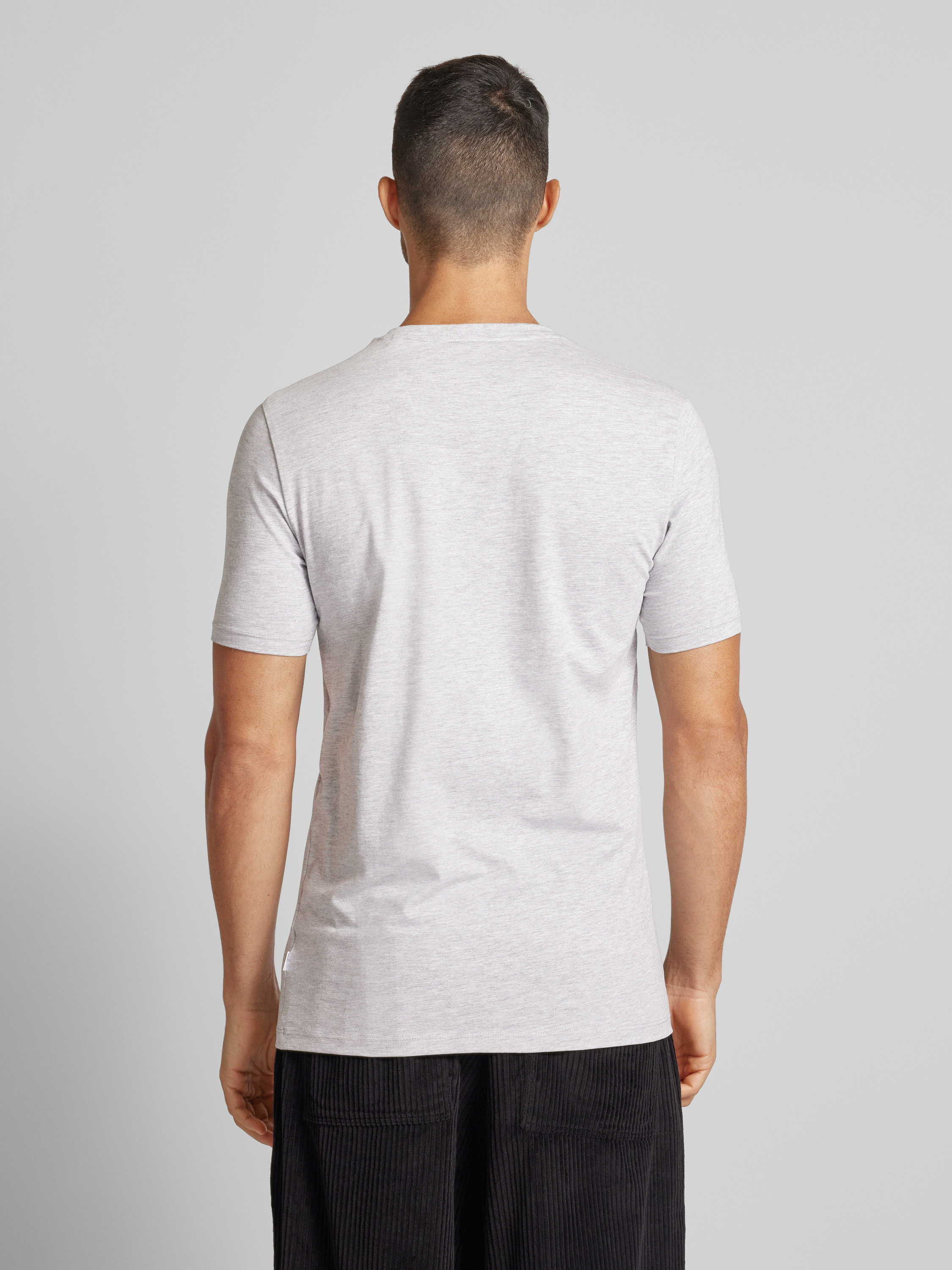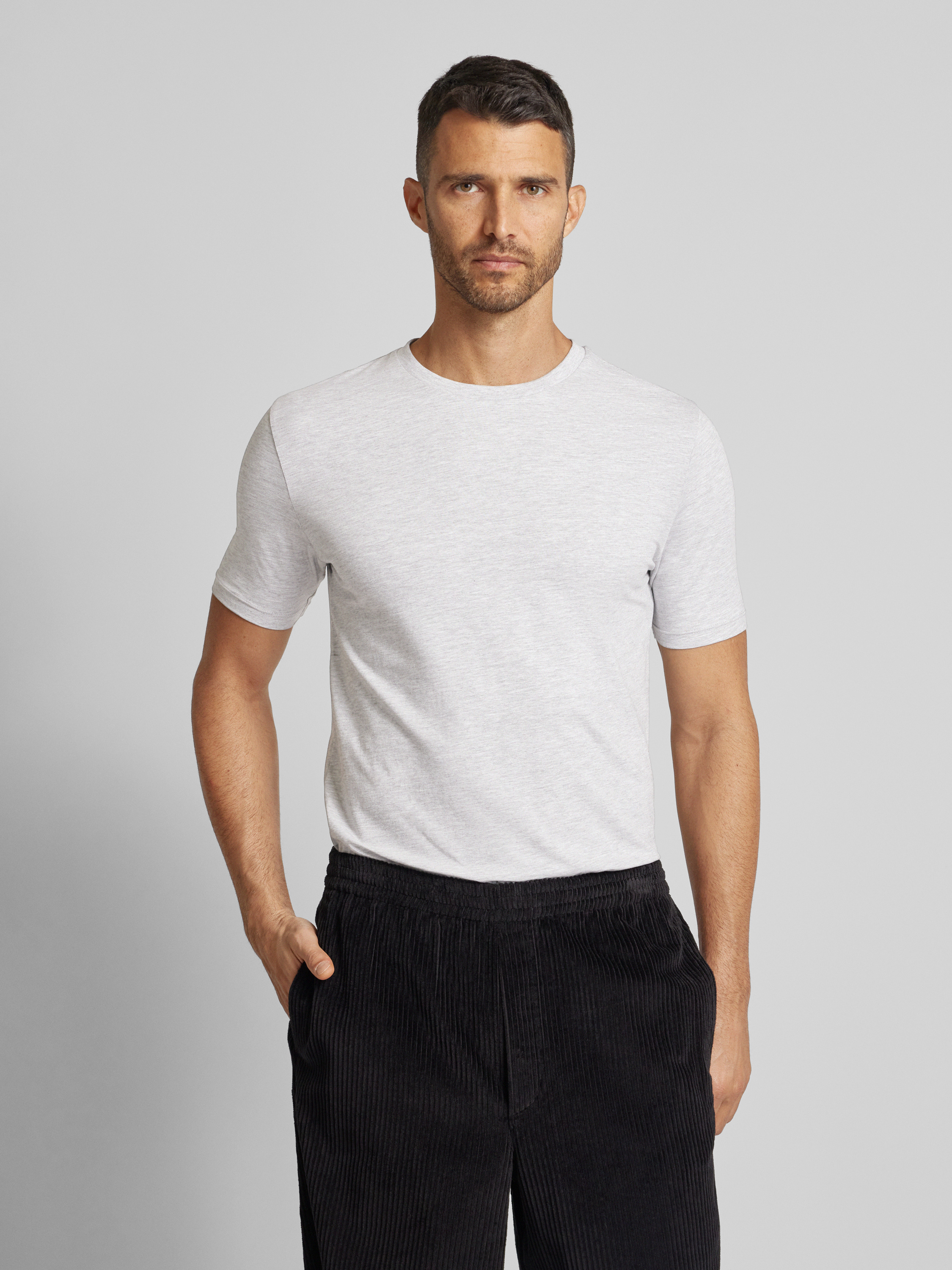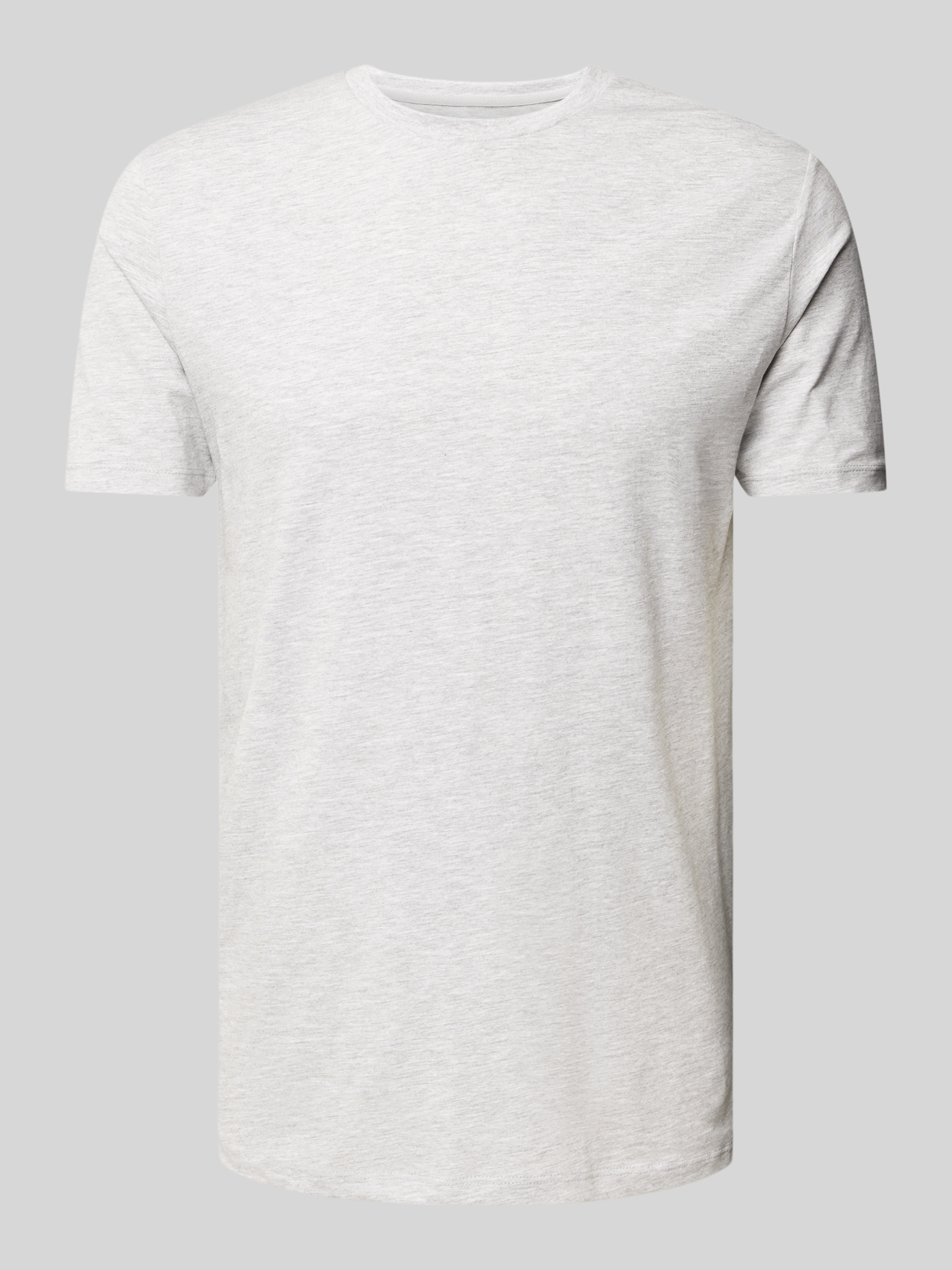 T-shirt met geribde ronde hals in donkergrijs gemêleerd