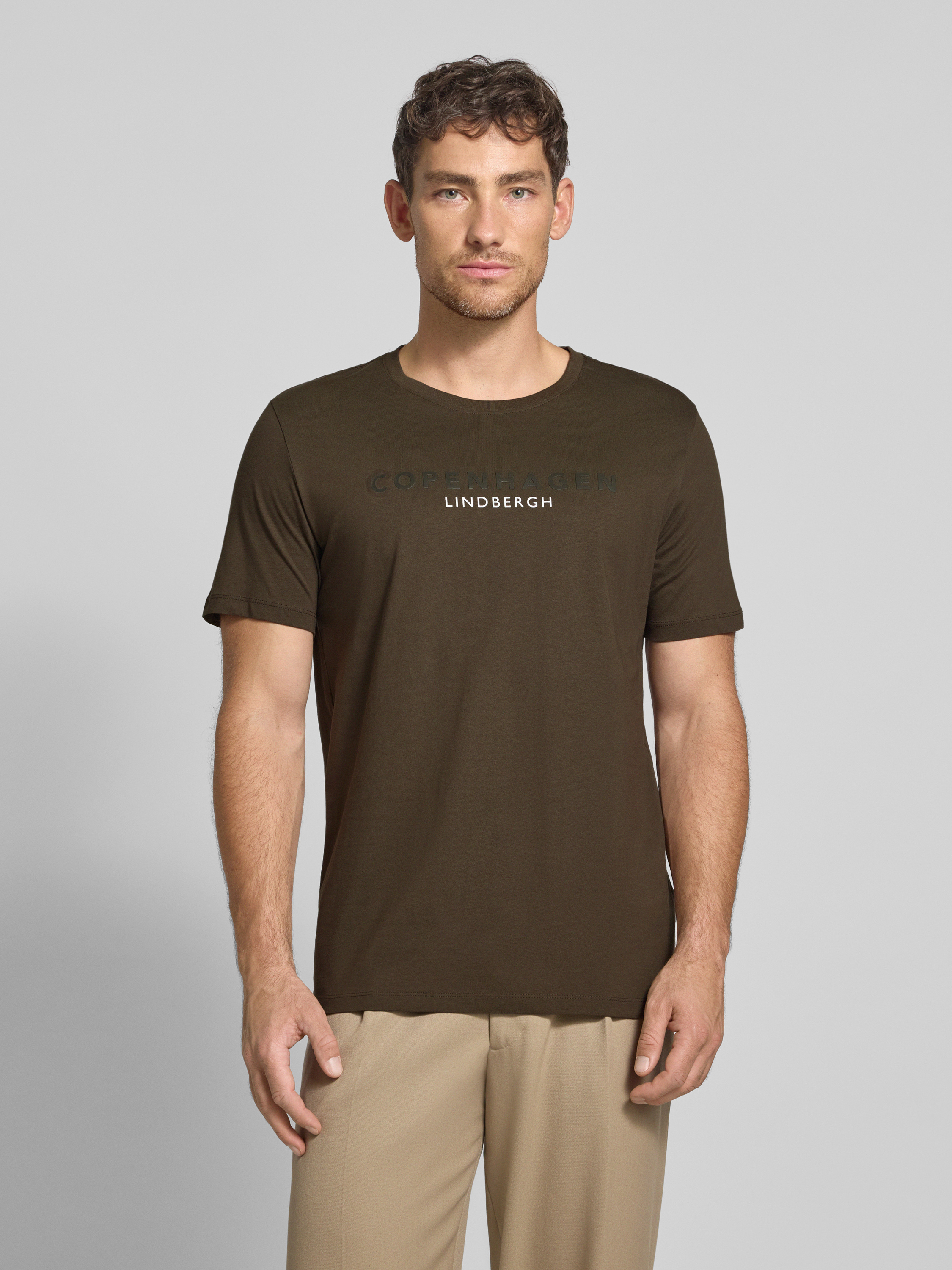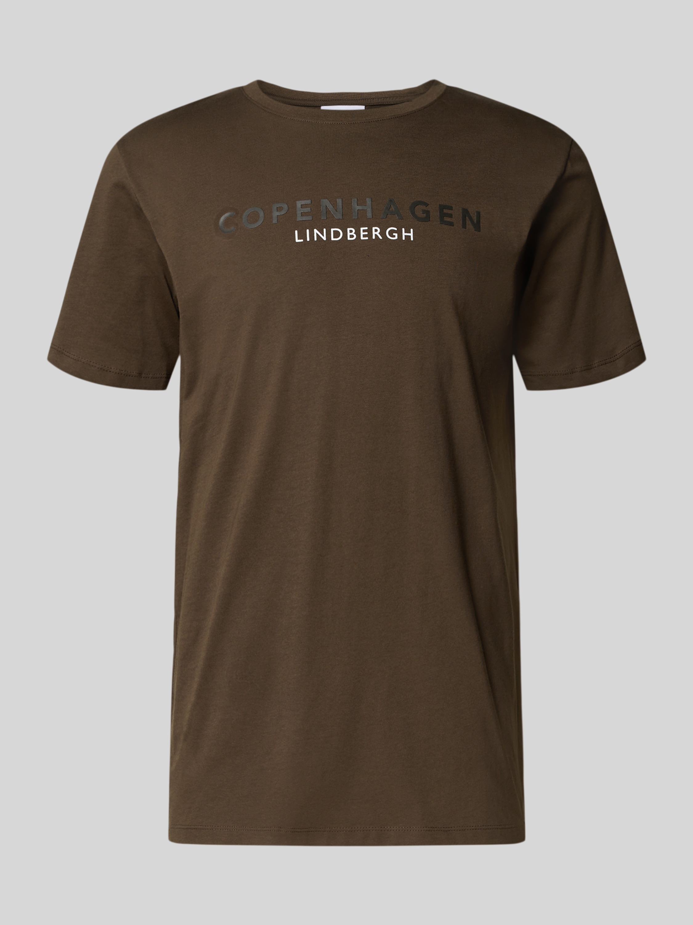 T-shirt met labelprint, model 'Copenhagen' in donkerbruin