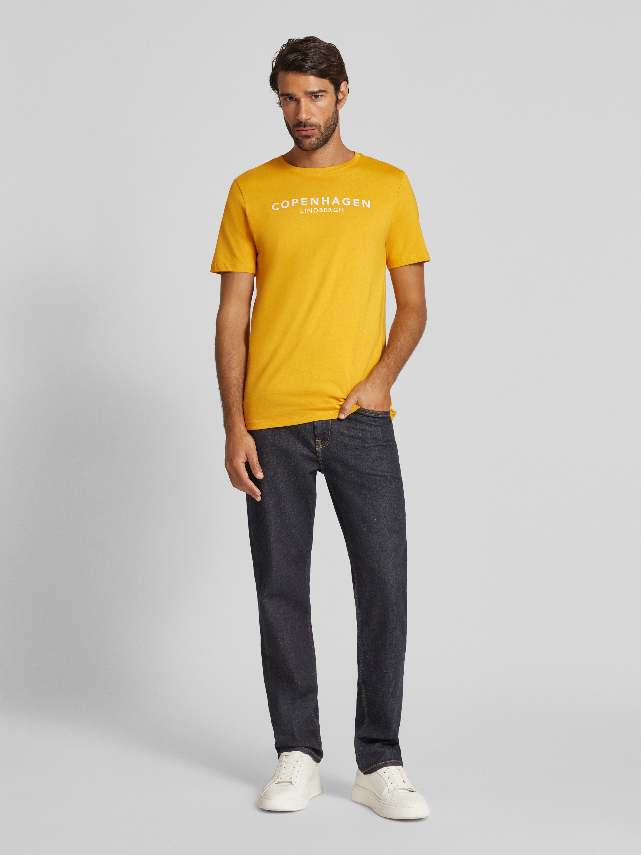 T-shirt met labelprint, model 'Copenhagen' in terracotta