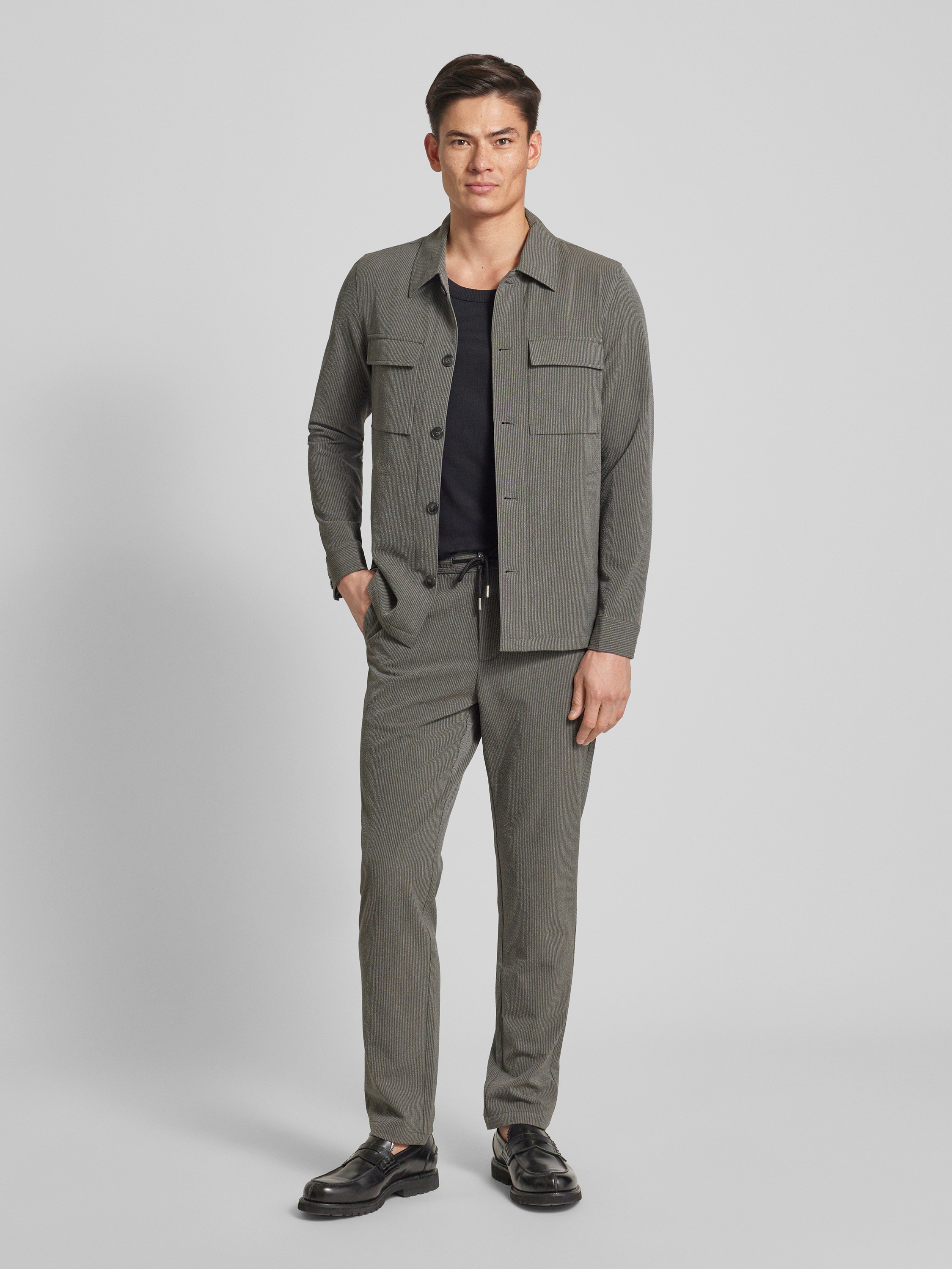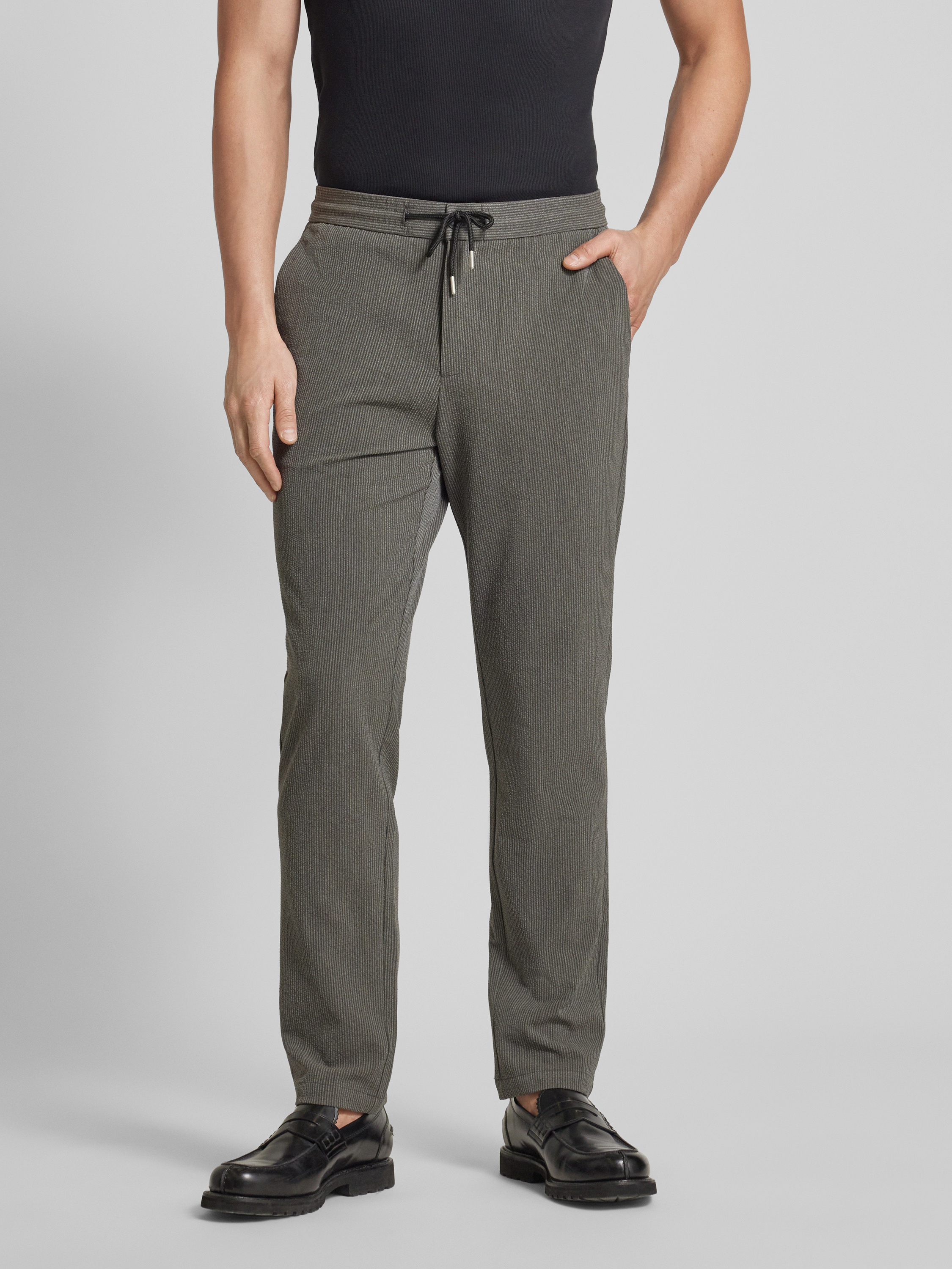 Tapered fit stoffen broek met fijn gestructureerd motief in antraciet