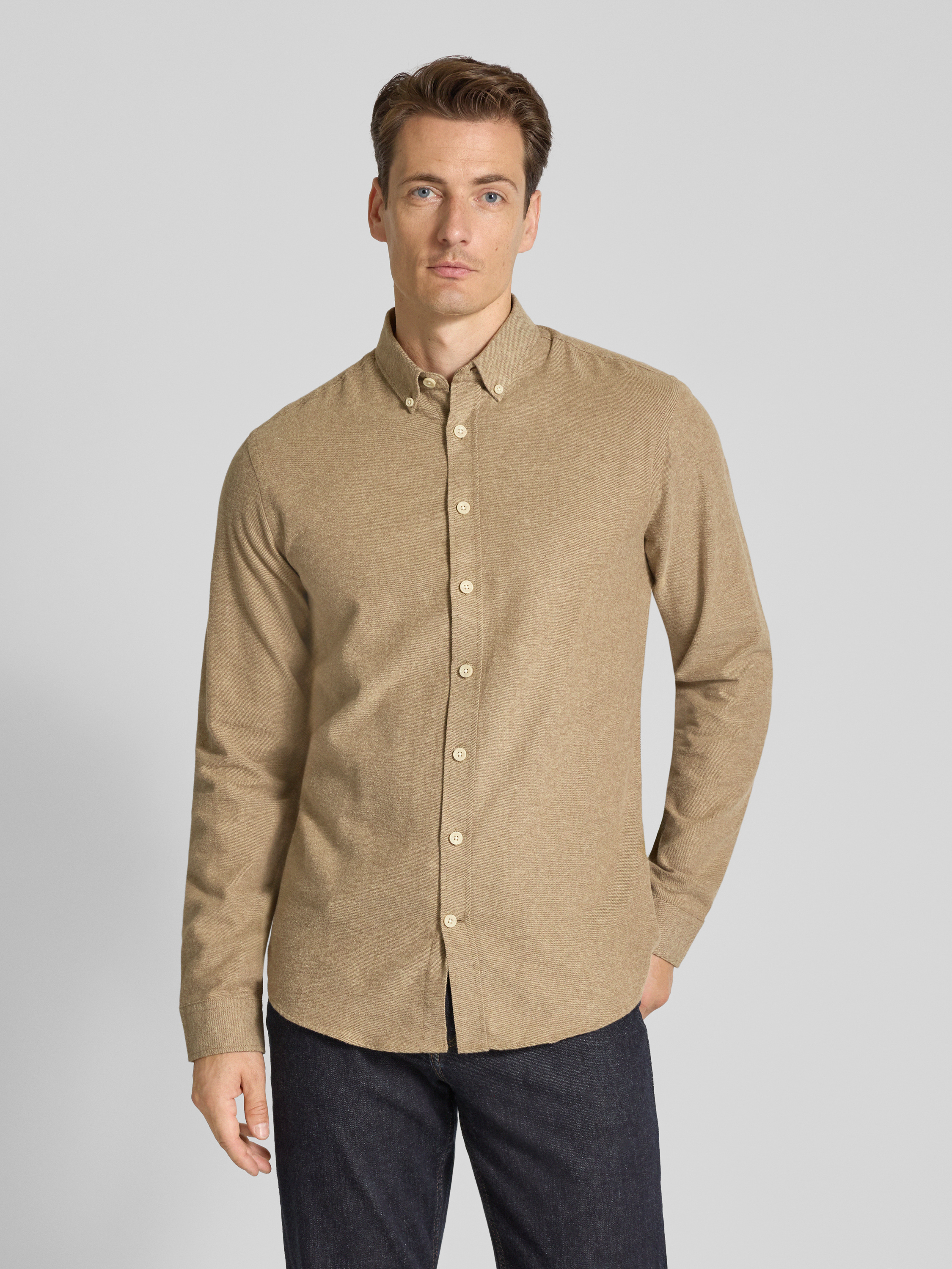 Vrijetijdsoverhemd met button-downkraag in middenbruin