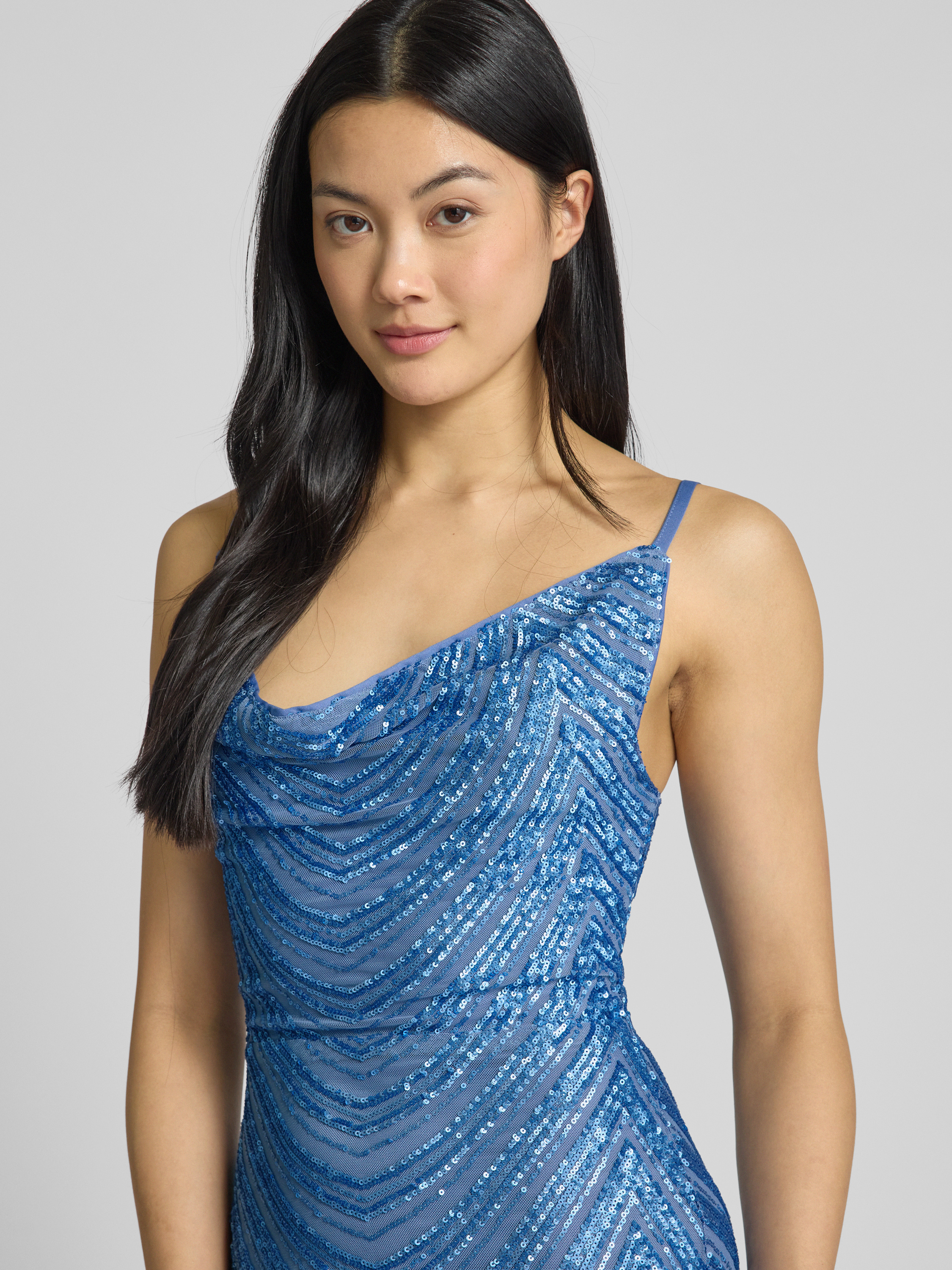 Avondjurk met pailletten in hemelsblauw