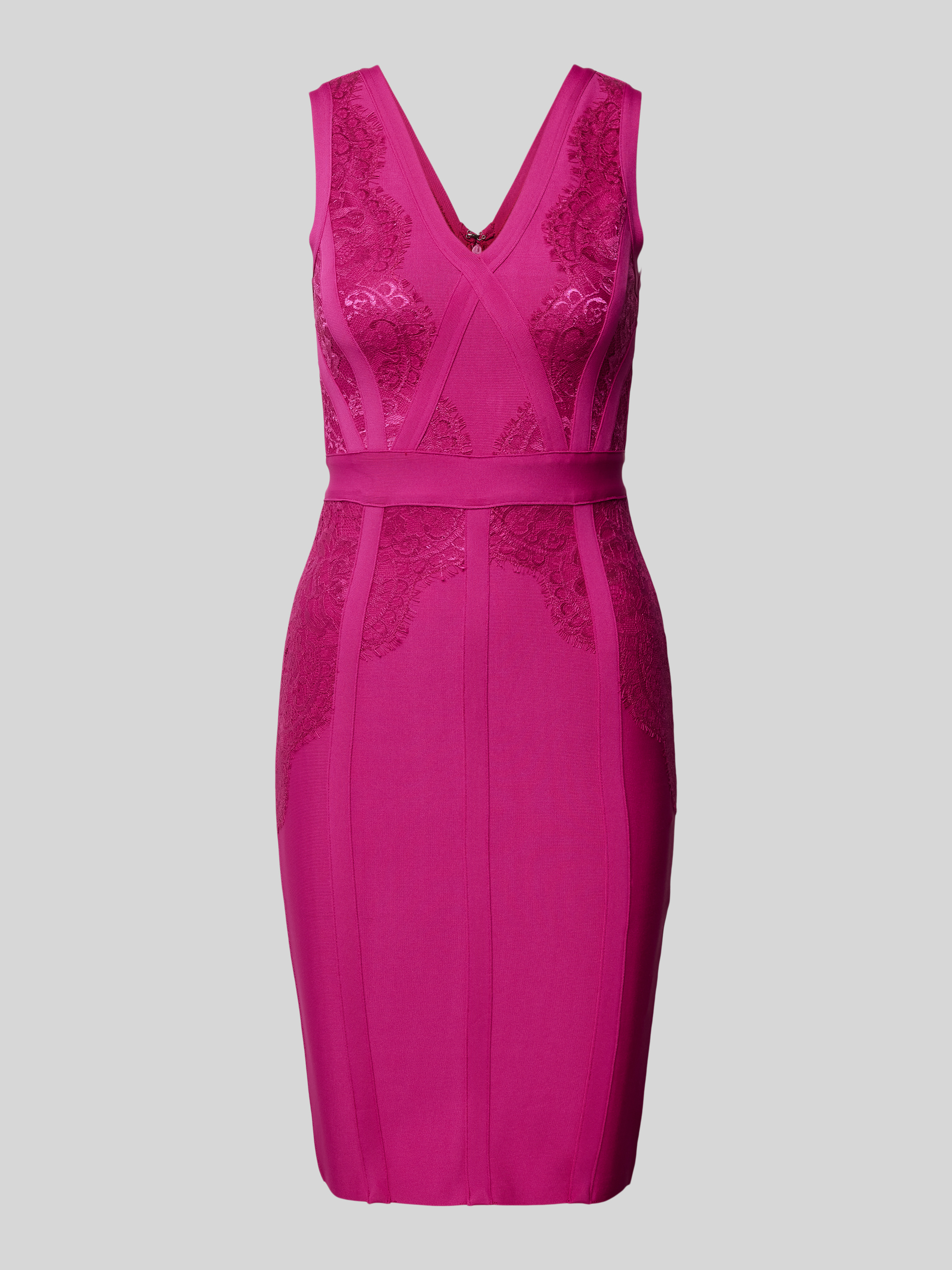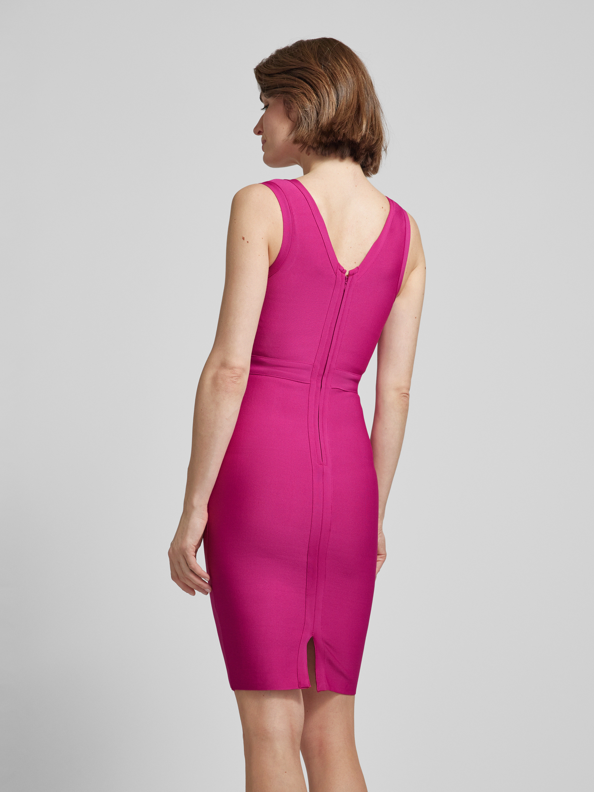 Cocktailjurk met V-hals in felroze