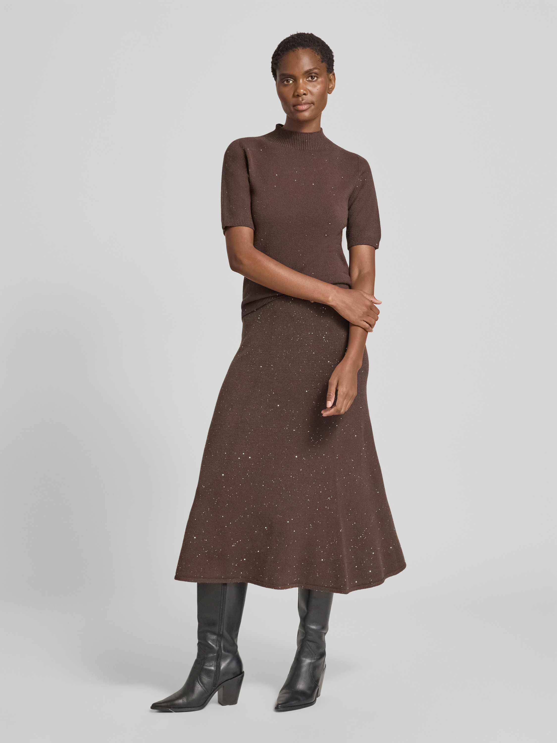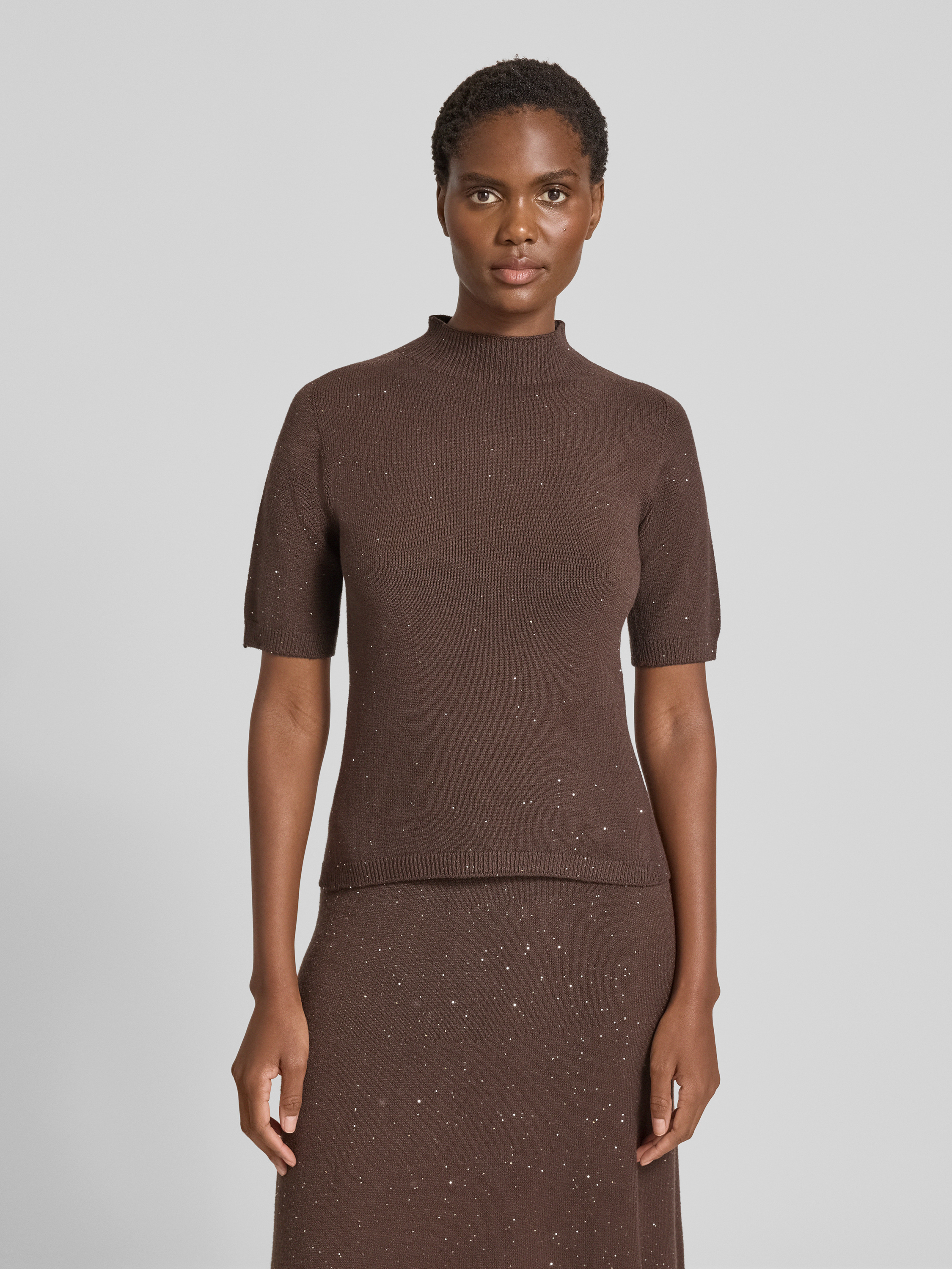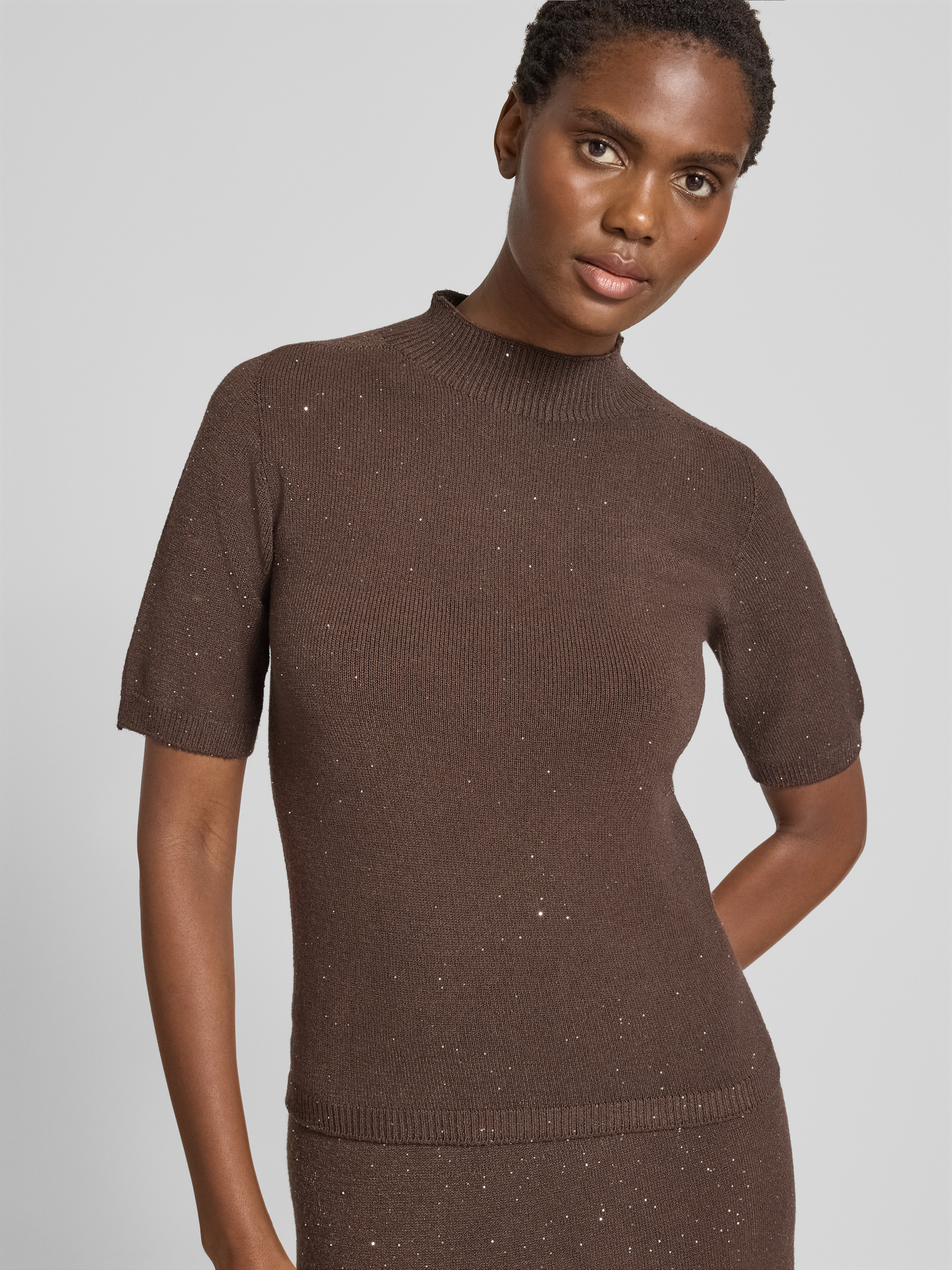 Gebreid shirt met opstaande kraag in chocoladebruin
