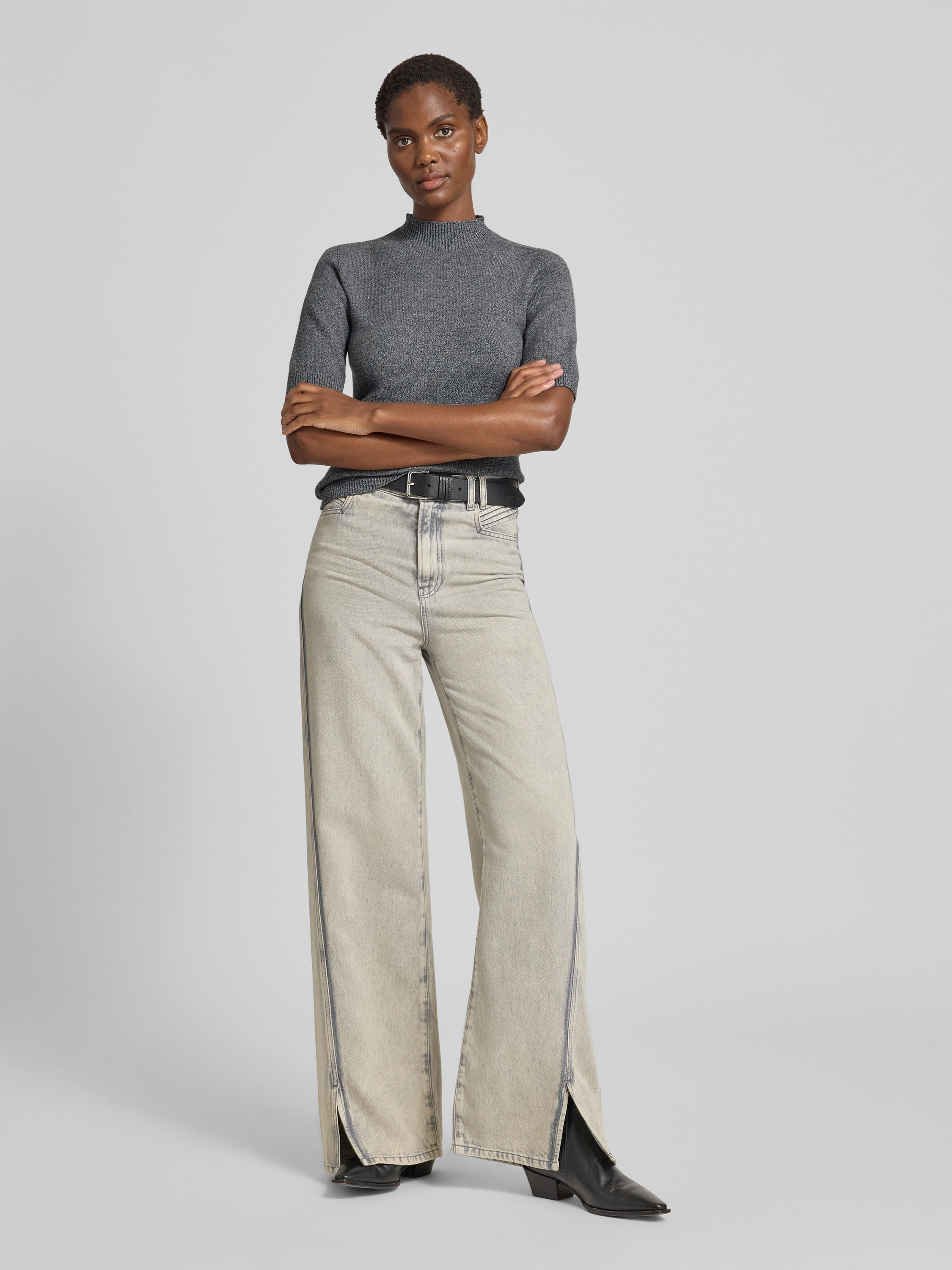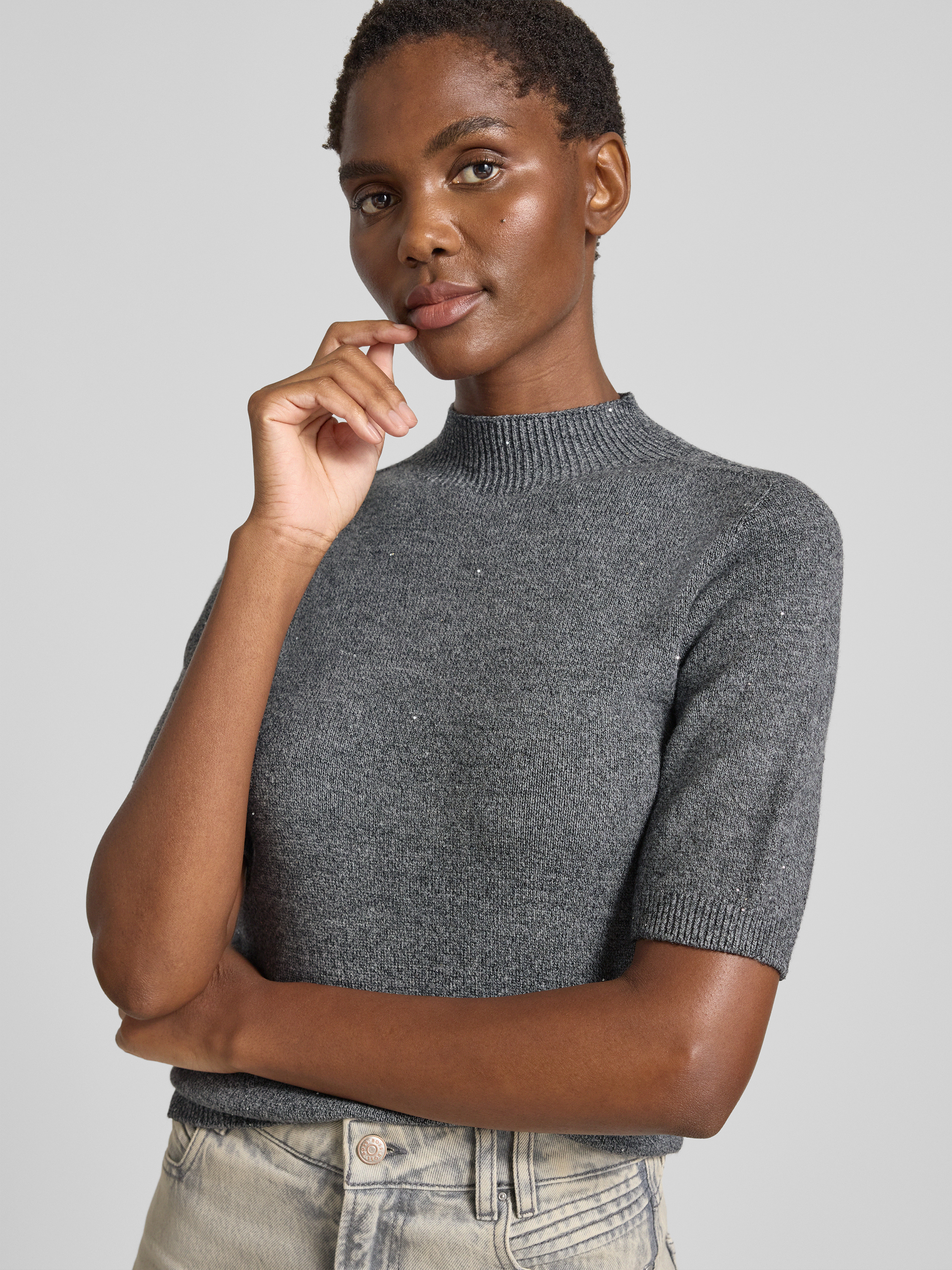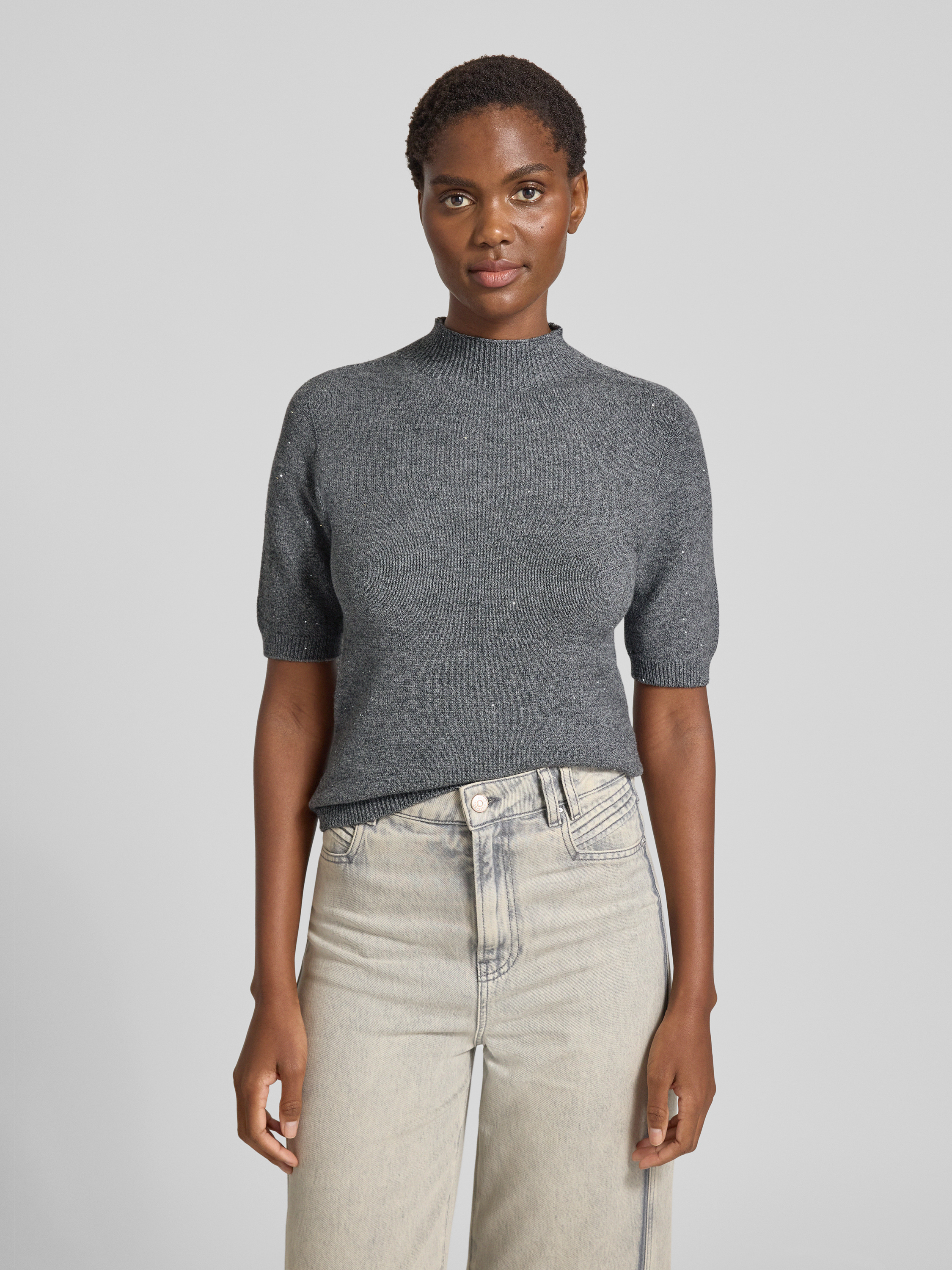 Gebreid shirt met opstaande kraag in middengrijs