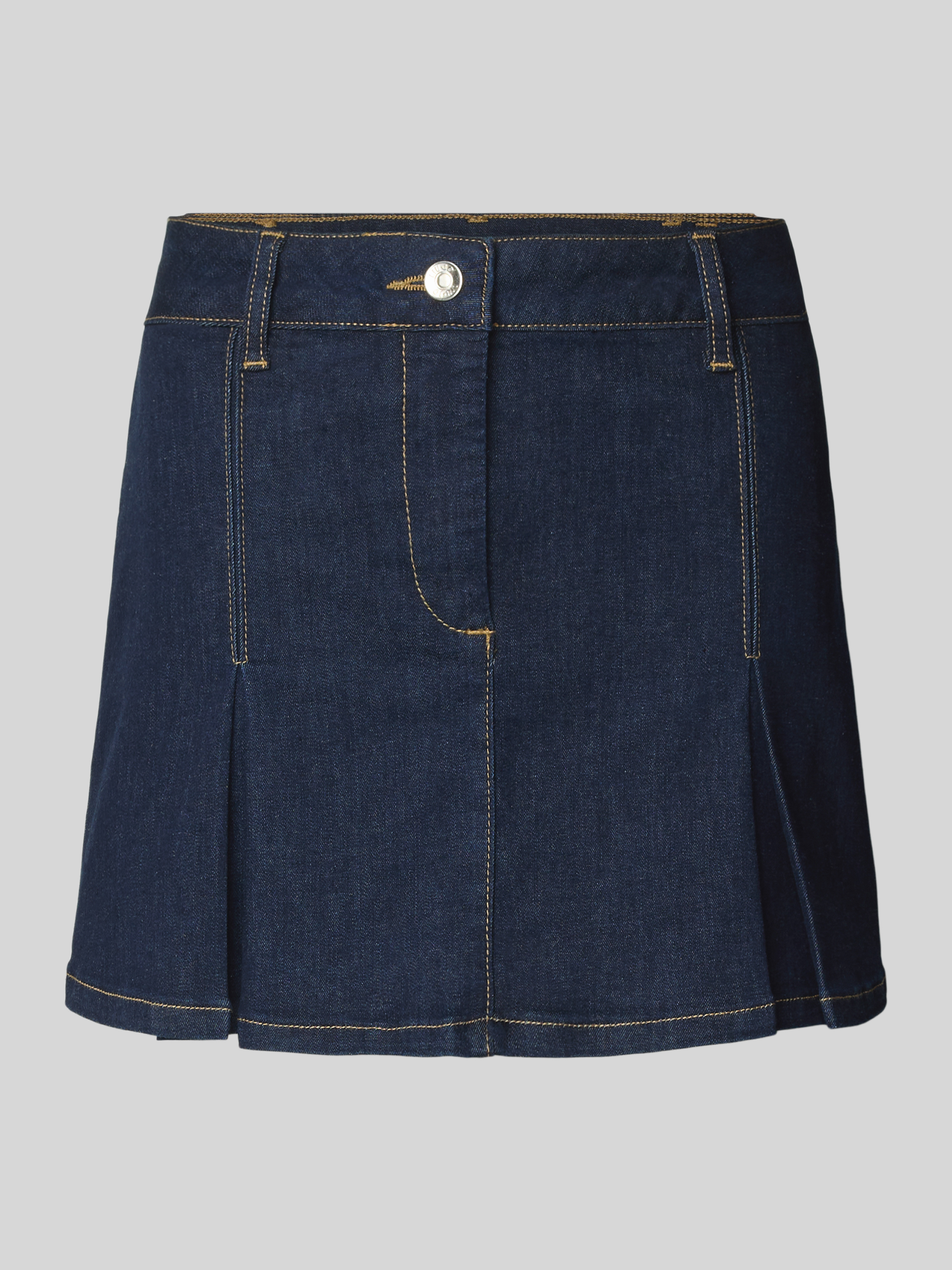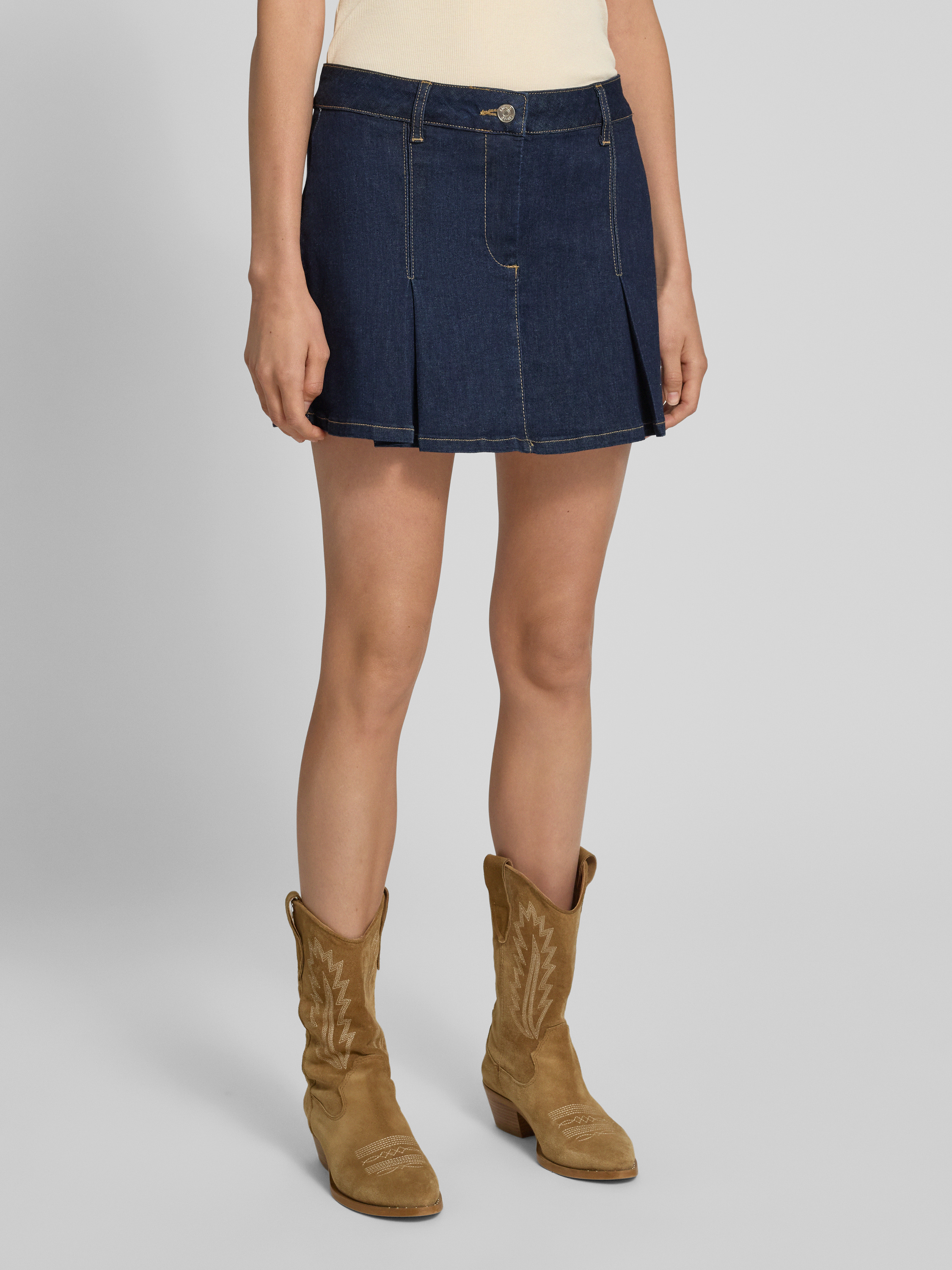 Jeansrok met platte plooien in donkerblauw