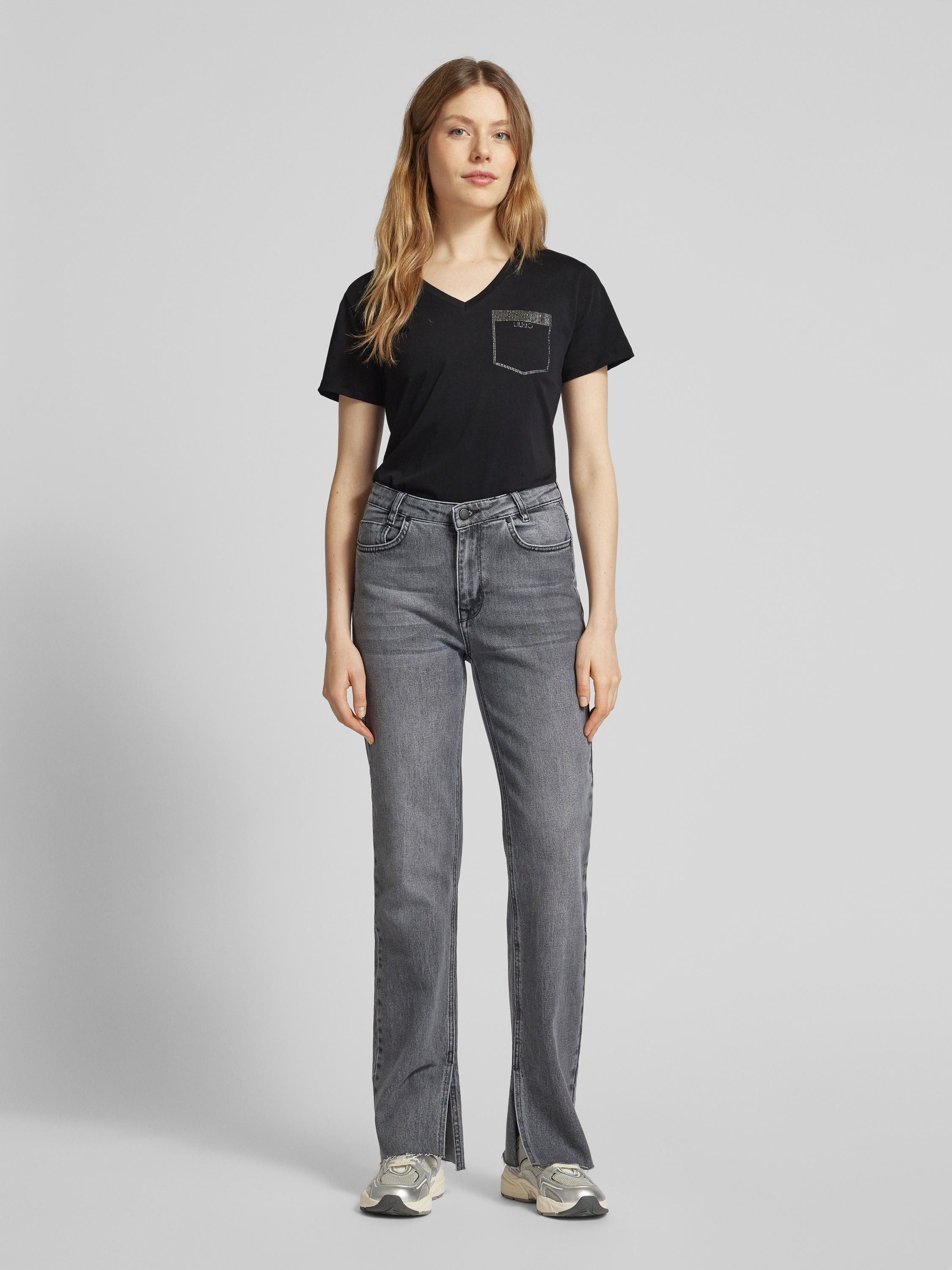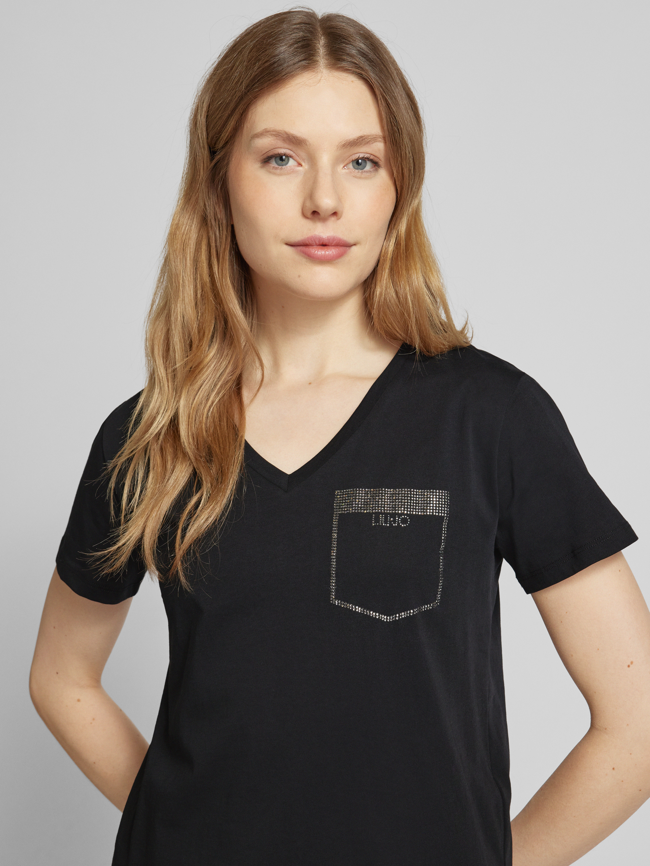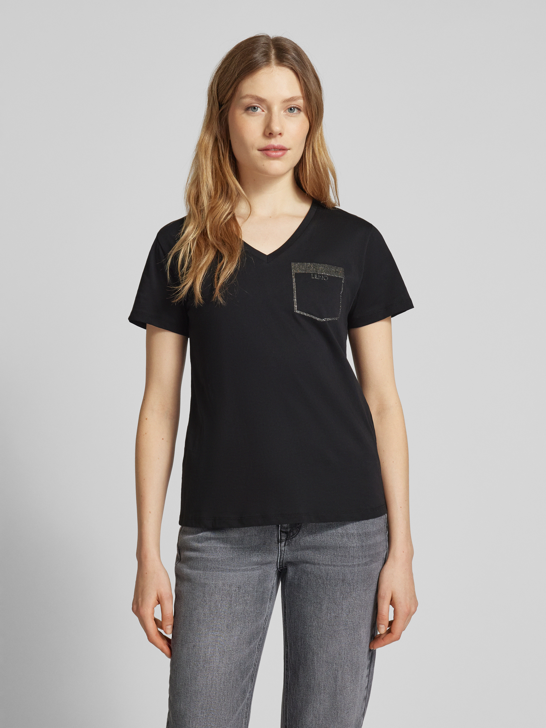 T-shirt met strass-steentjes in zwart