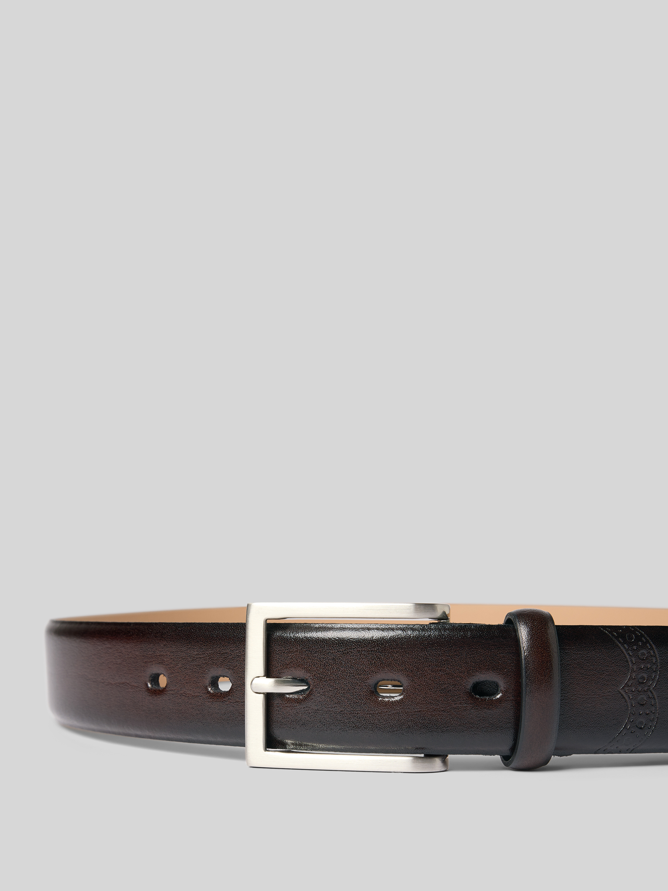 Riem van leer met doornsluiting, model 'BUDAPESTER' in donkerbruin