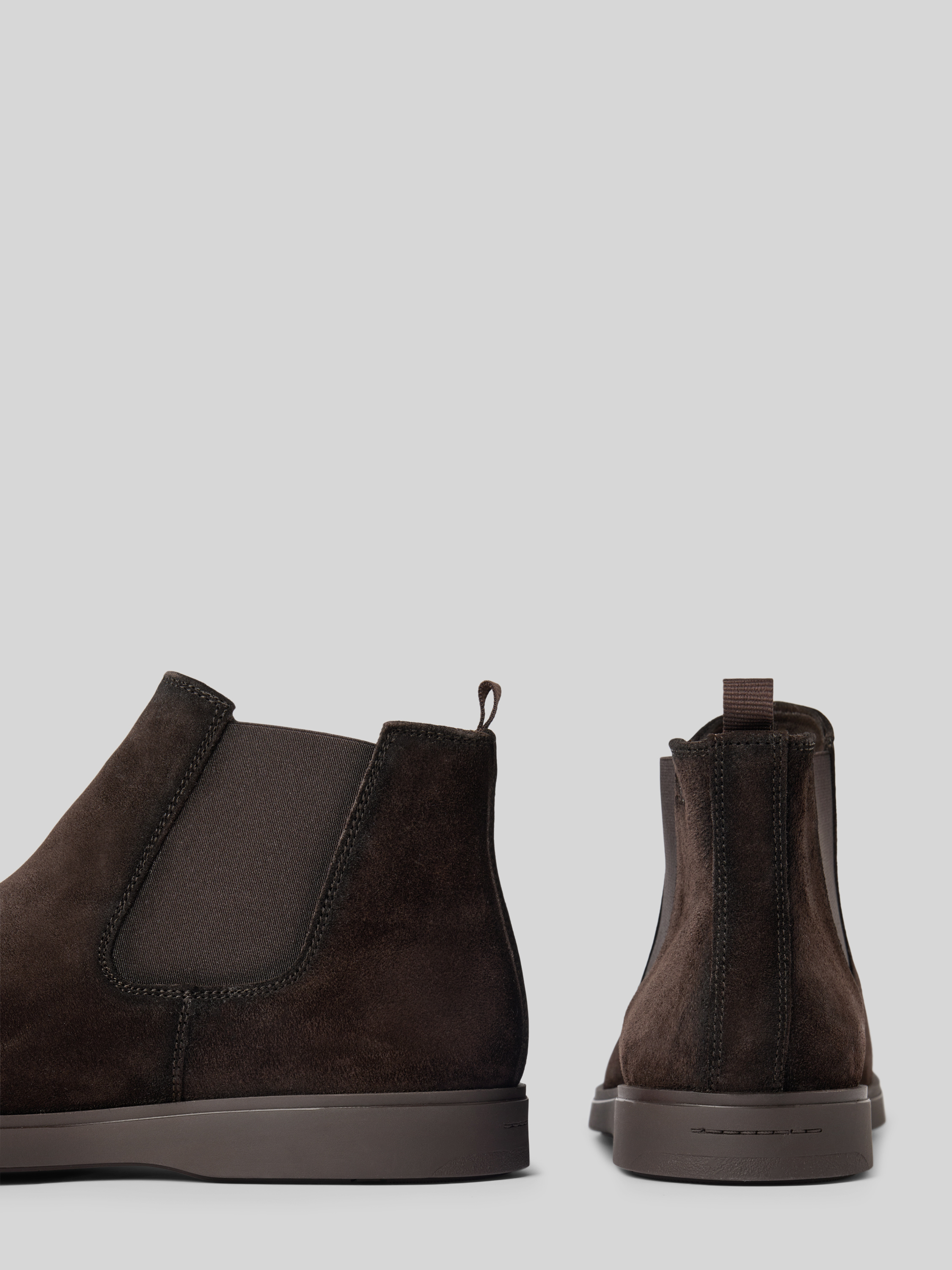 Chelsea boots van leer met treklus, model 'NYMAD' in donkerbruin