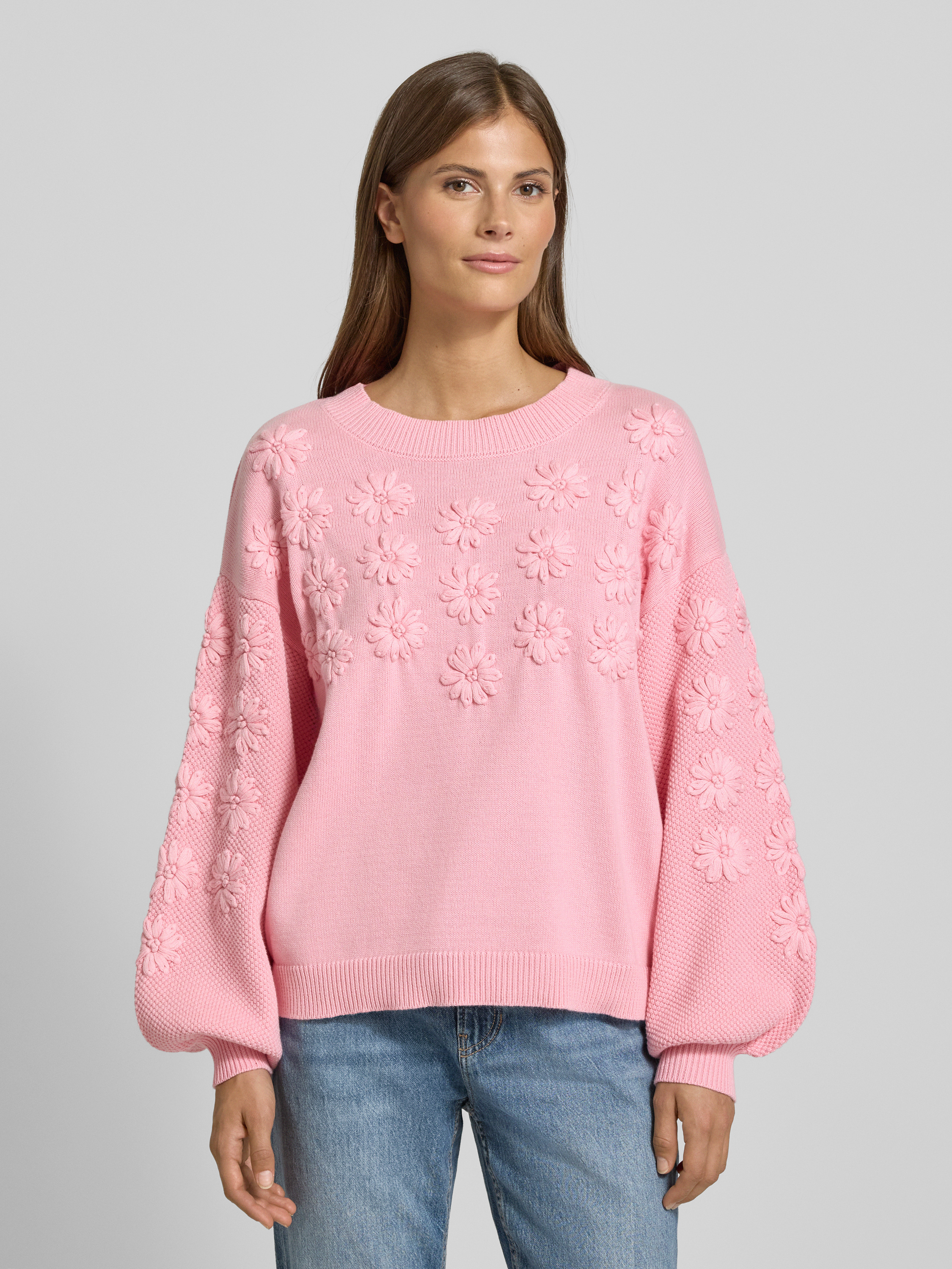 Gebreide pullover met ronde hals, model 'Musa' in roze