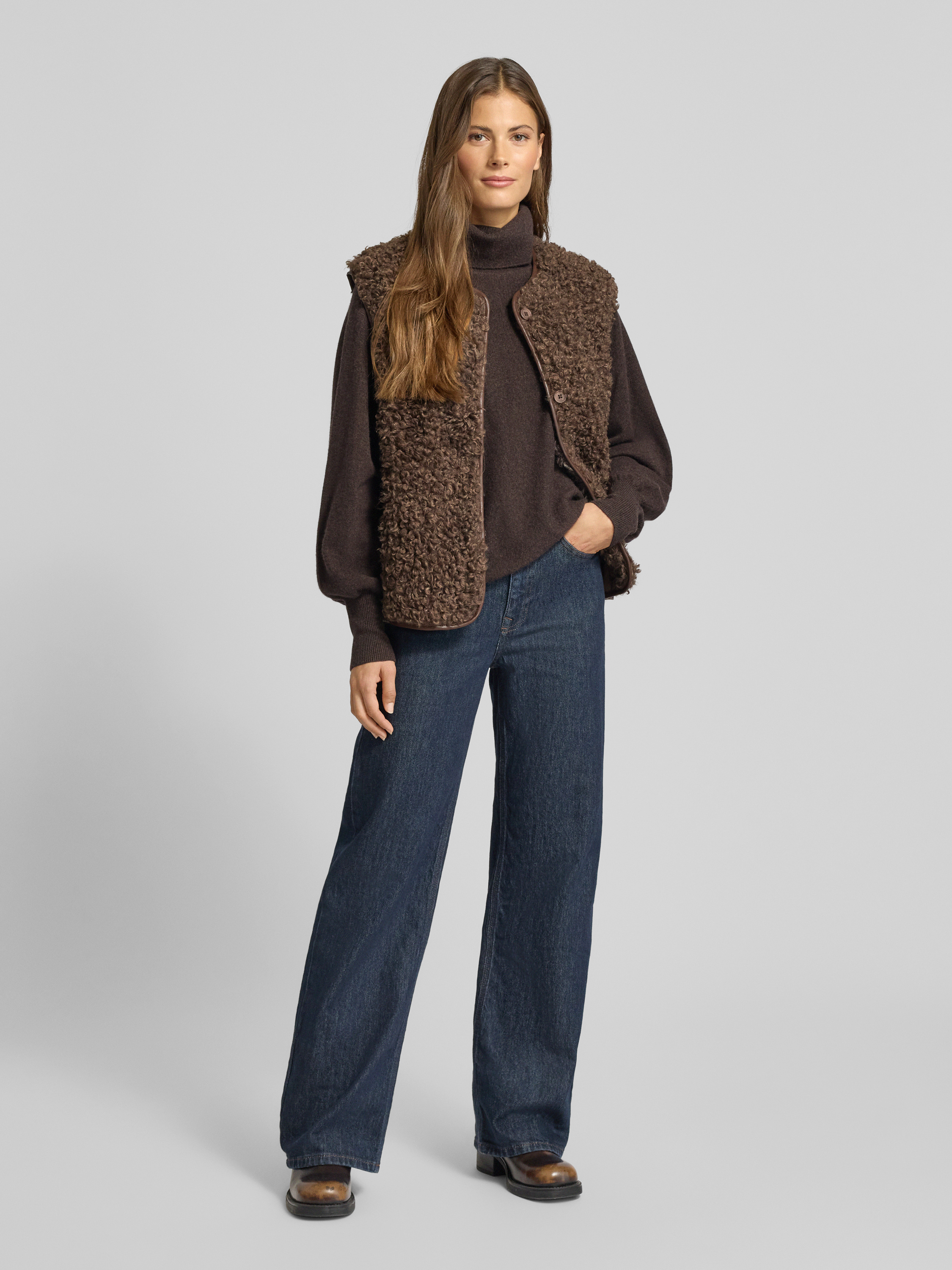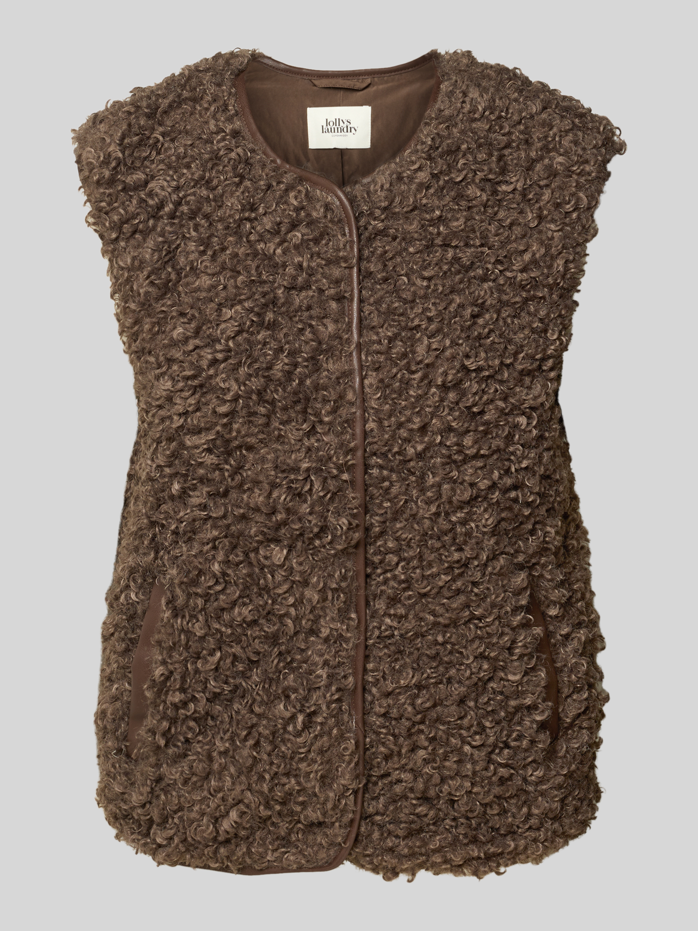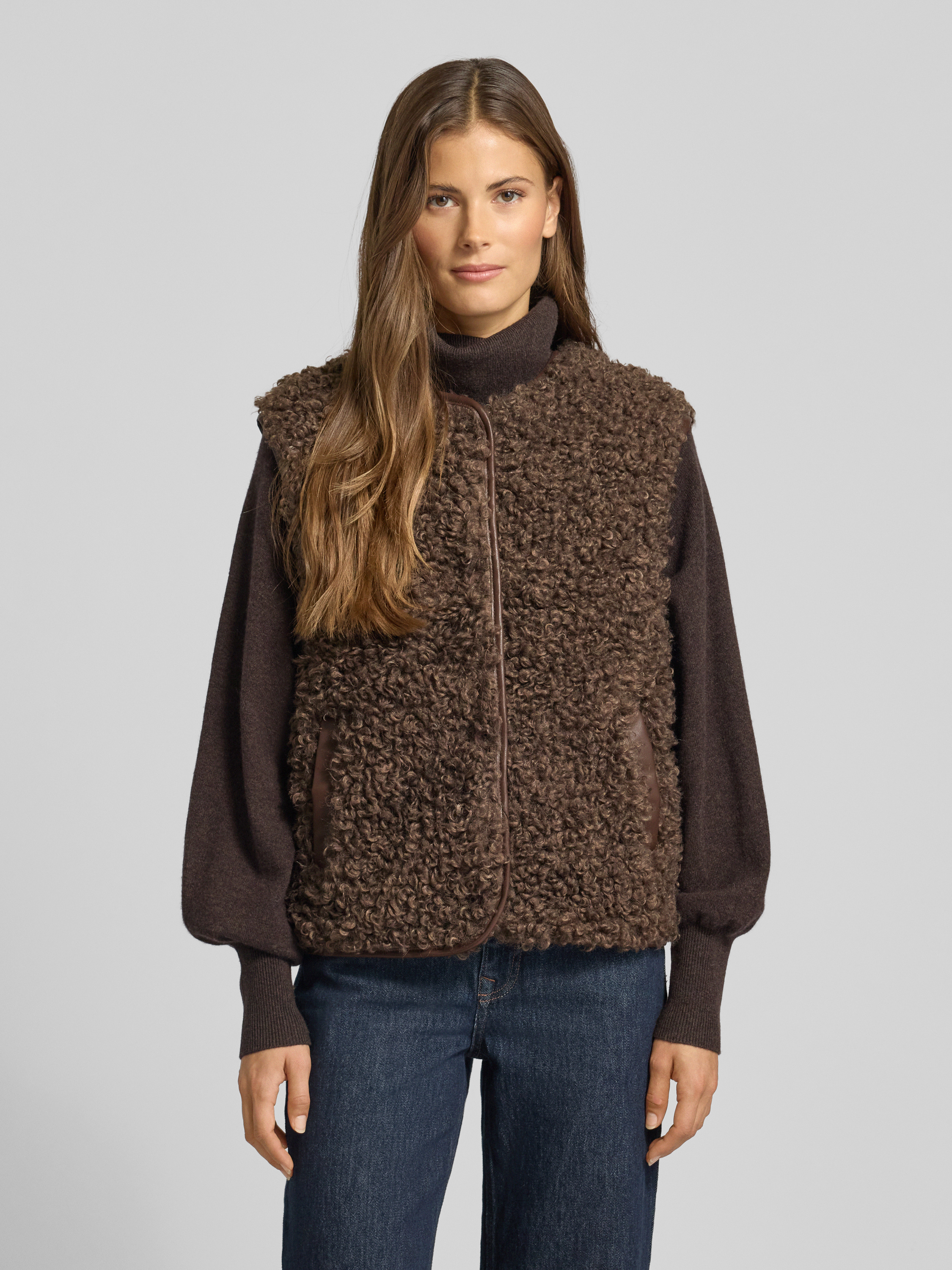 Gilet van teddybont met steekzakken, model 'Vada' in chocoladebruin