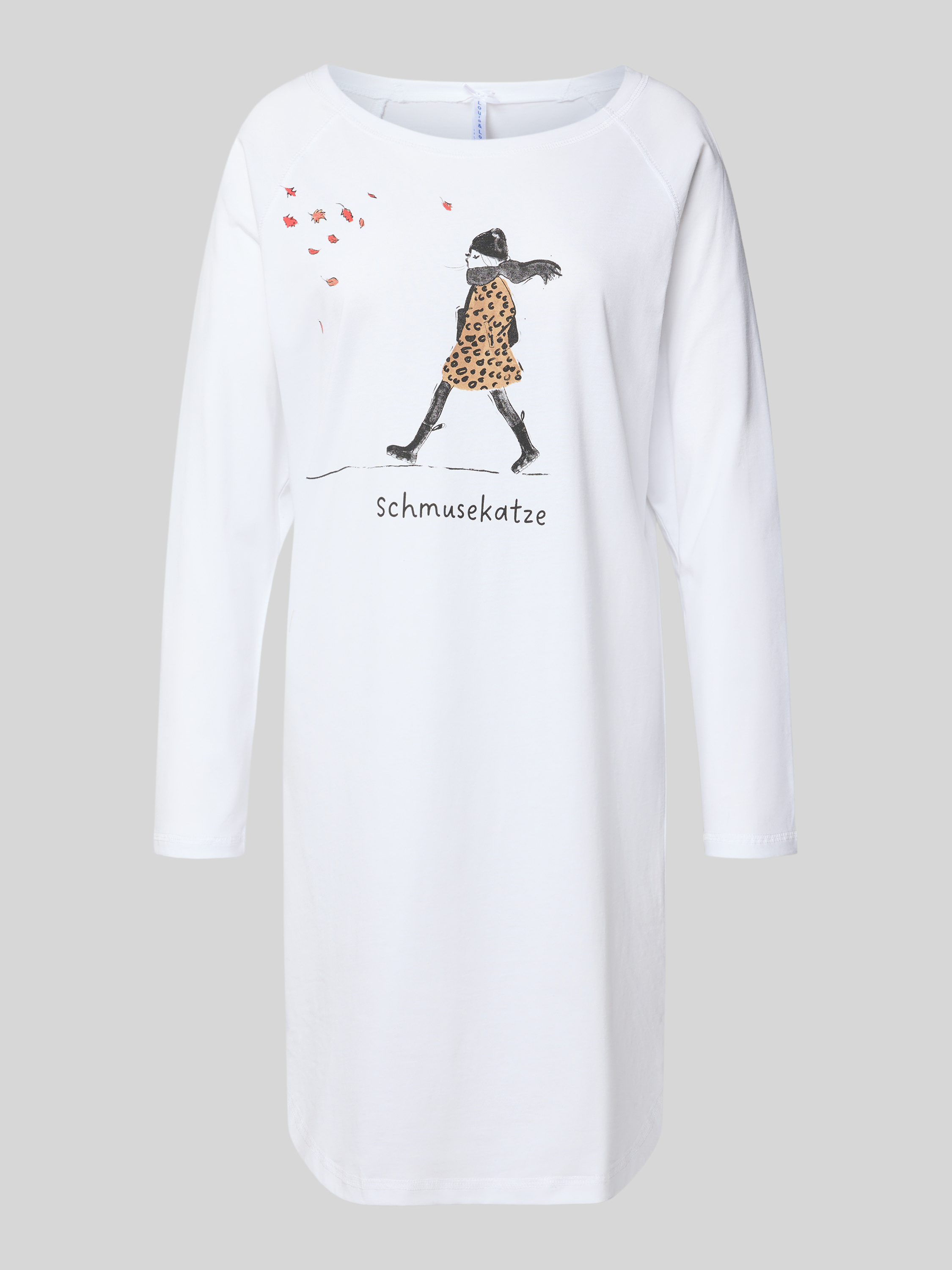 Nachthemd met motiefprint, model 'Schmusekatze' in wit