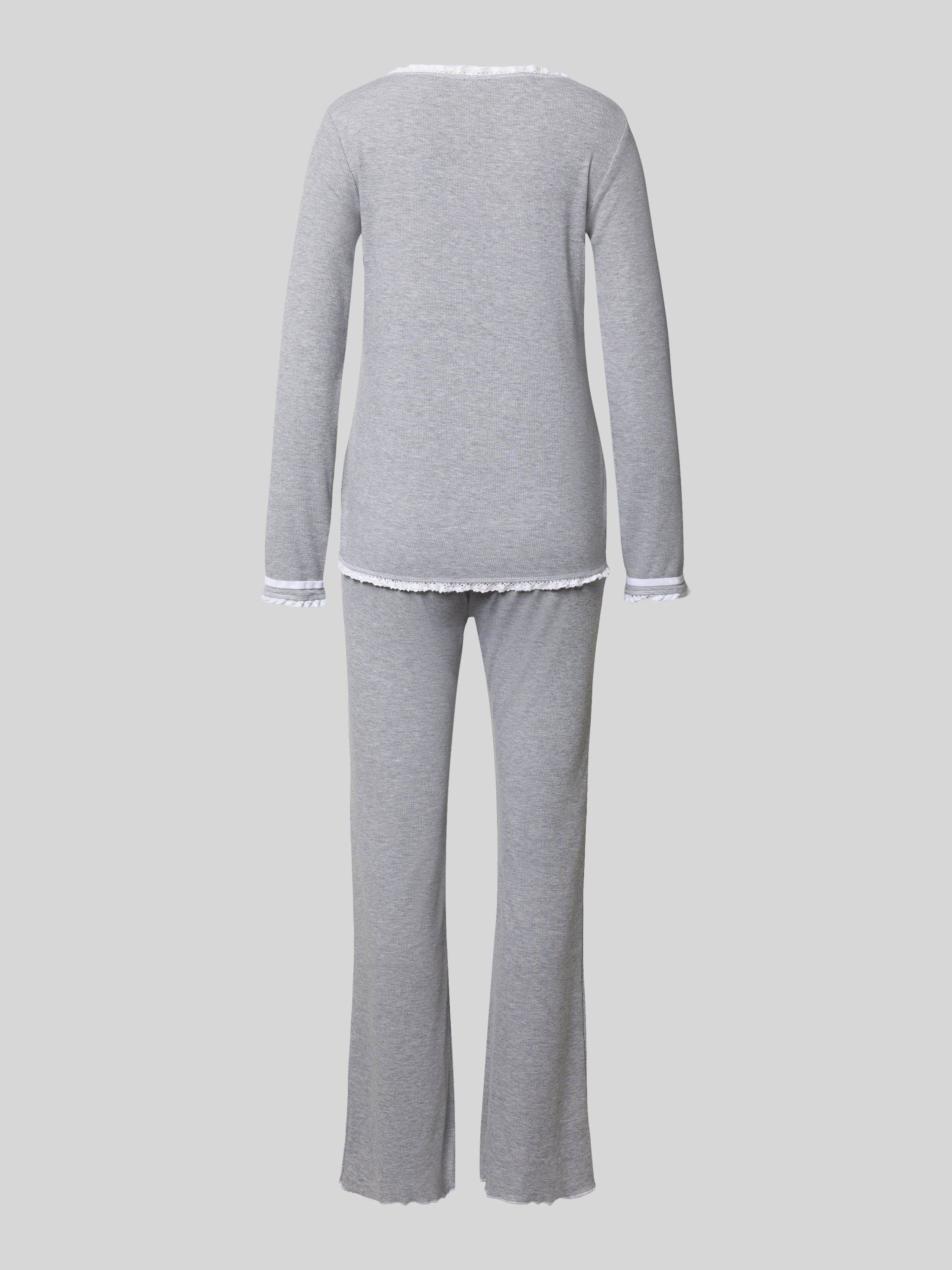 Regular fit pyjama met sierstrik, model 'Zeit zum Kuscheln' in lichtgrijs