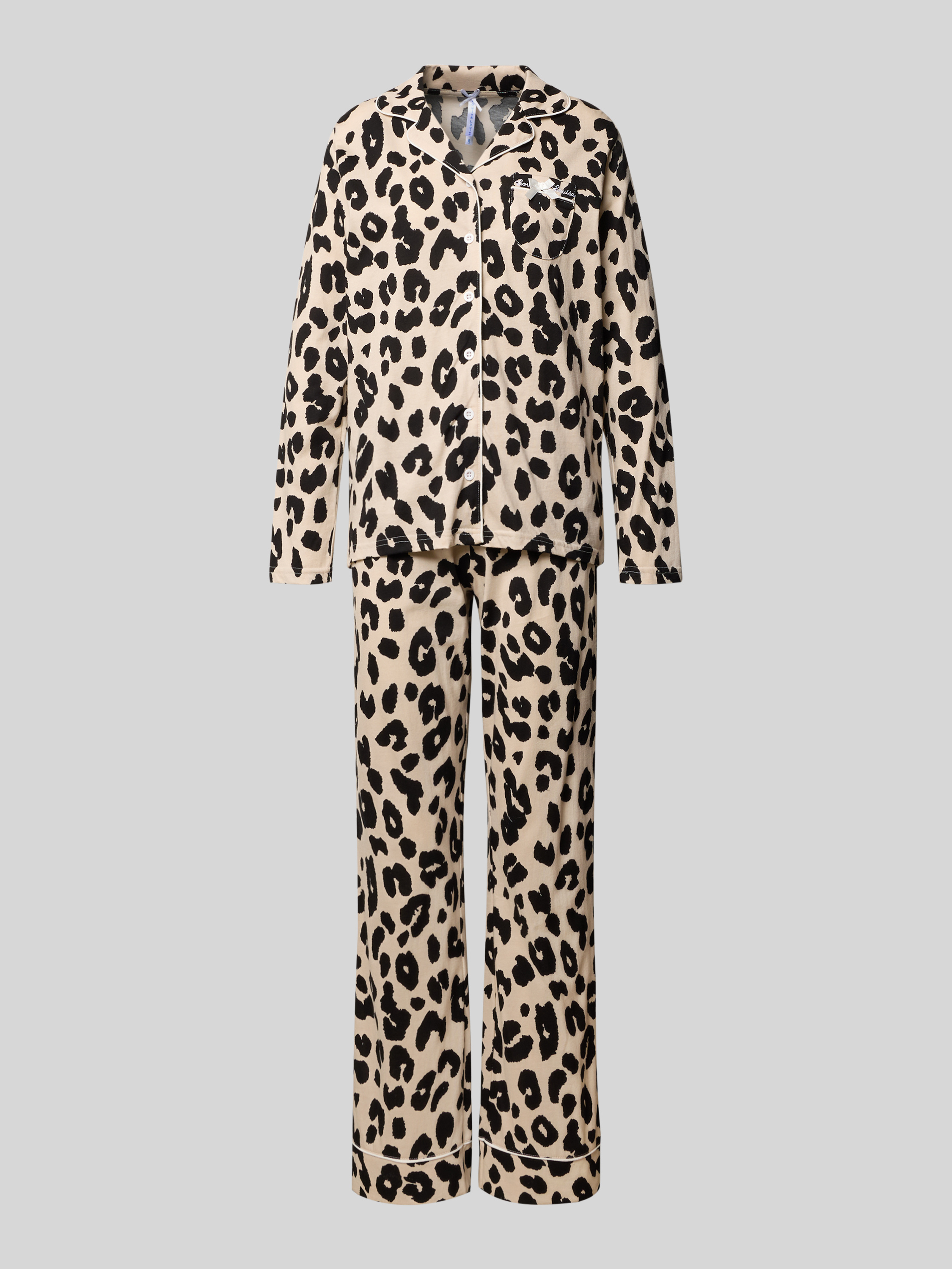 Relaxed fit pyjama met reverskraag, model 'Schmusekatze' in zwart