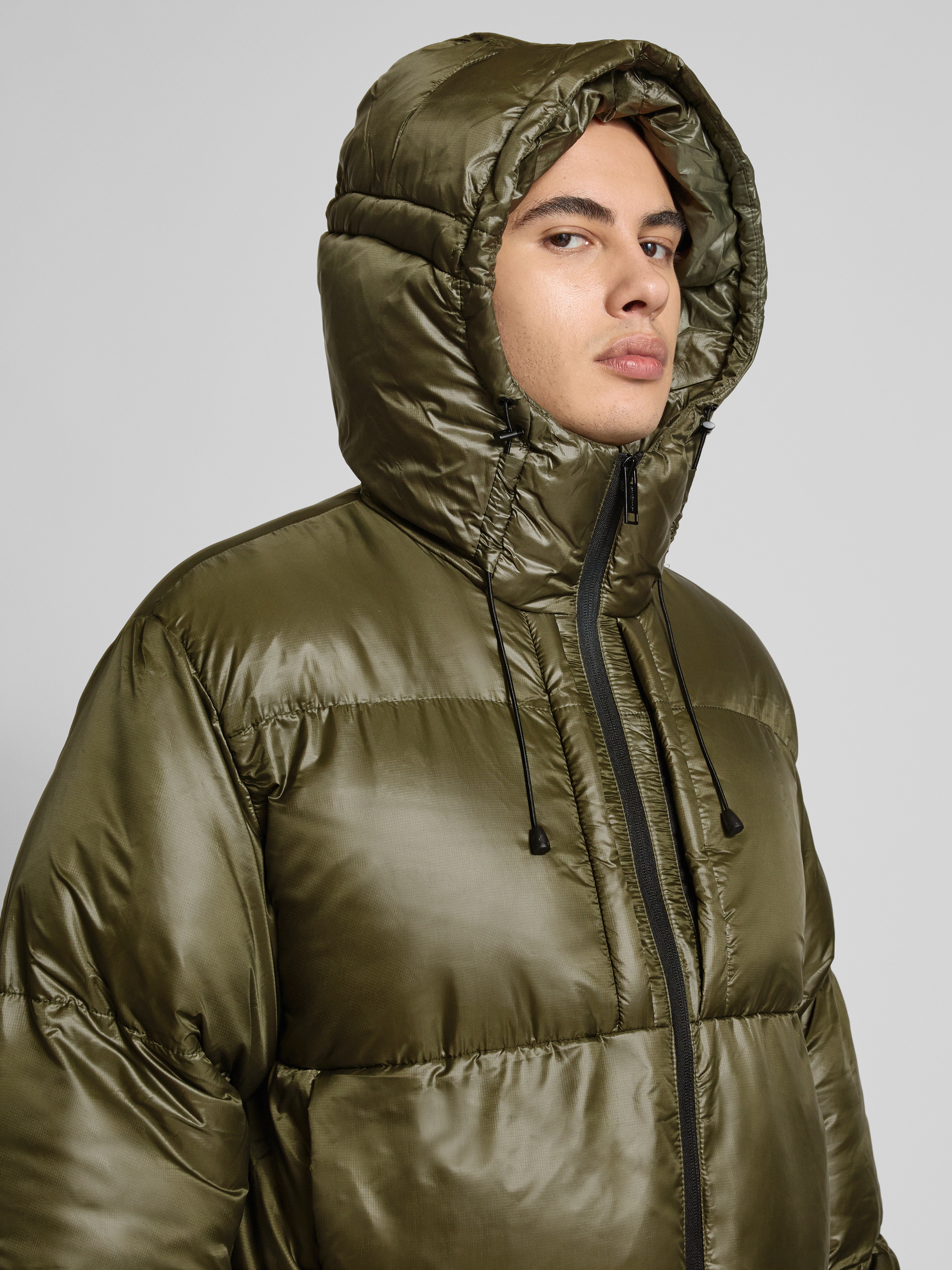 Gewatteerd jack met labelprint, model 'LYNX' in olijfgroen