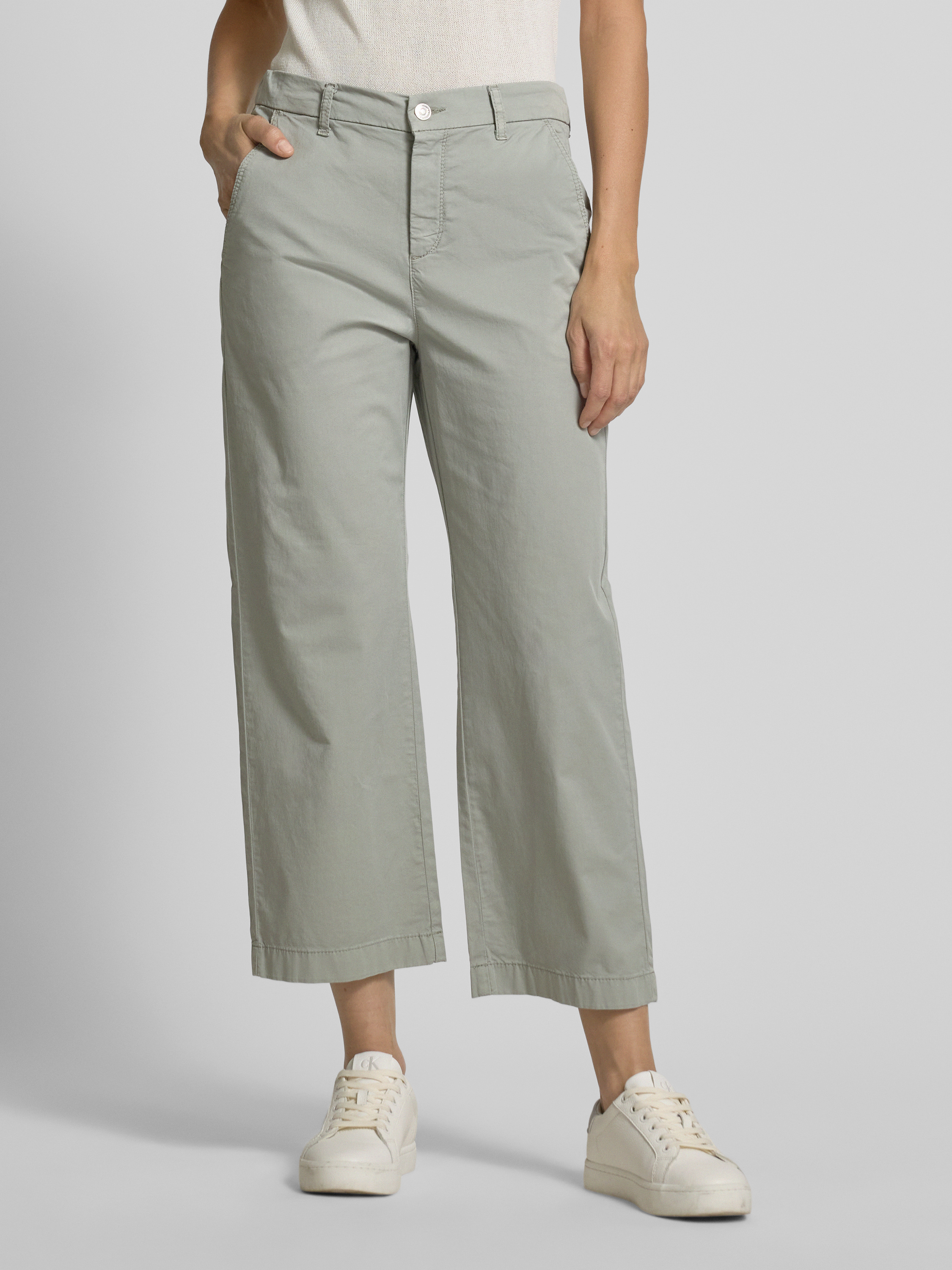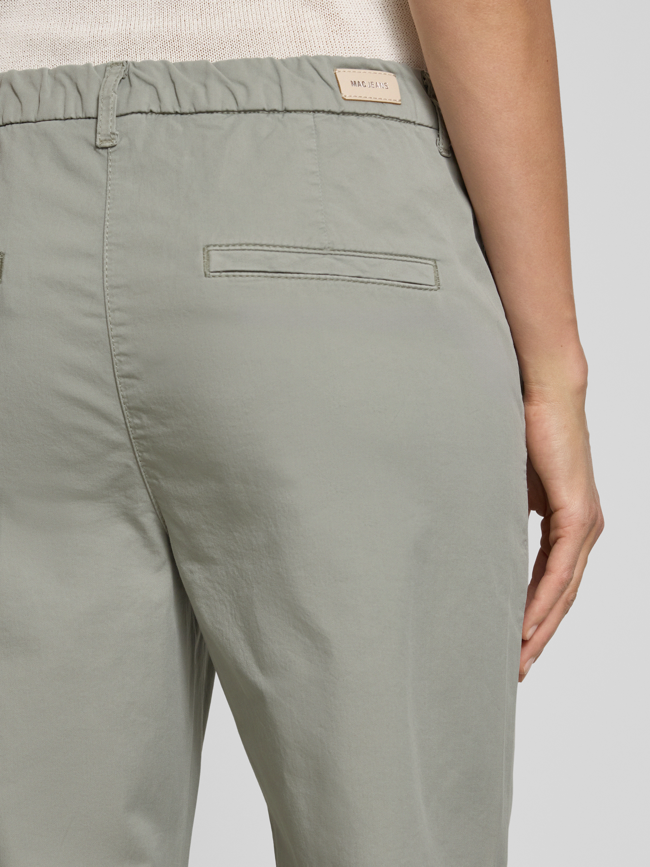 Capribroek met paspelzakken aan de achterkant in rietgroen