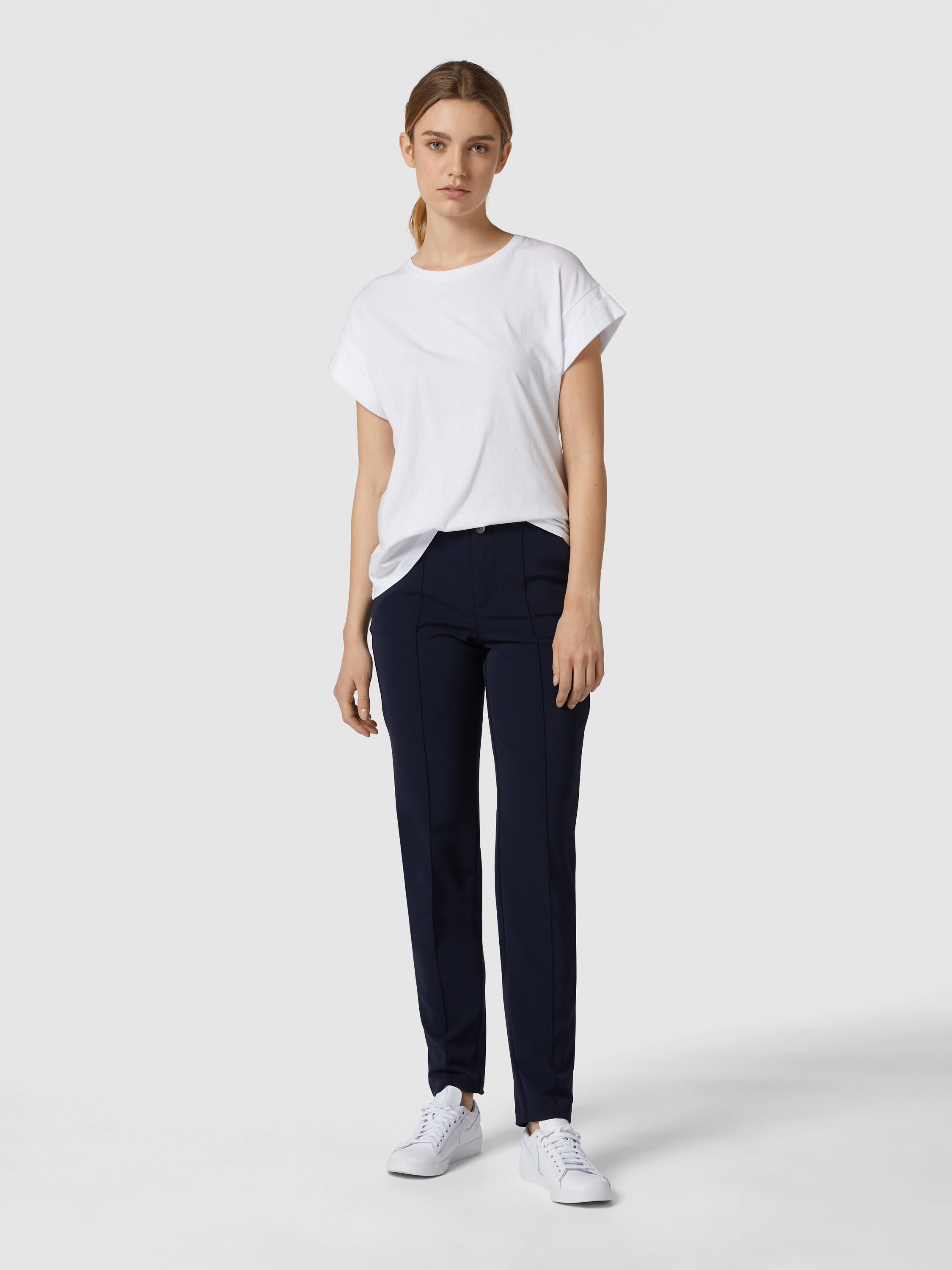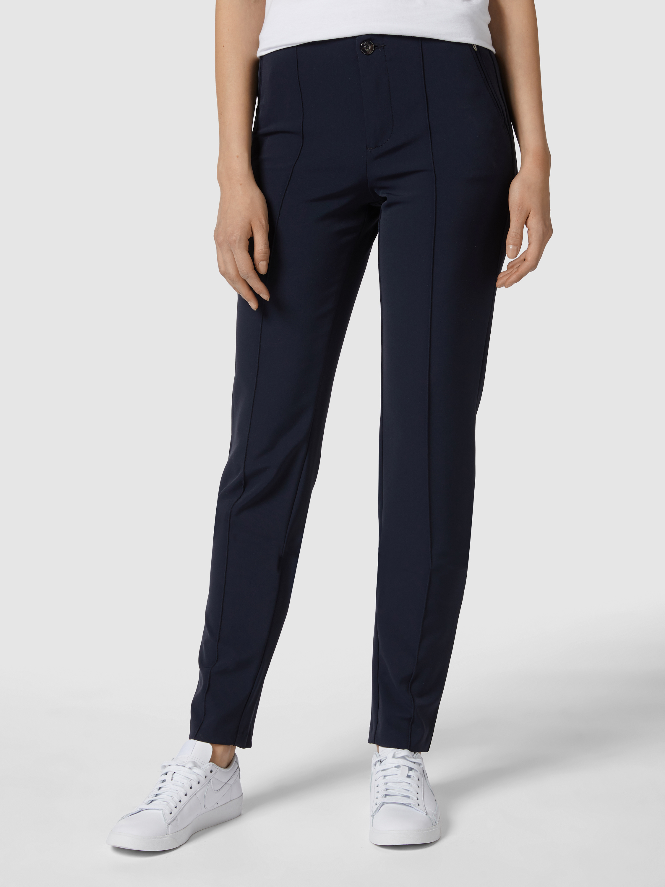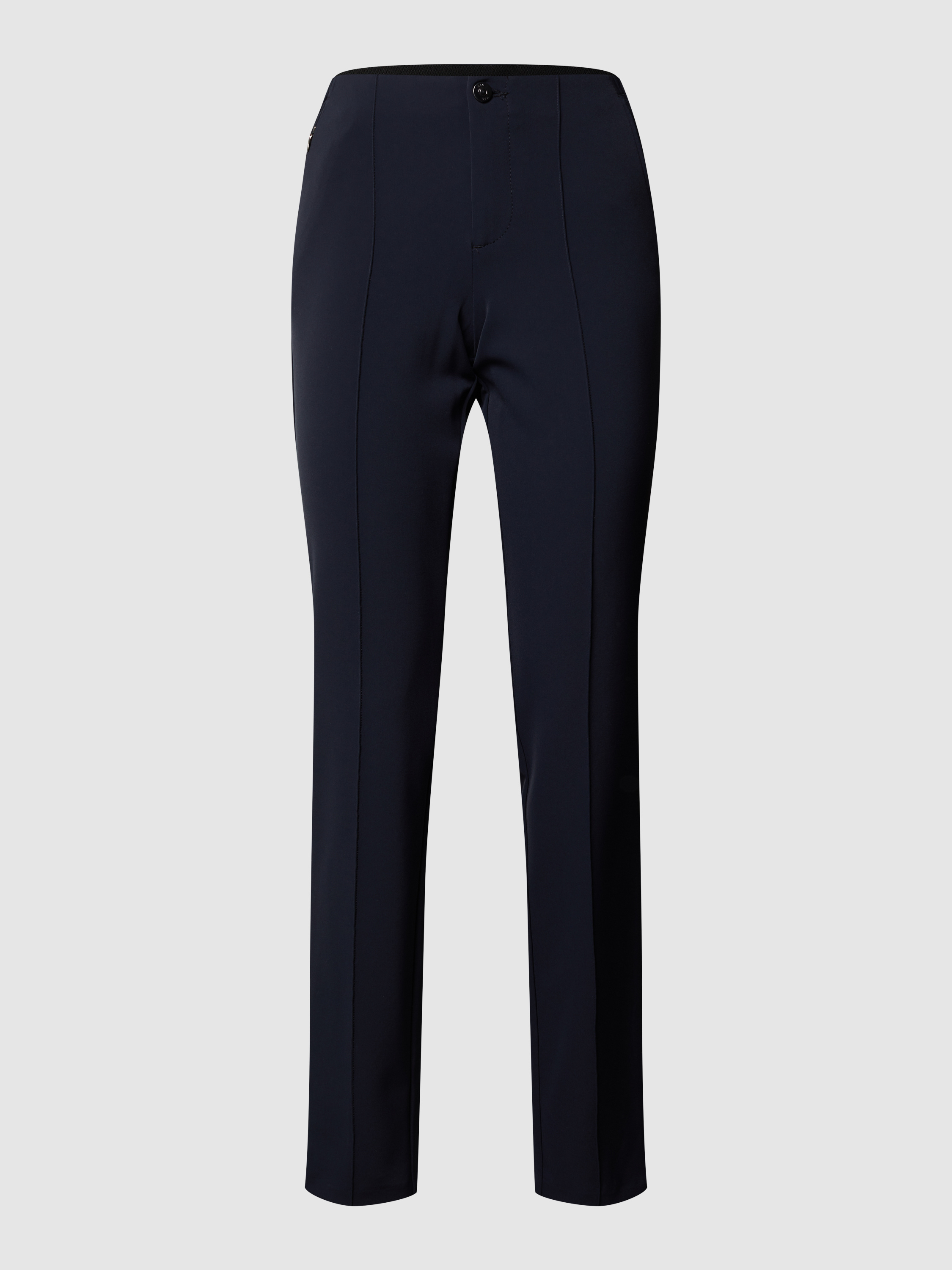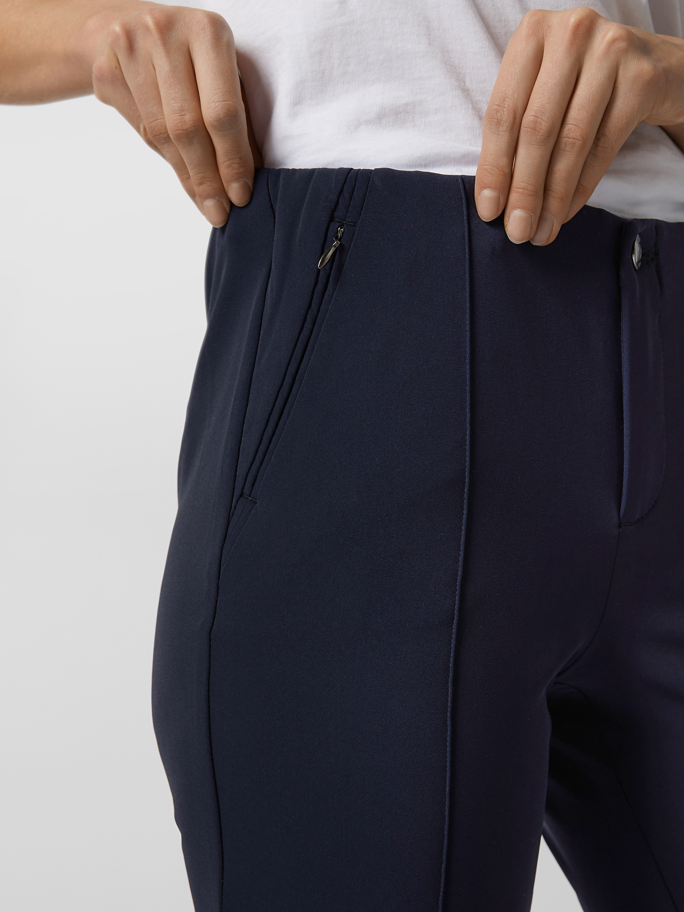 MACStretchbroek met vaste plooien, model 'ANNA ZIP' in marineblauw