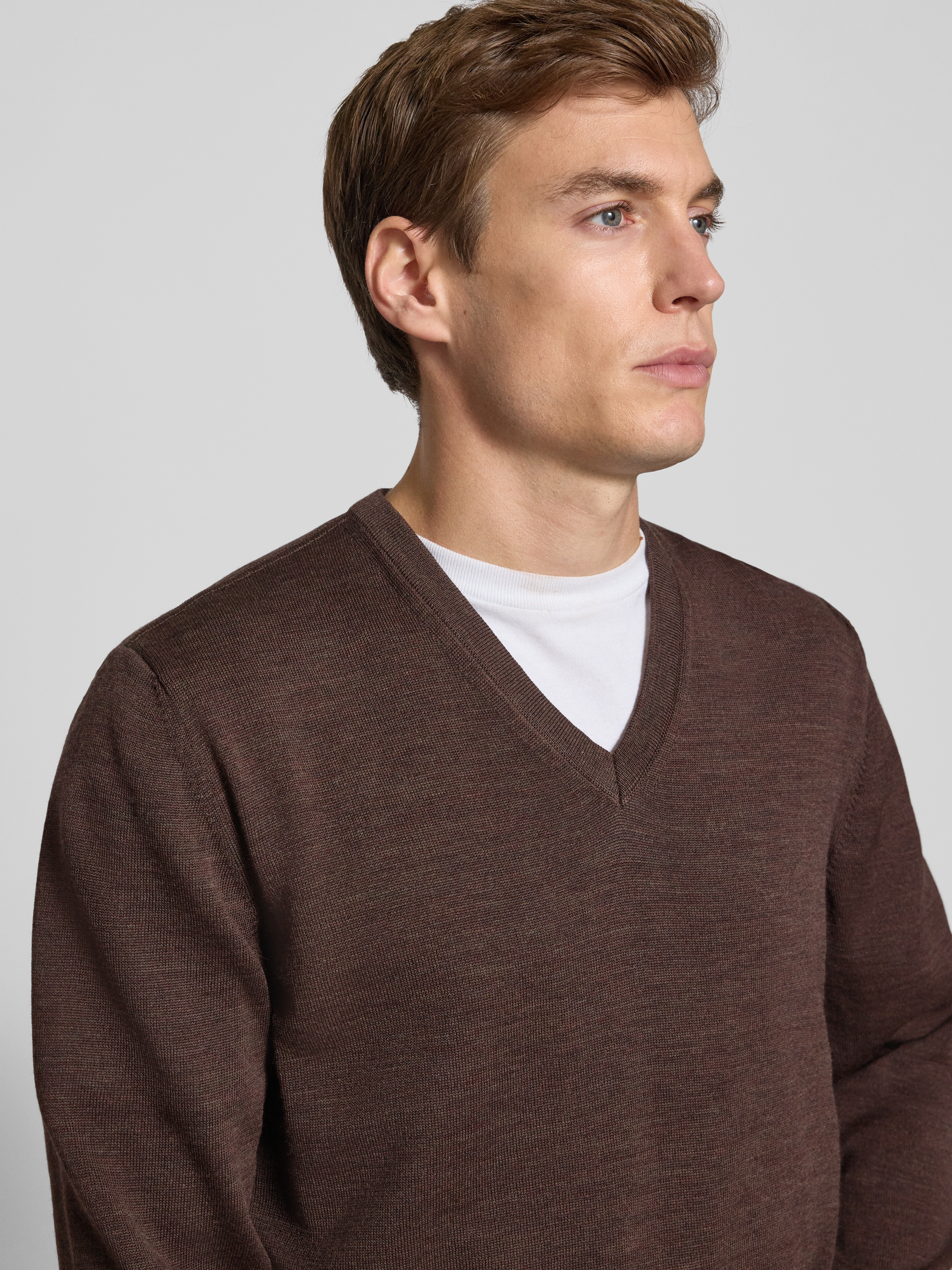 Gebreide pullover van merinowol in middenbruin