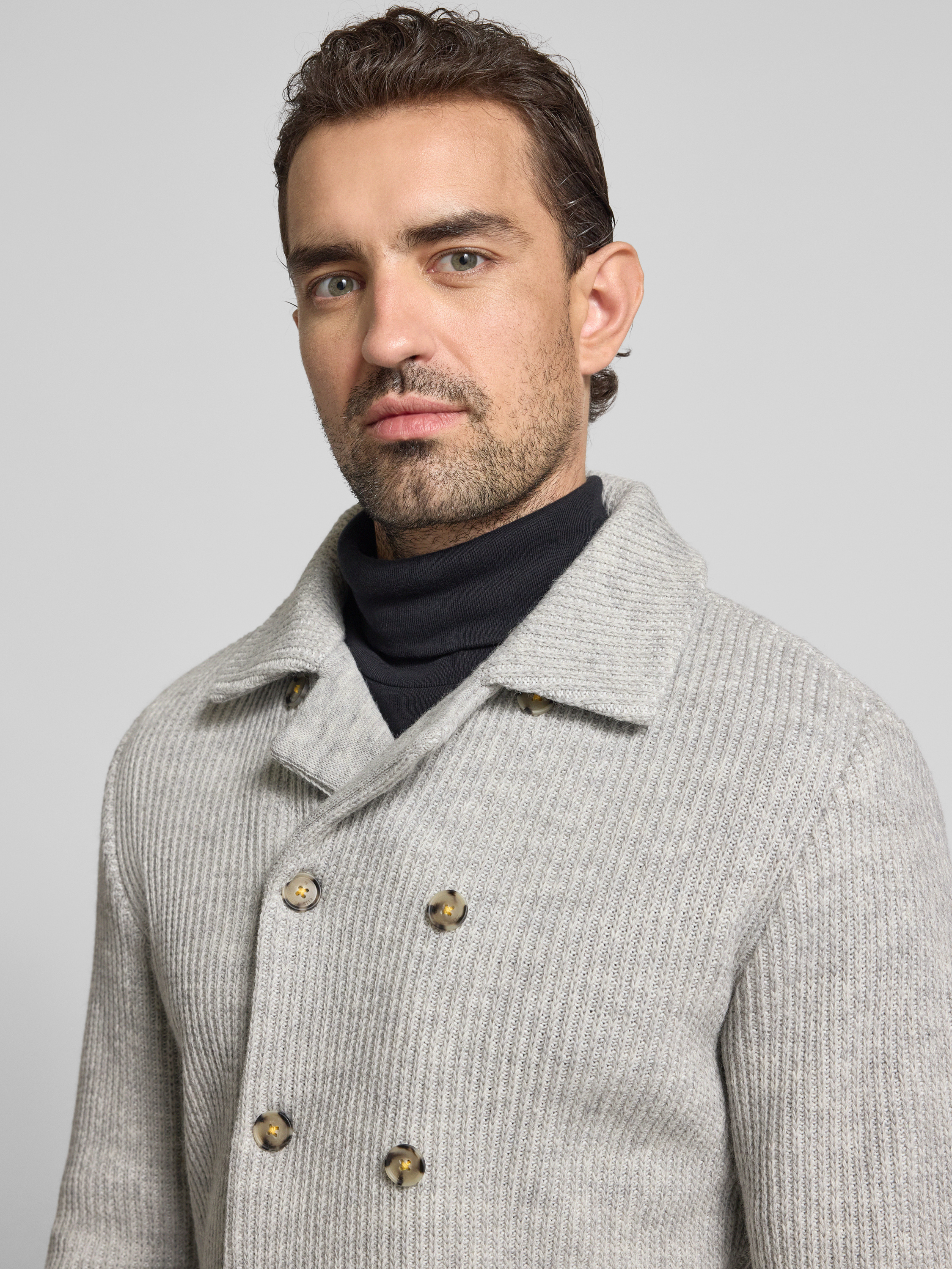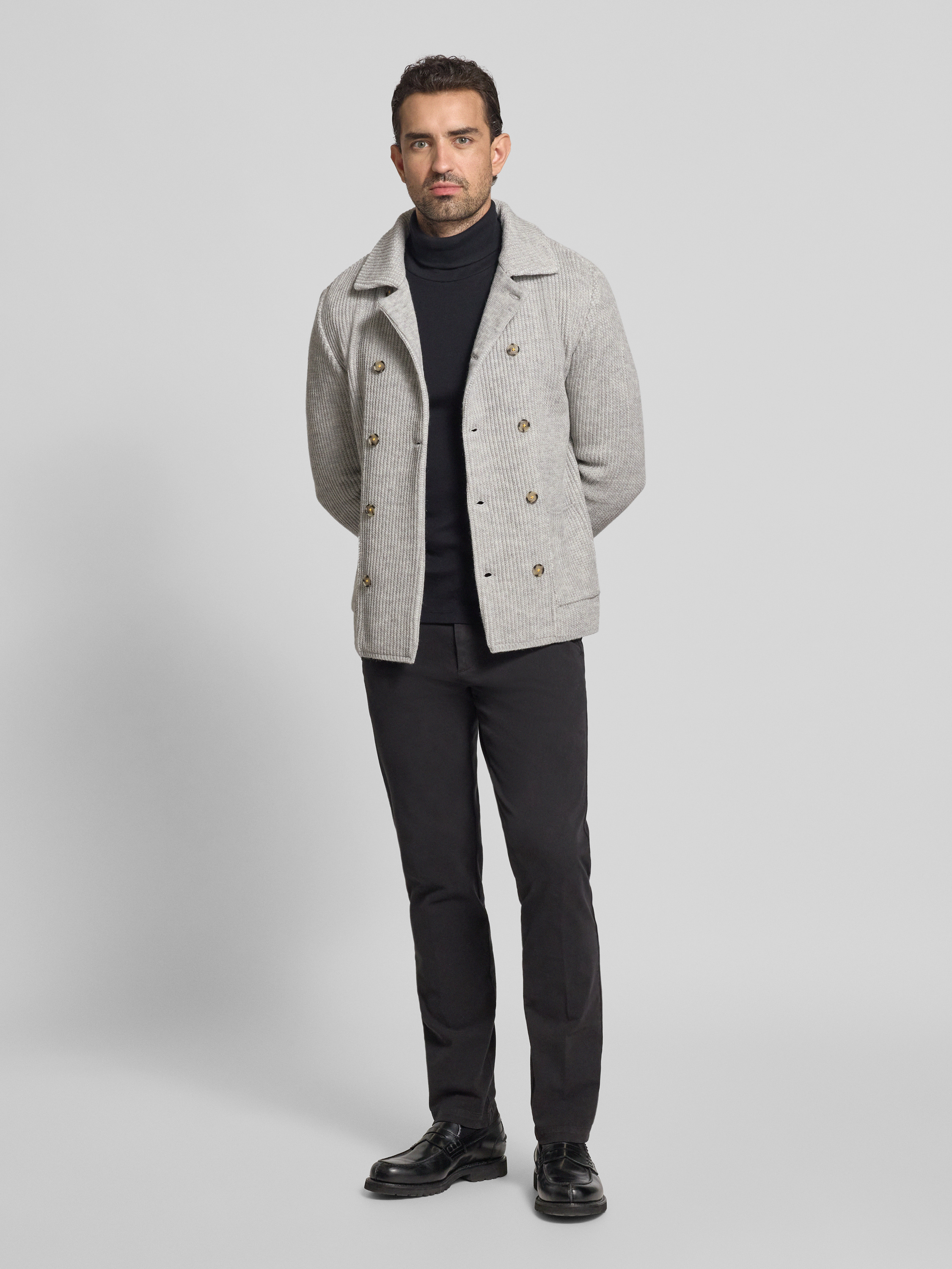 Gebreid jack met opgestikte steekzakken in lichtgrijs