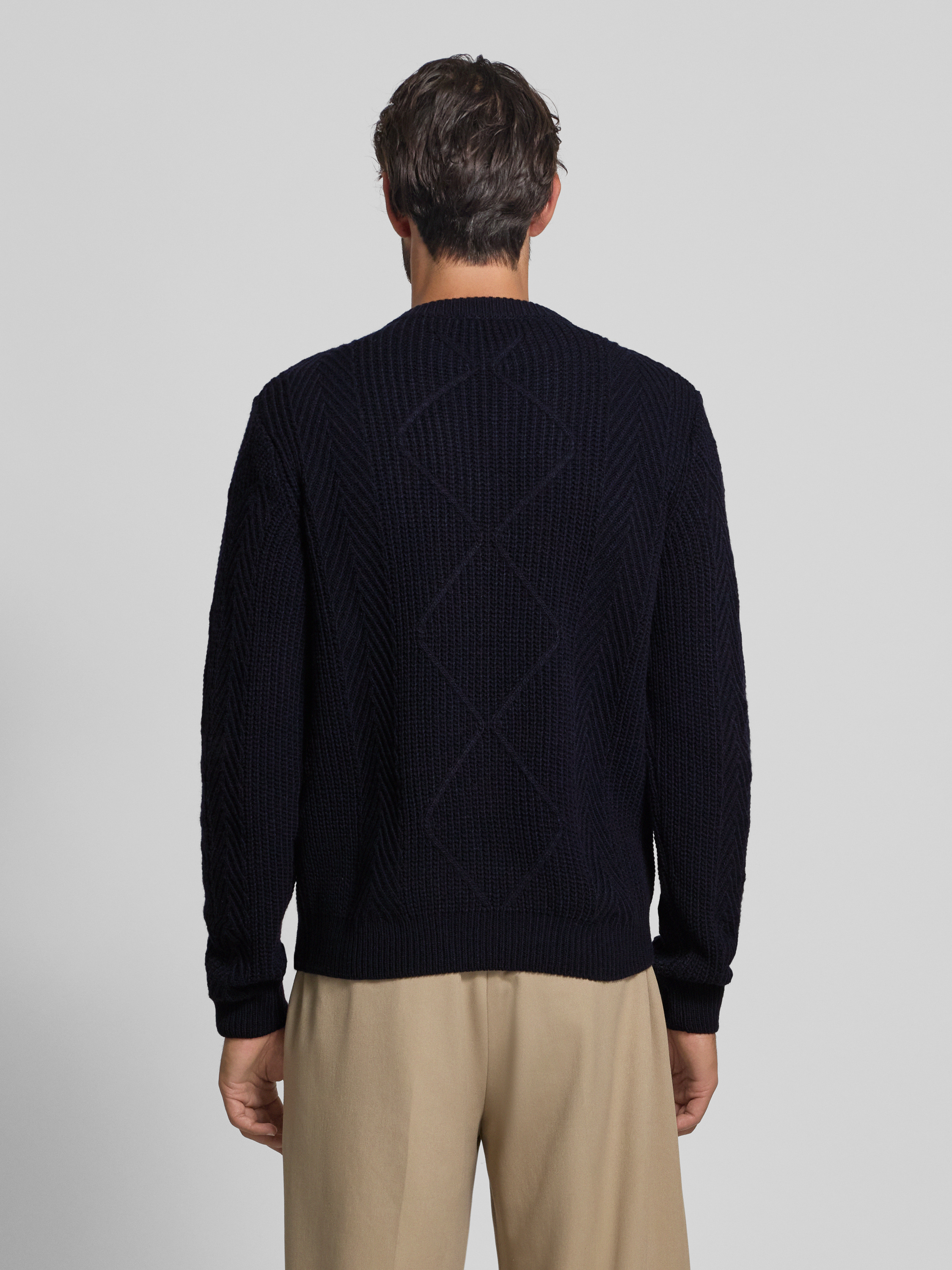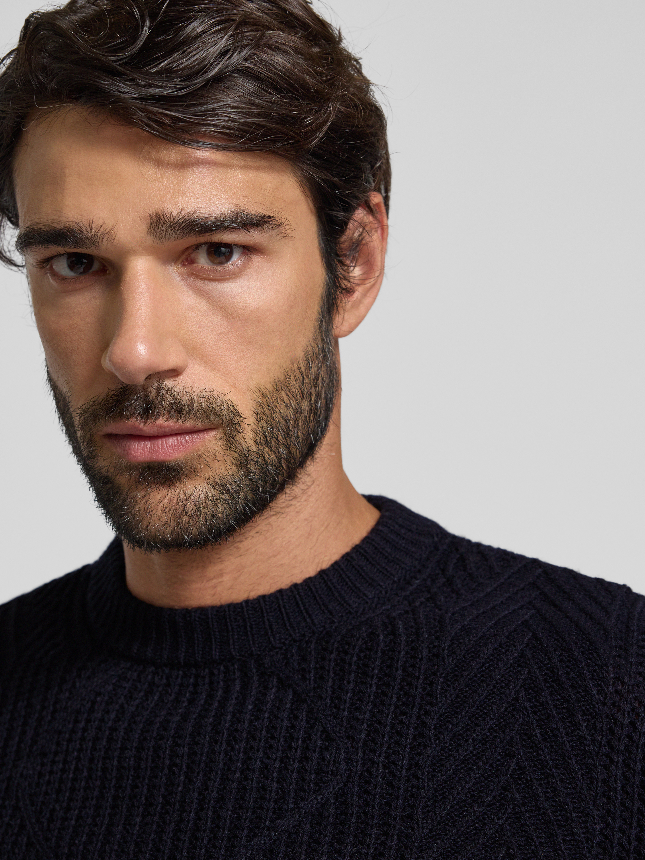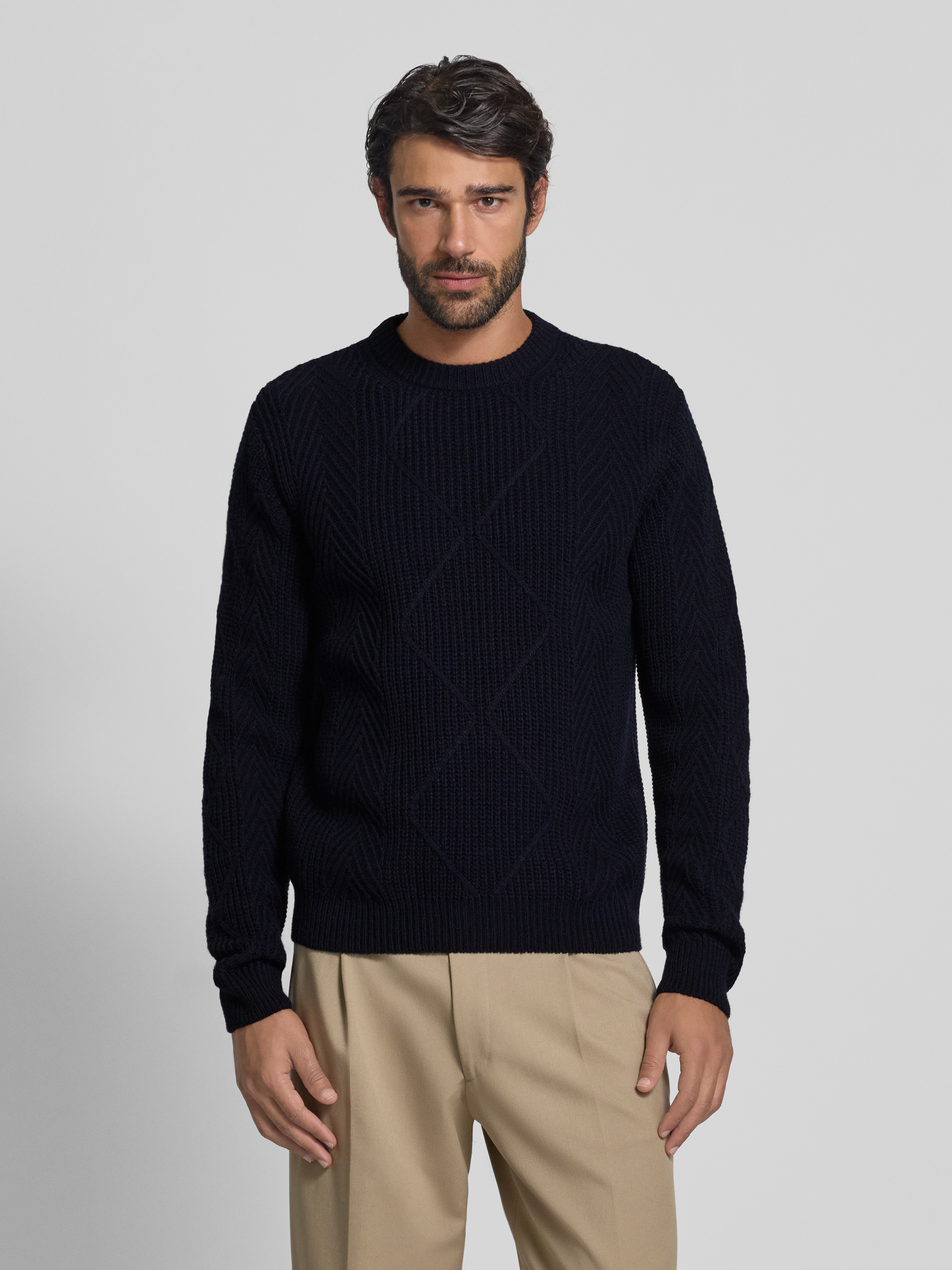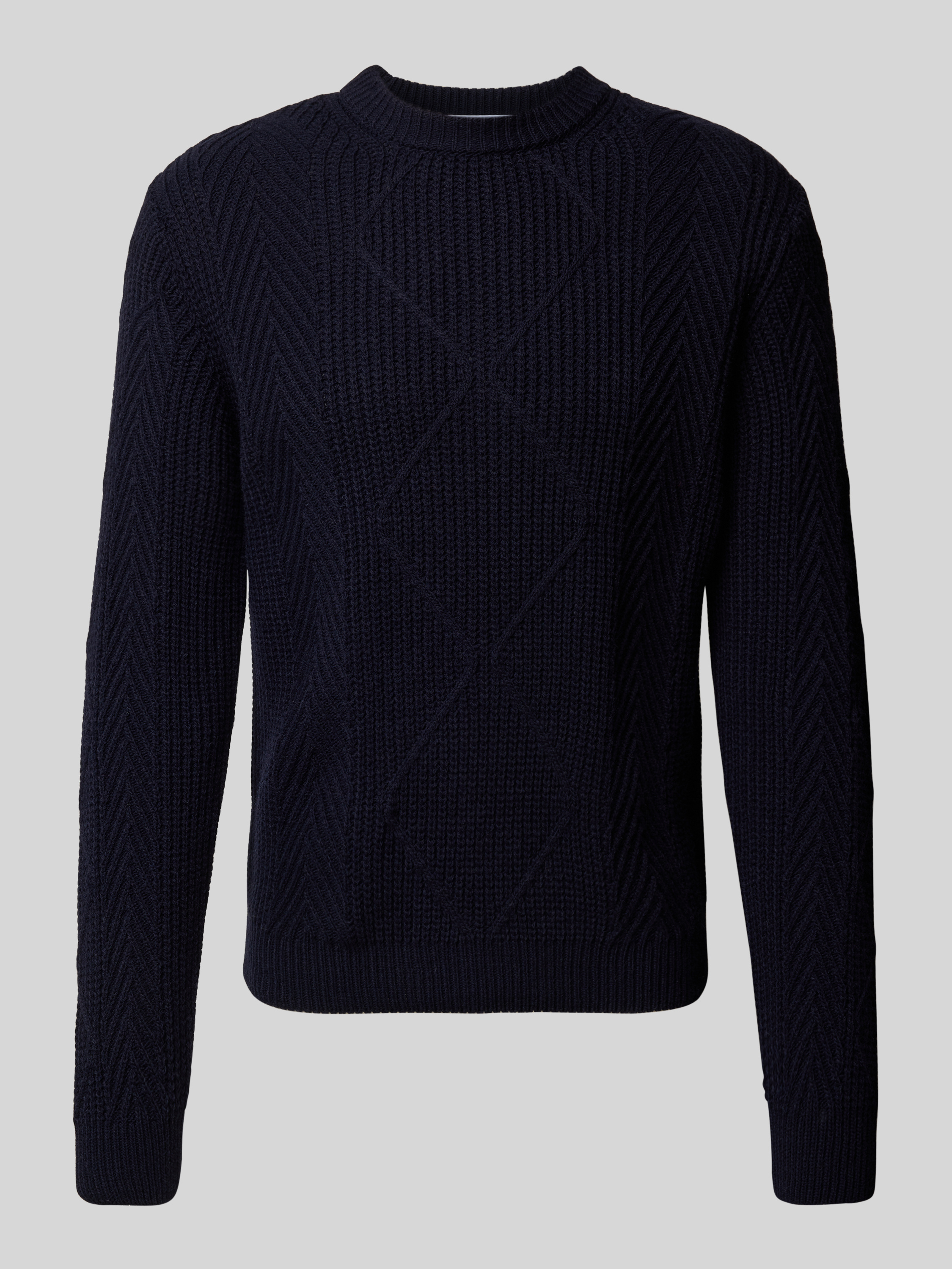 Manuel RitzGebreide pullover met kabelpatroon en ronde hals in marineblauw
