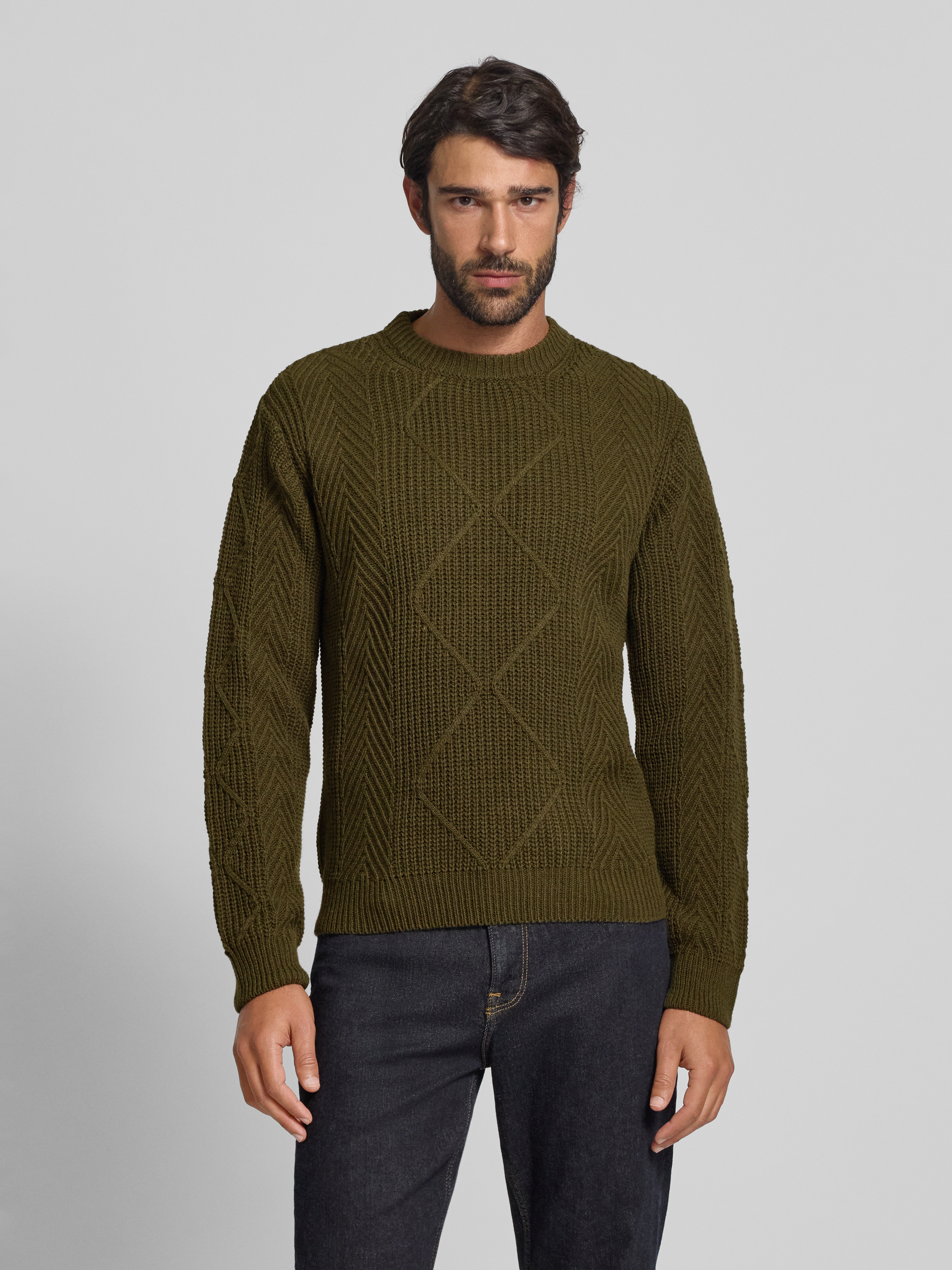 Manuel RitzGebreide pullover met kabelpatroon en ronde hals in petrol