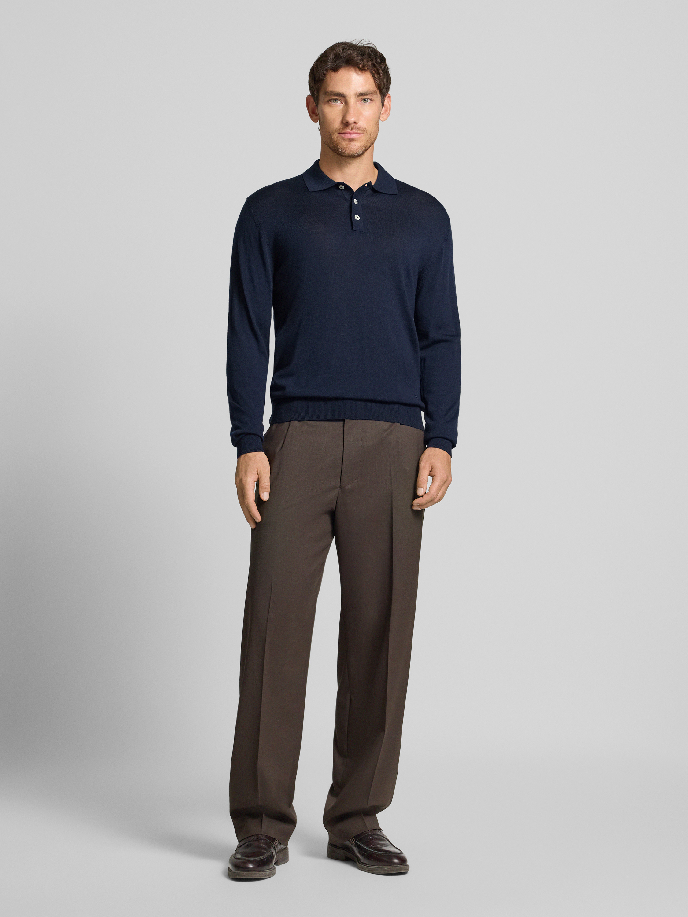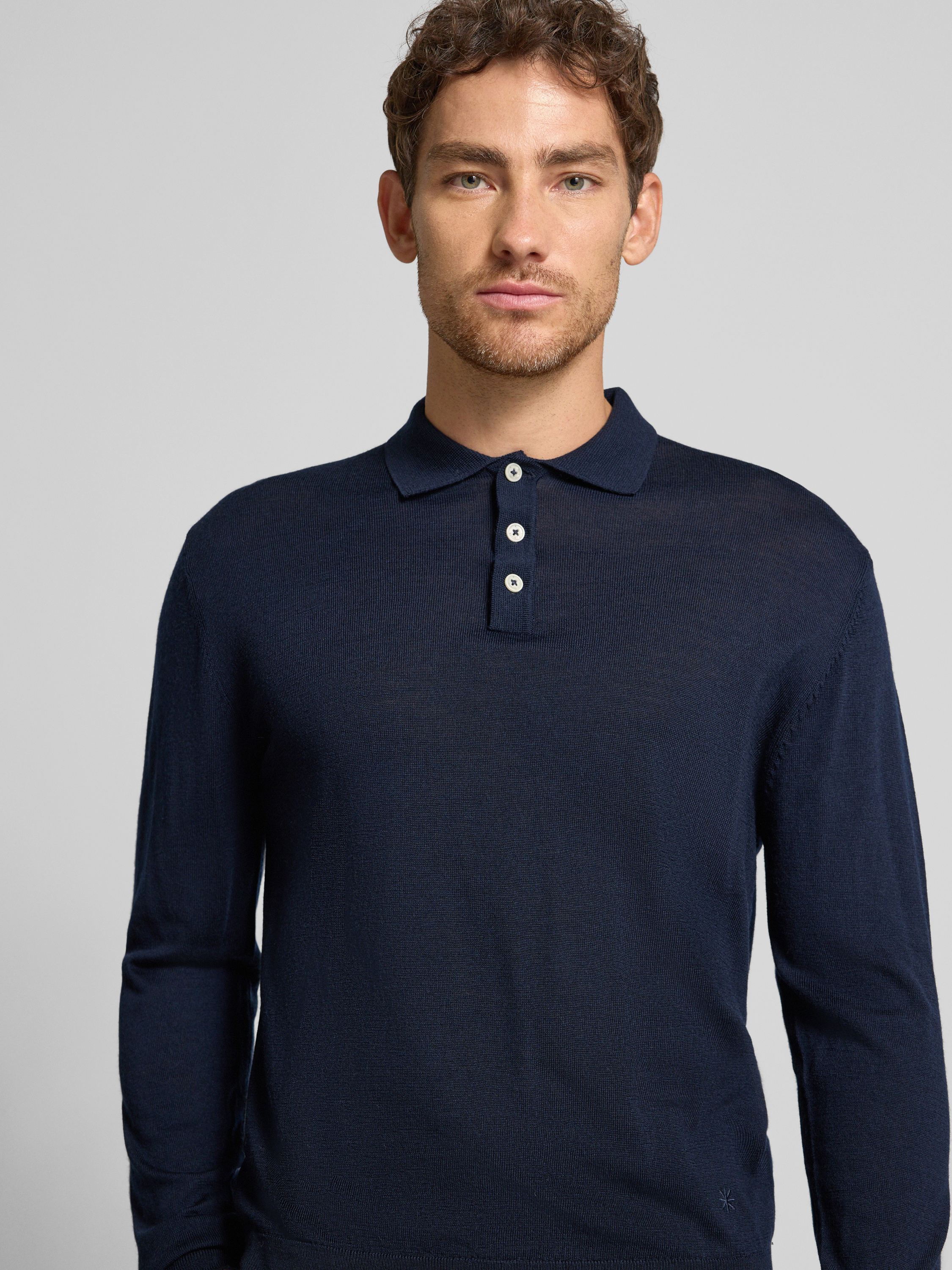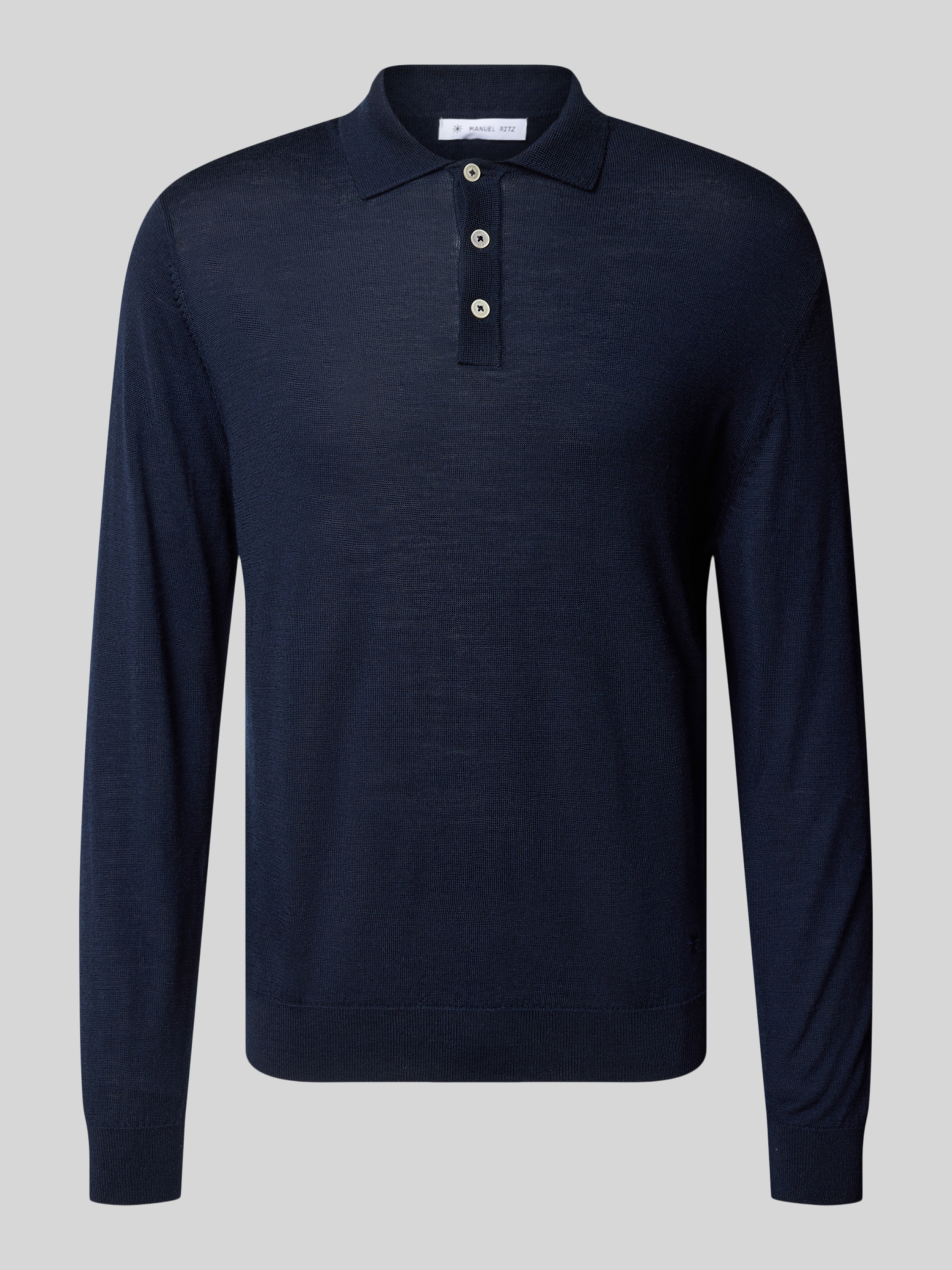 Manuel RitzRegular fit poloshirt van scheerwol in marineblauw