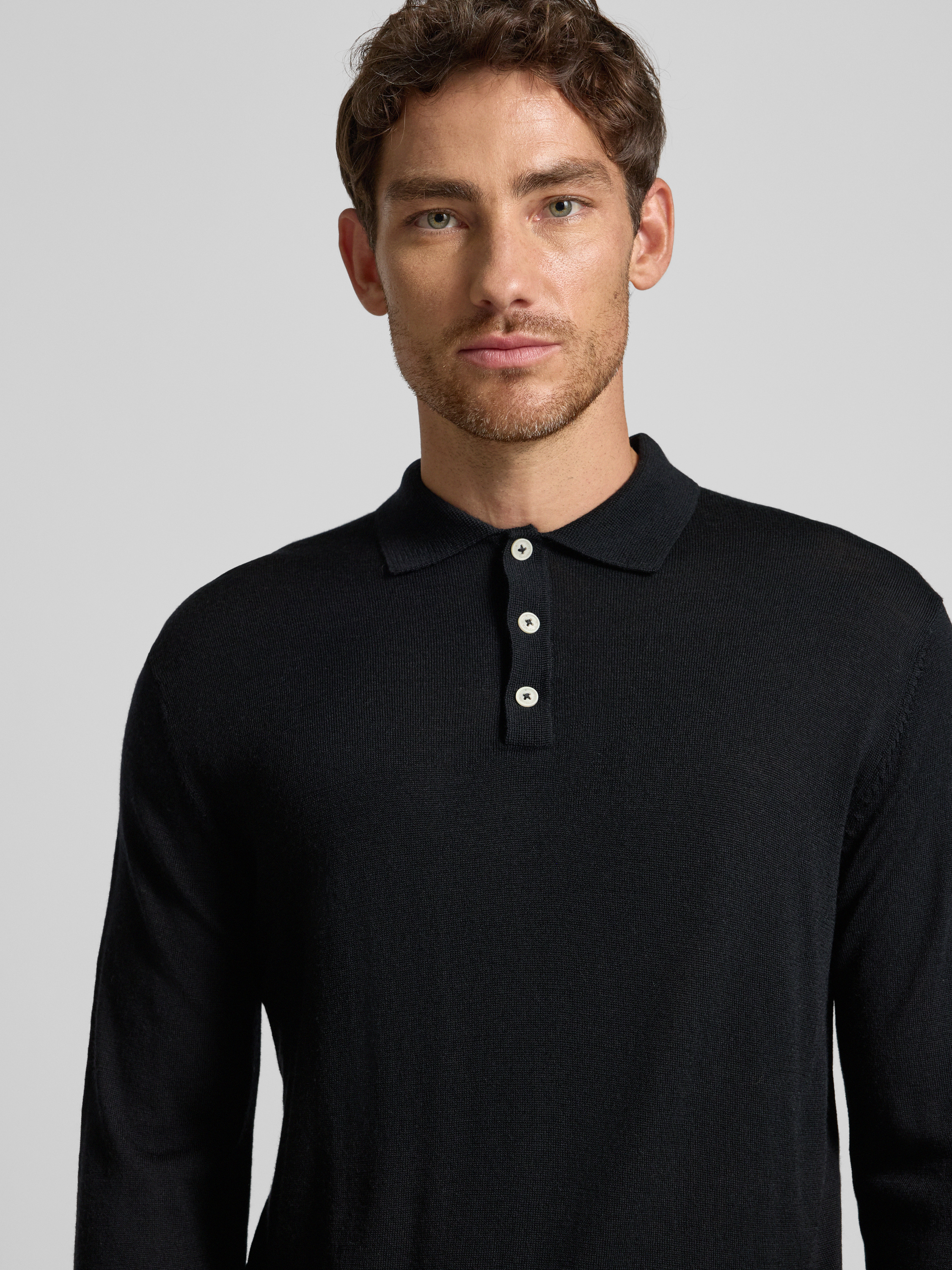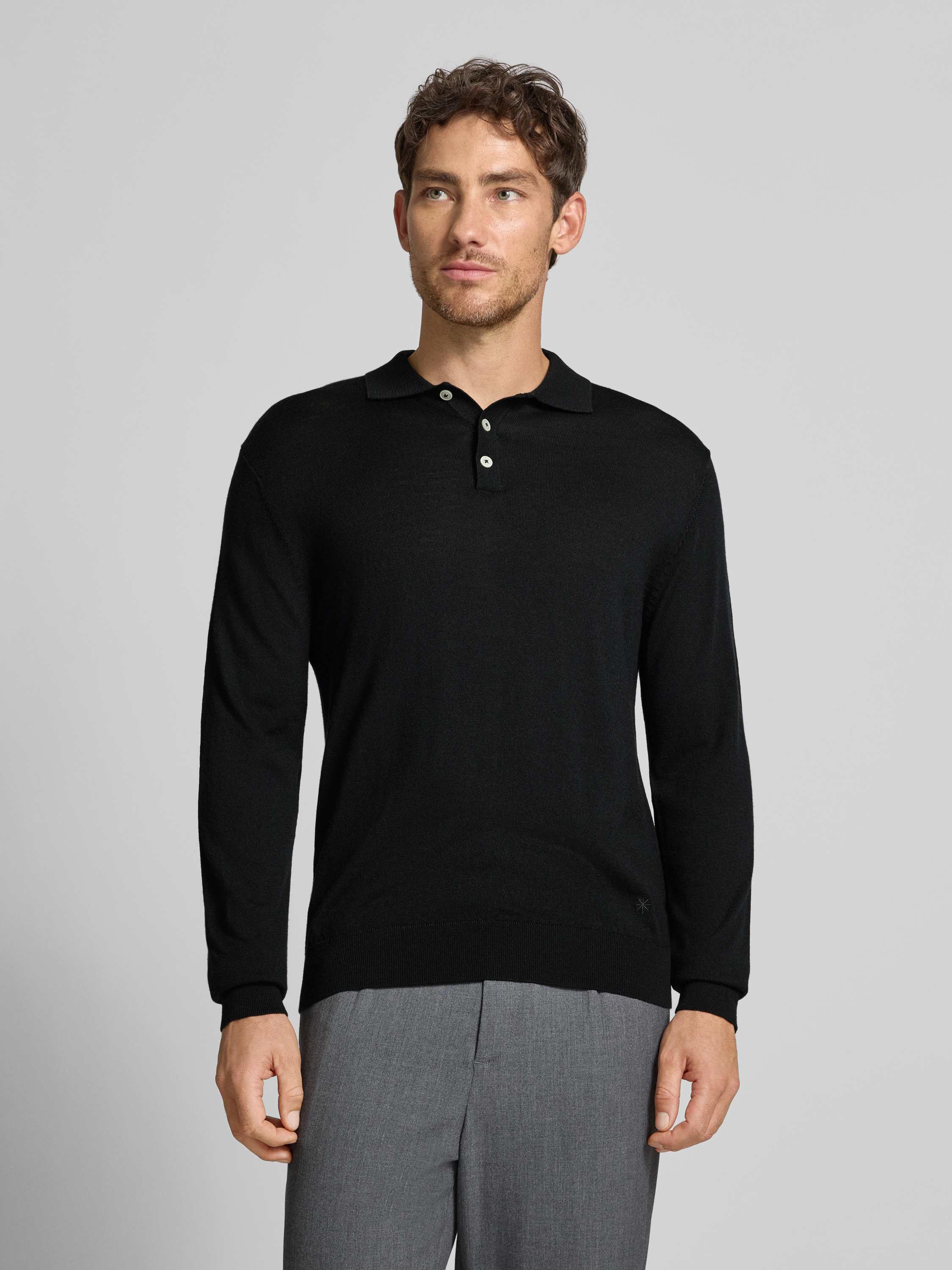 Manuel RitzRegular fit poloshirt van scheerwol in zwart