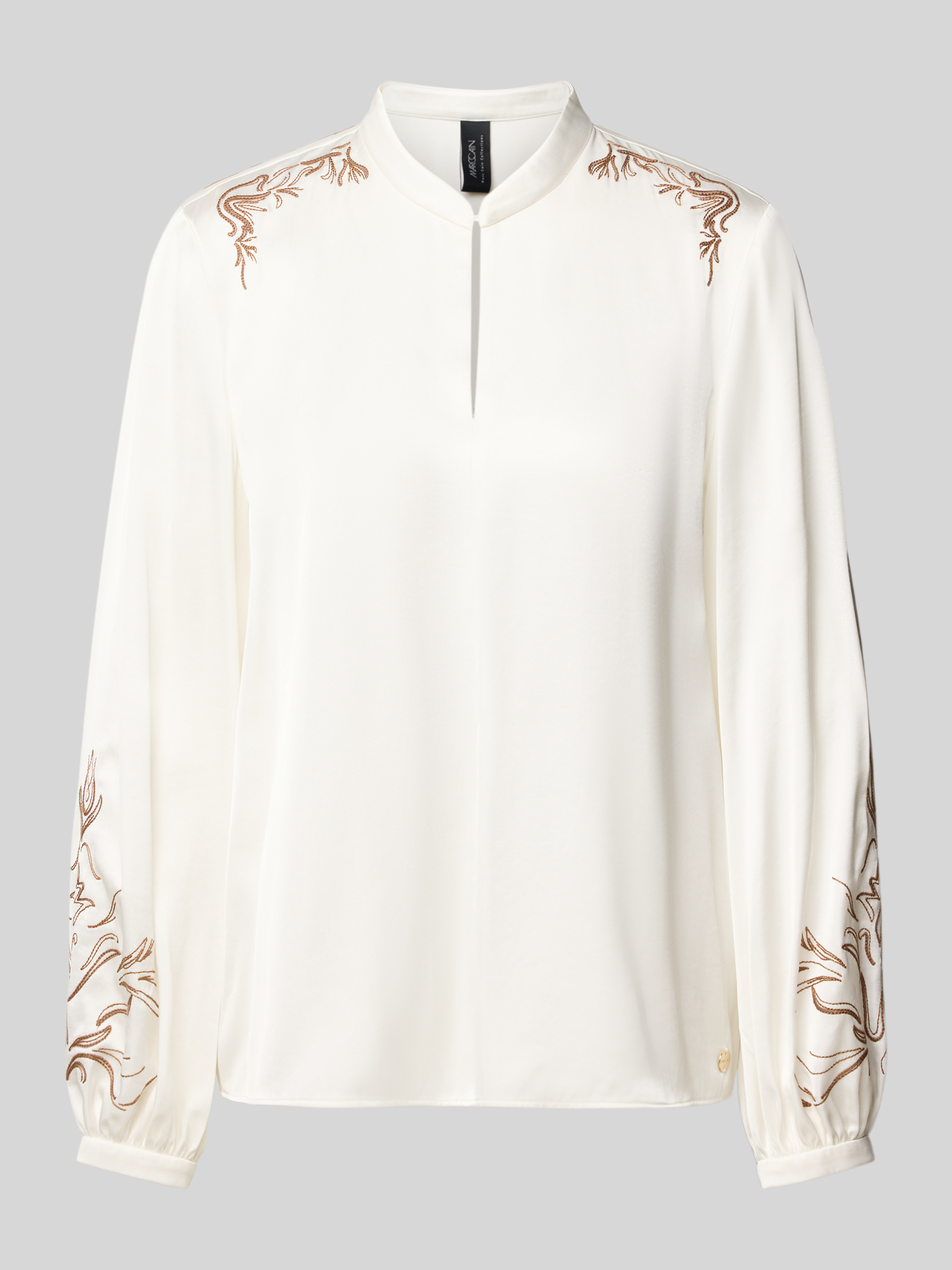 Marc CainBlouse van viscosemix met druppelvormige hals en stitchings in offwhite