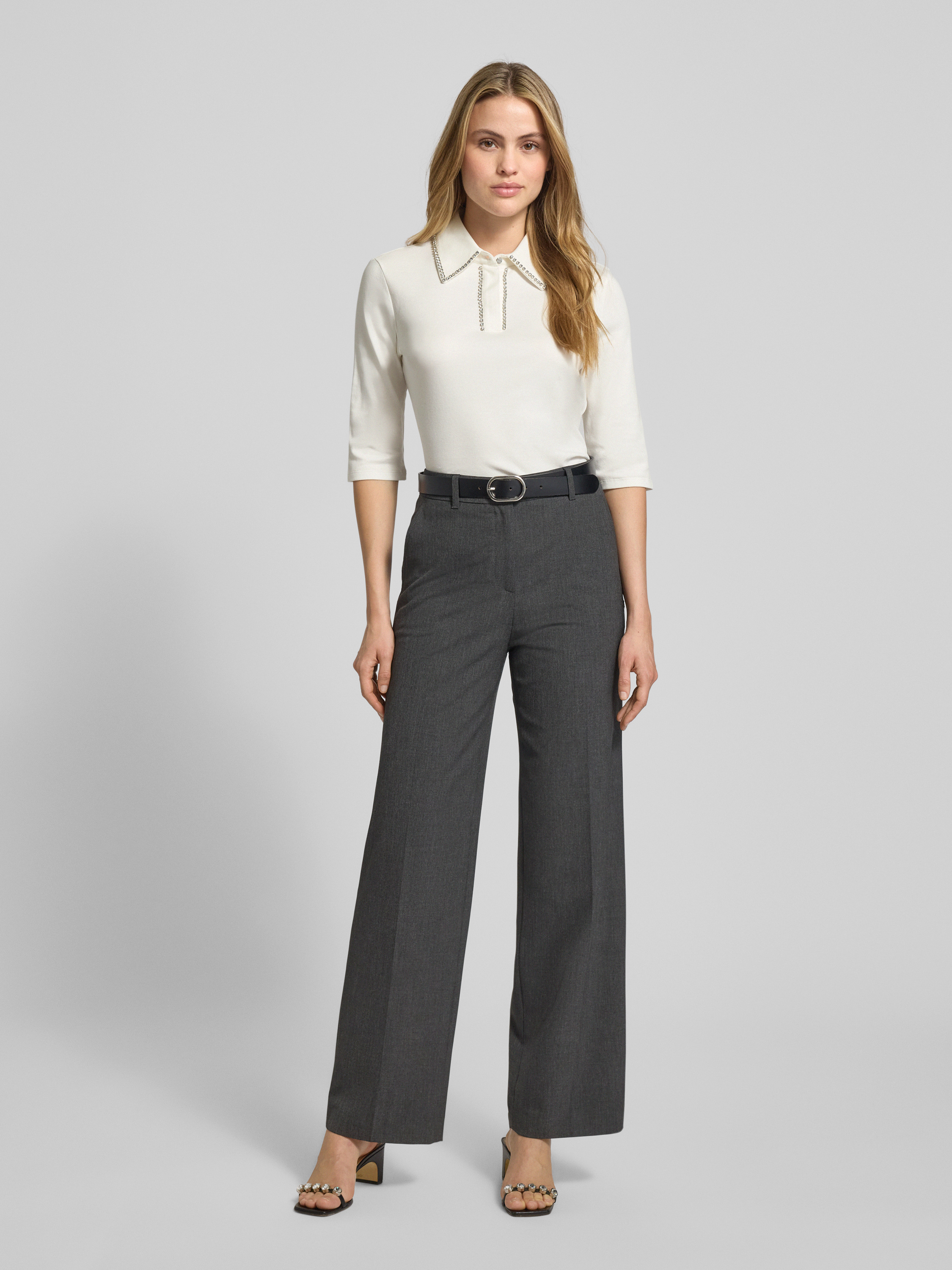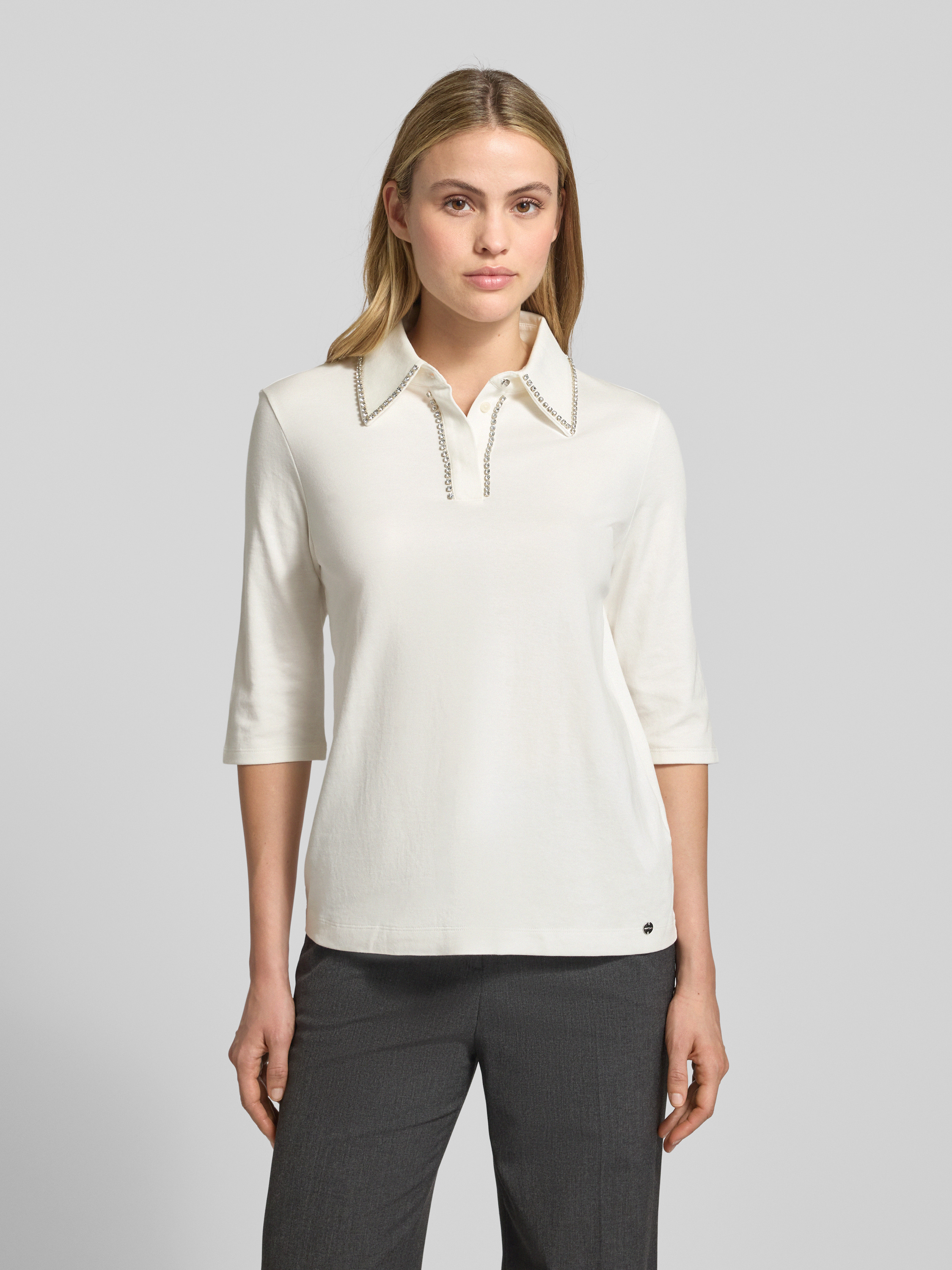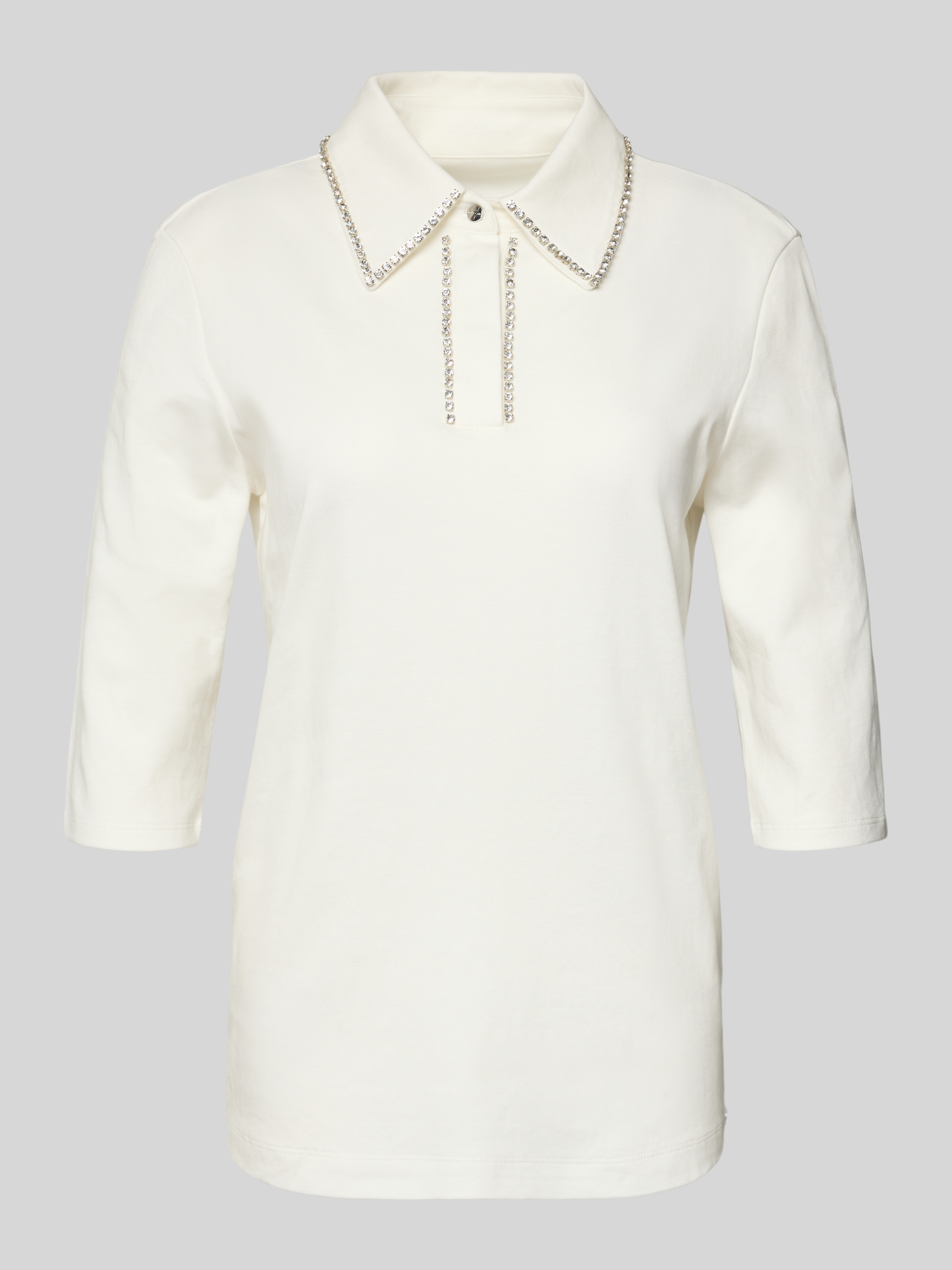 Blouseshirt met platte kraag en siersteentjes in offwhite