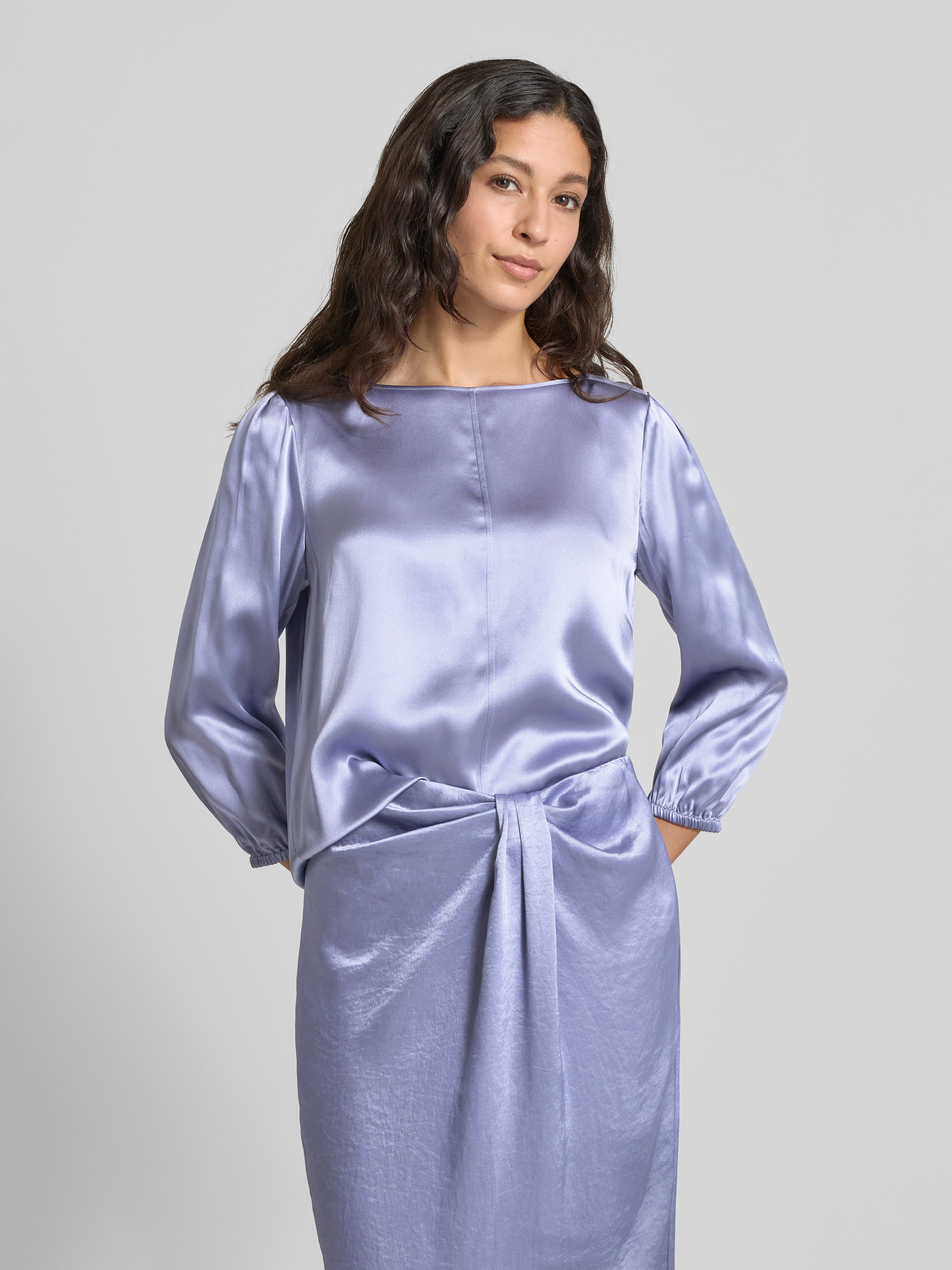Blouseshirt van pure zijde in lavendel