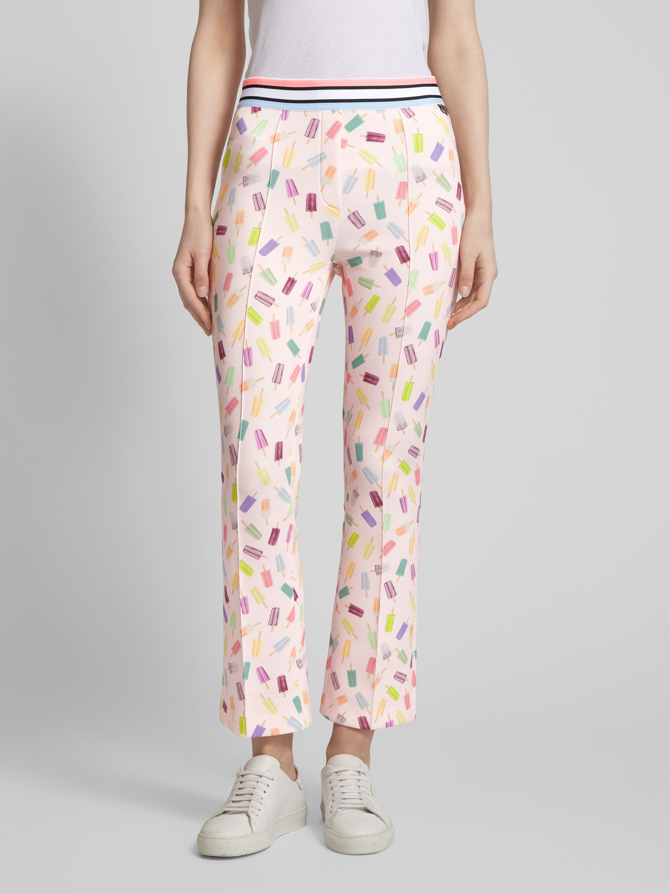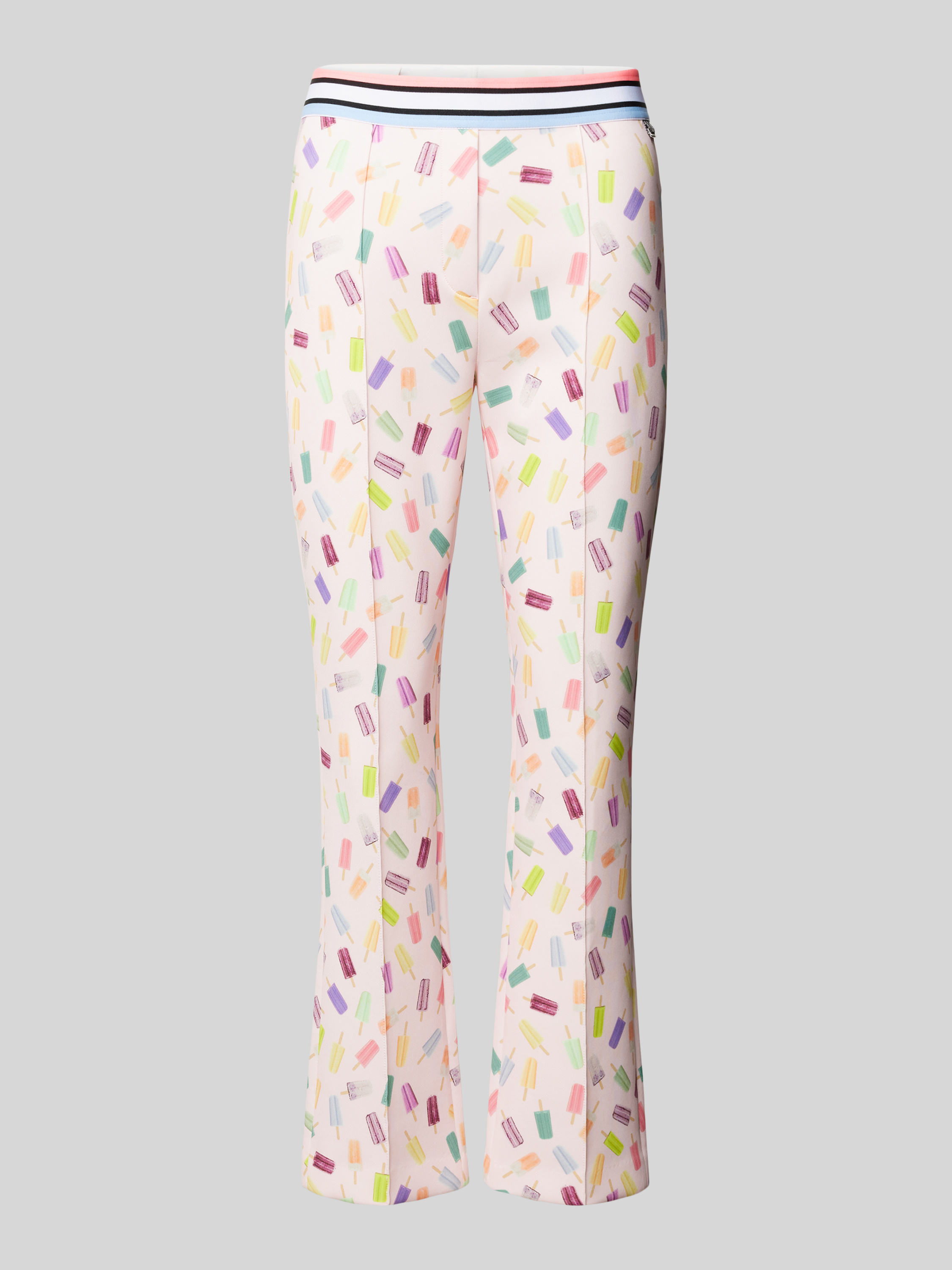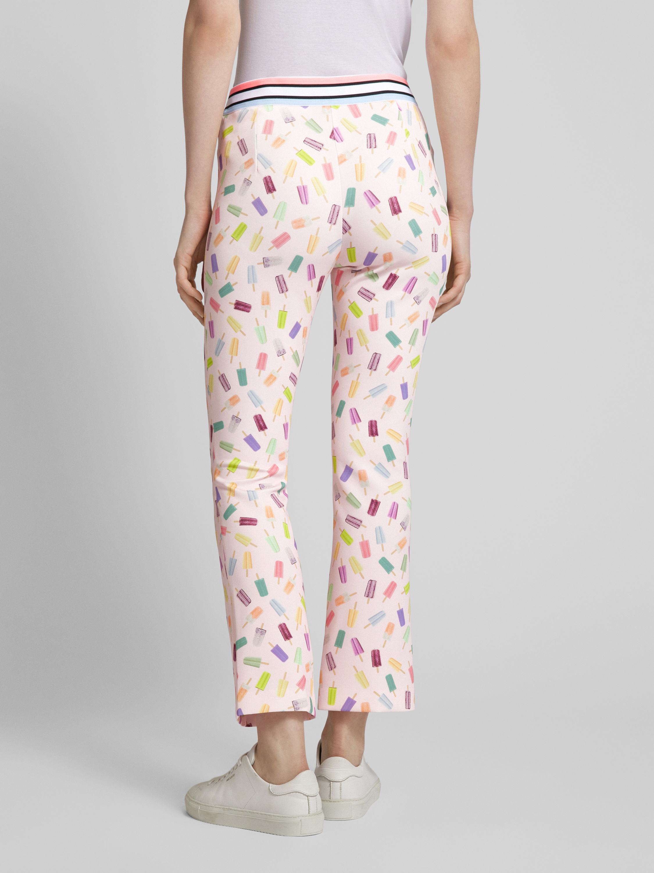 Broek met all-over motief en elastische band in roze