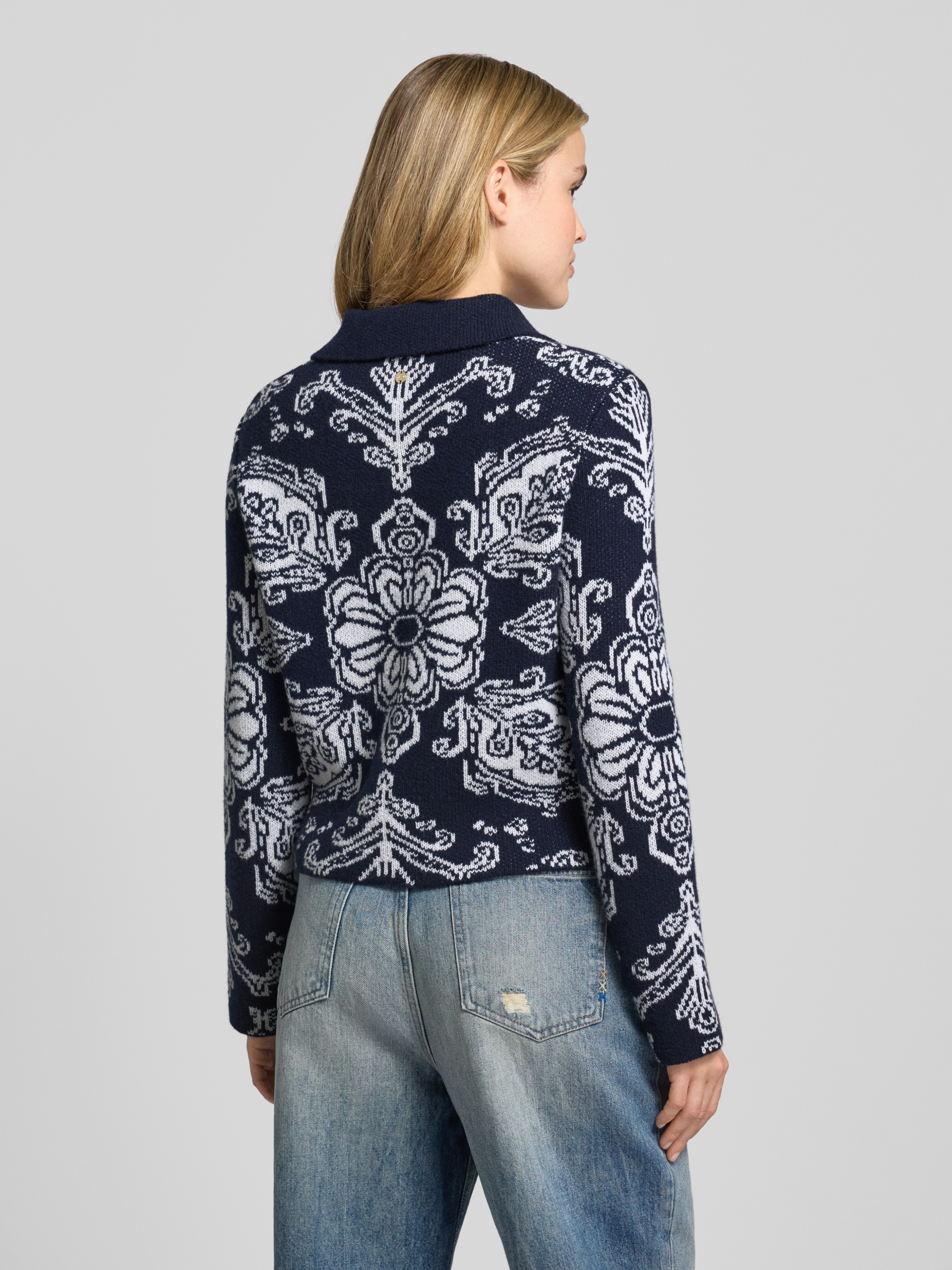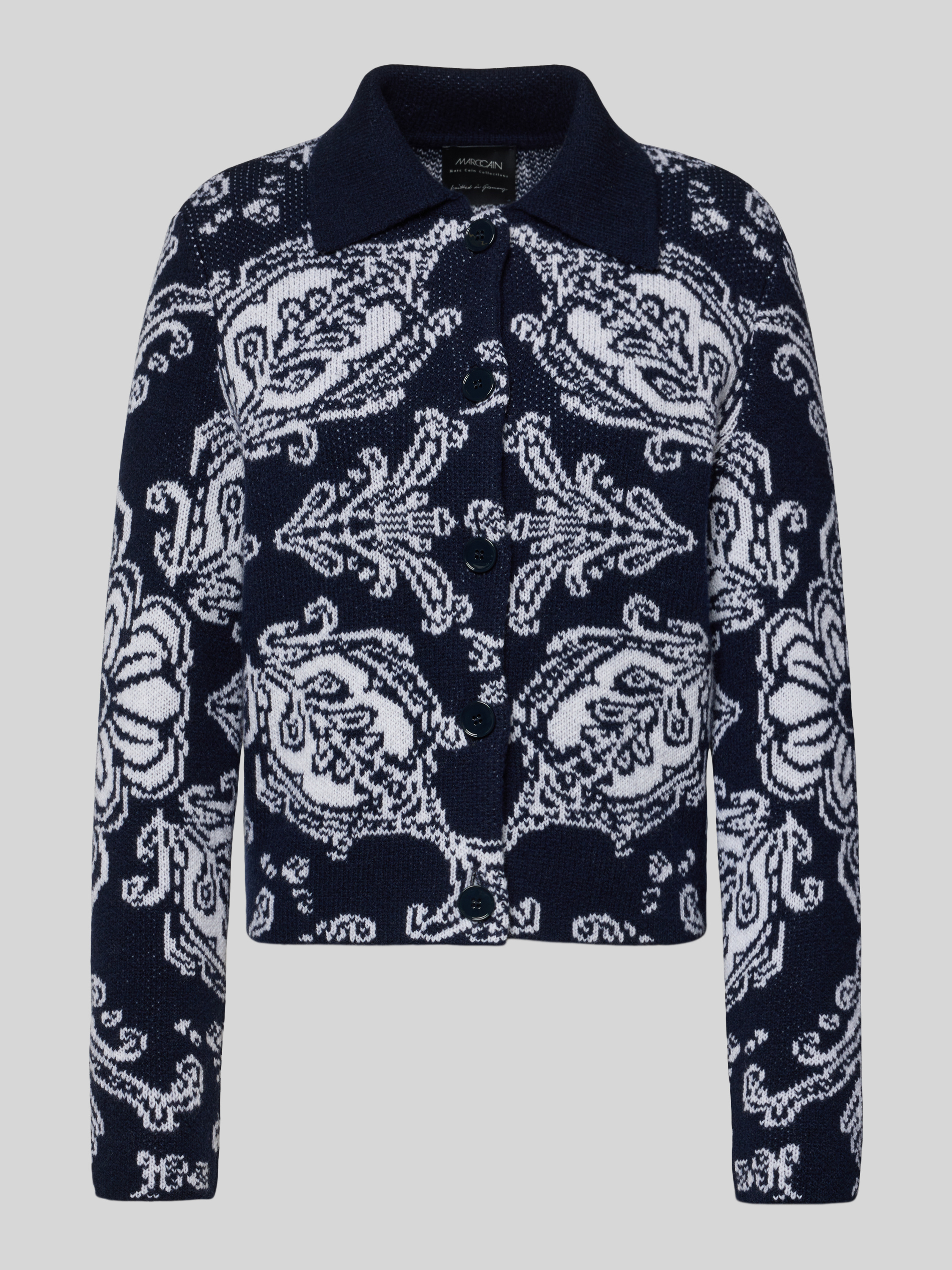 Cardigan van een mix van scheerwol en kasjmier met platte kraag in marineblauw