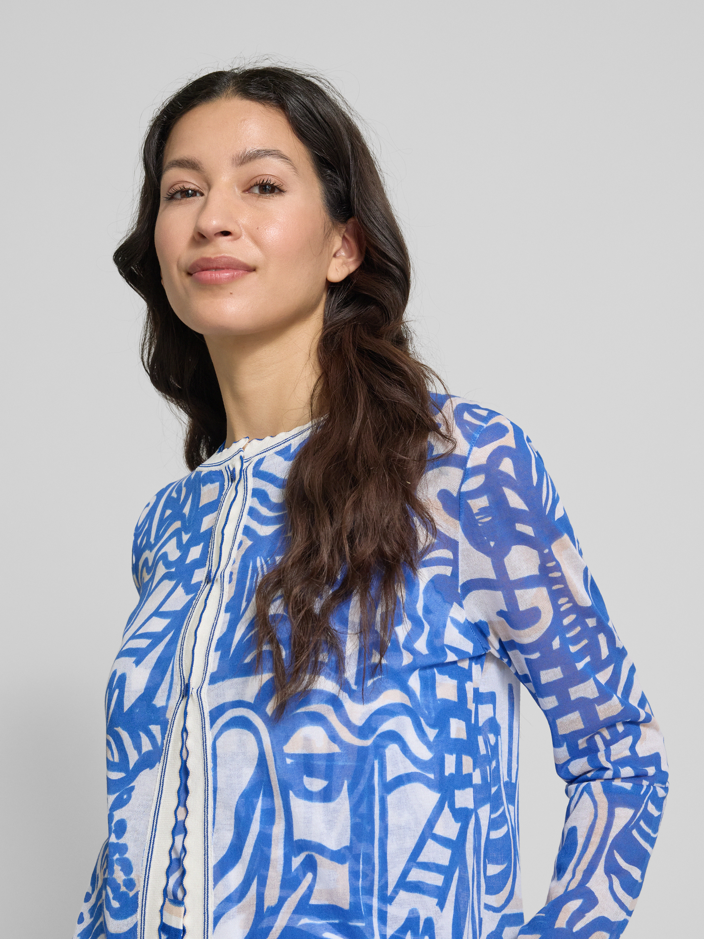 Gebreid jack in all-over look met knoopsluiting in koningsblauw