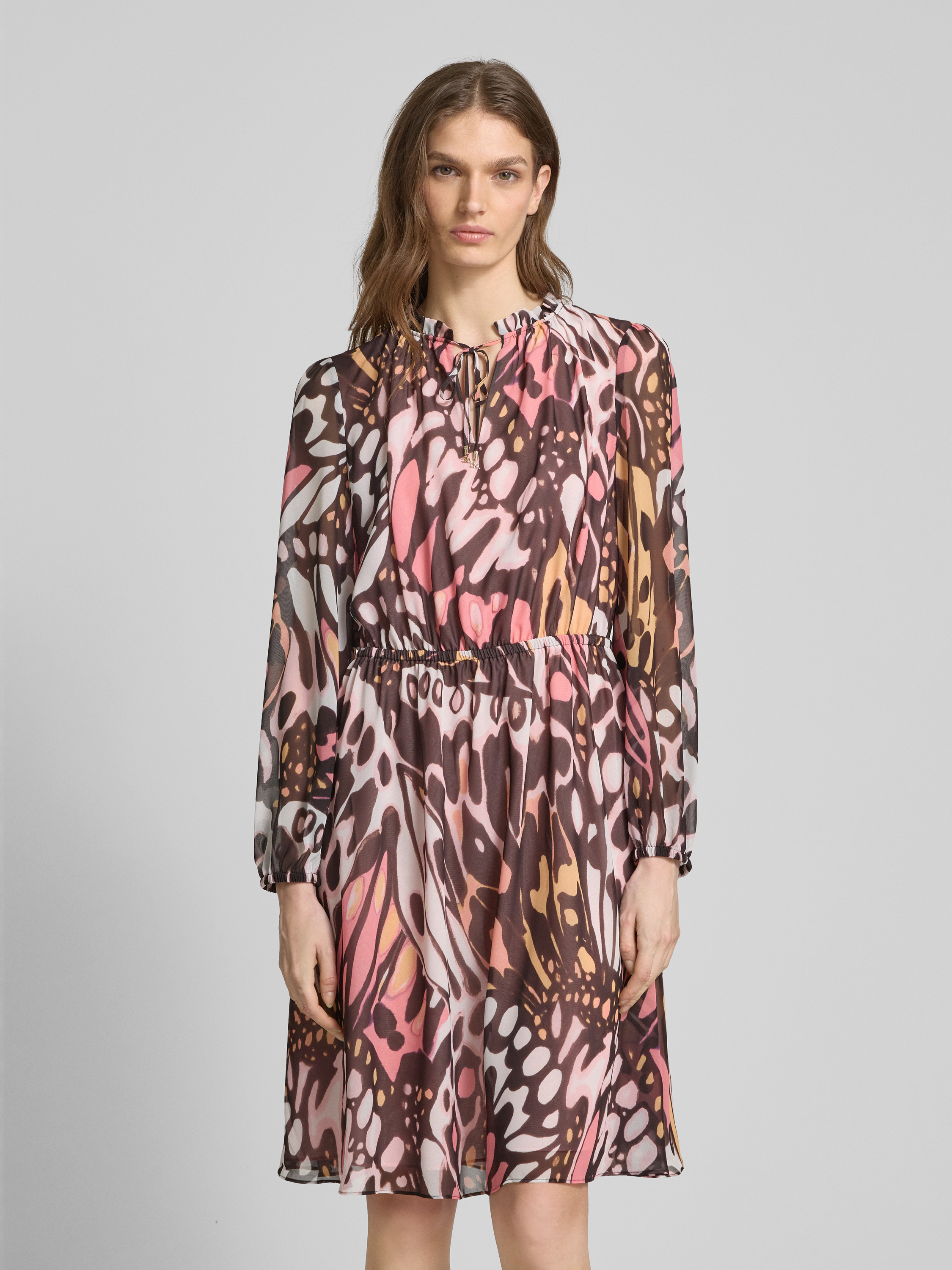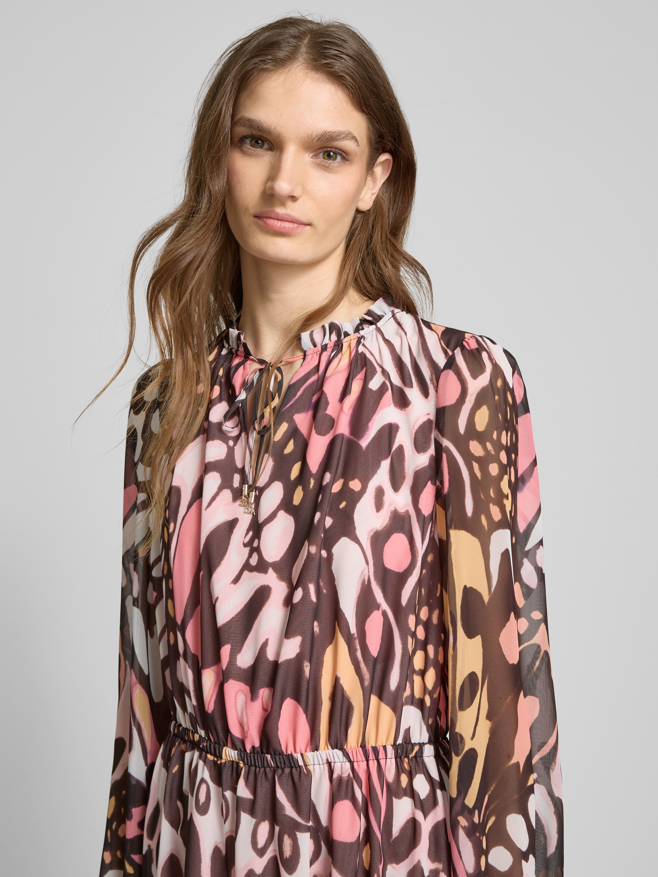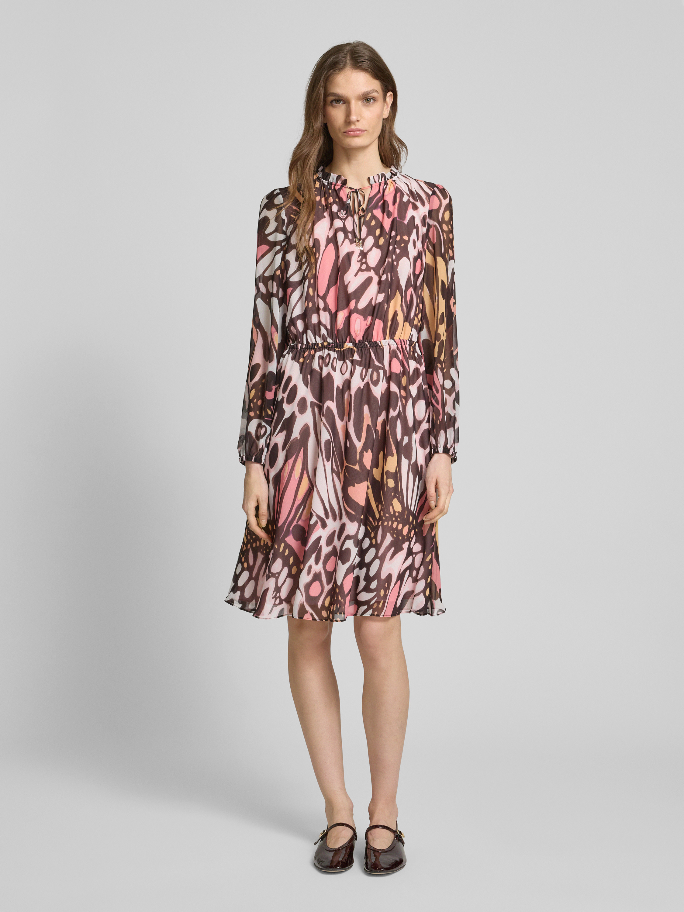 Marc CainKnielange jurk met druppelvormige hals in felroze