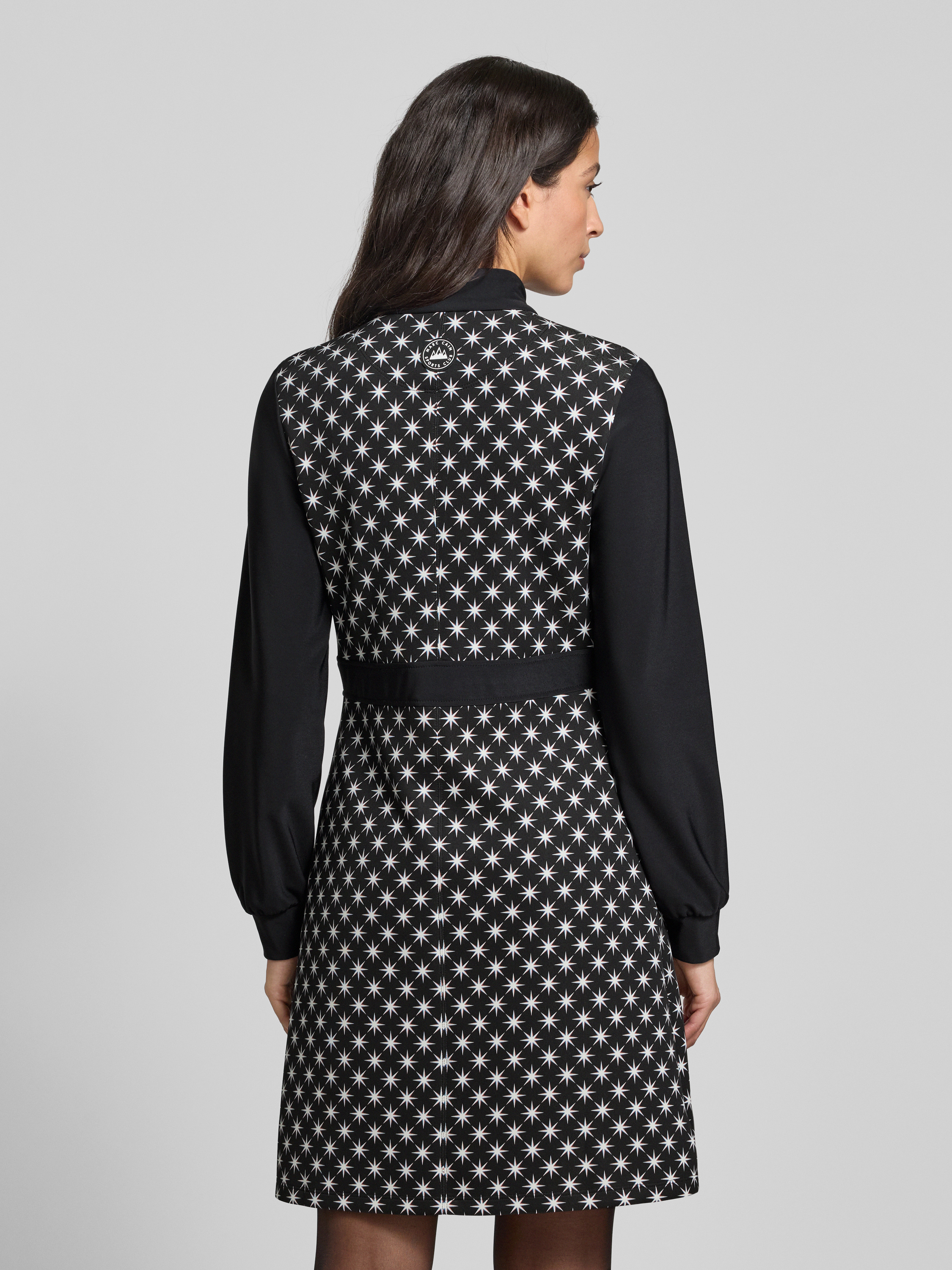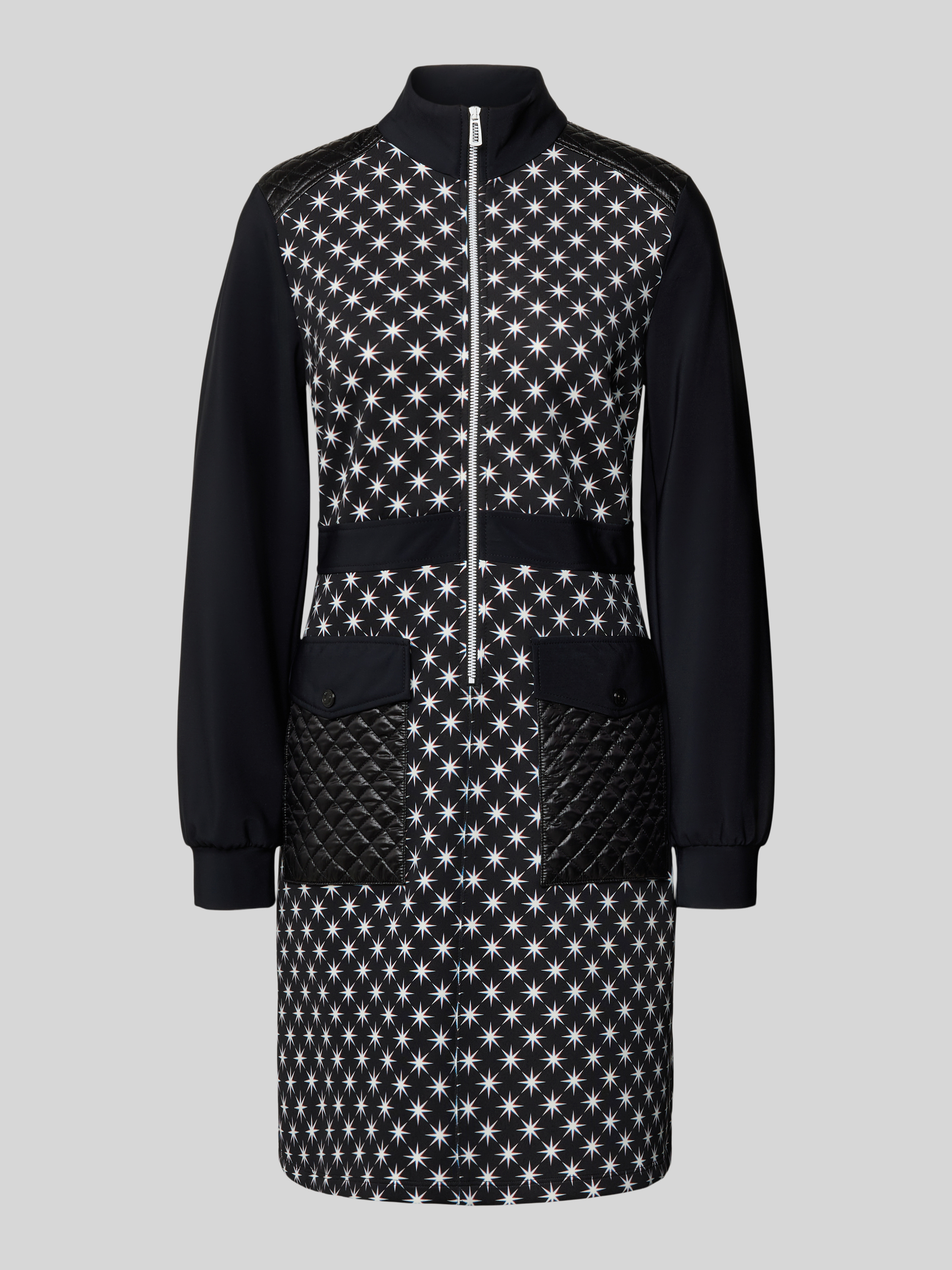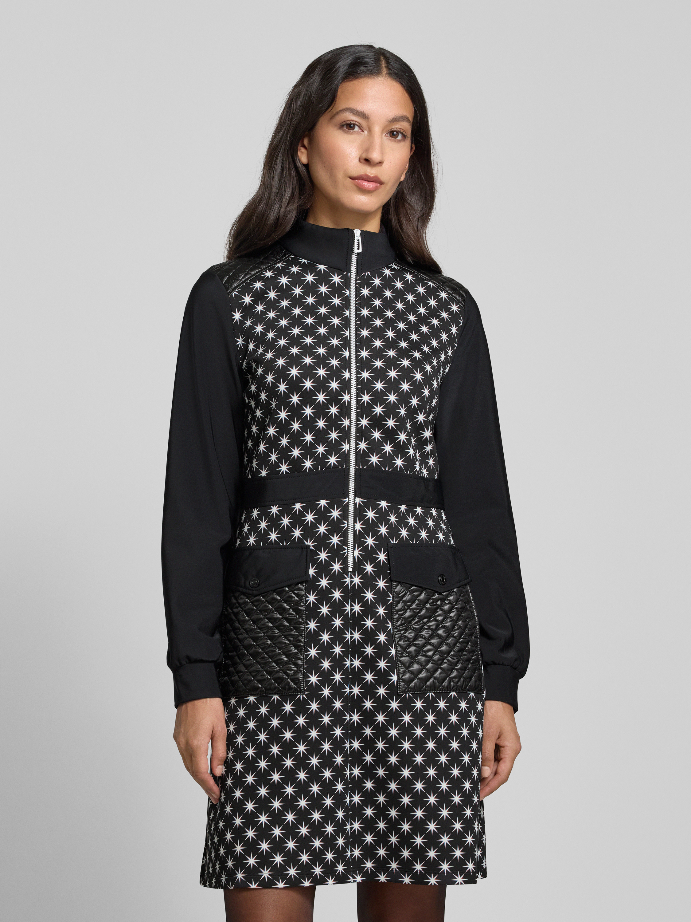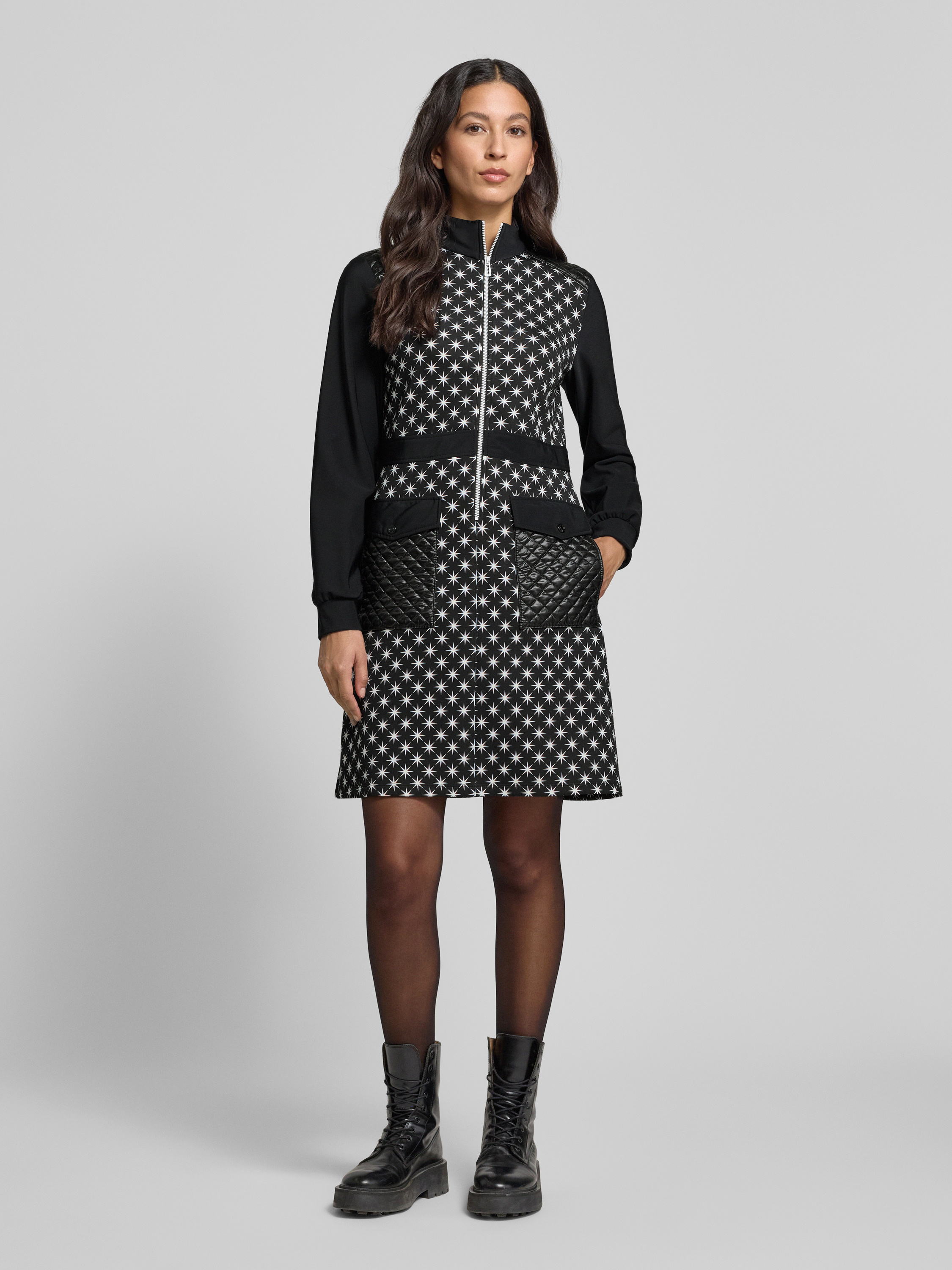 Knielange jurk met opstaande kraag in zwart