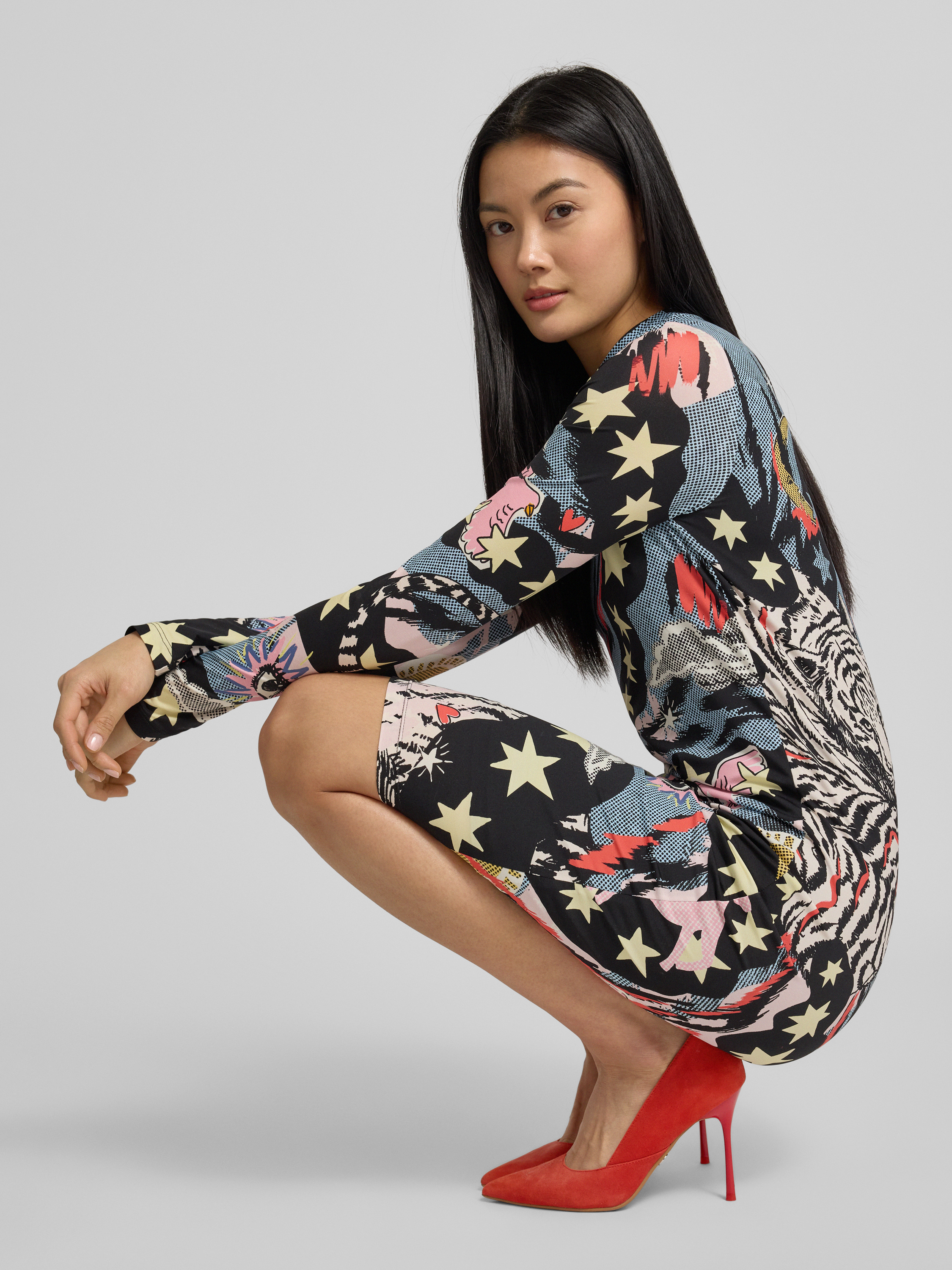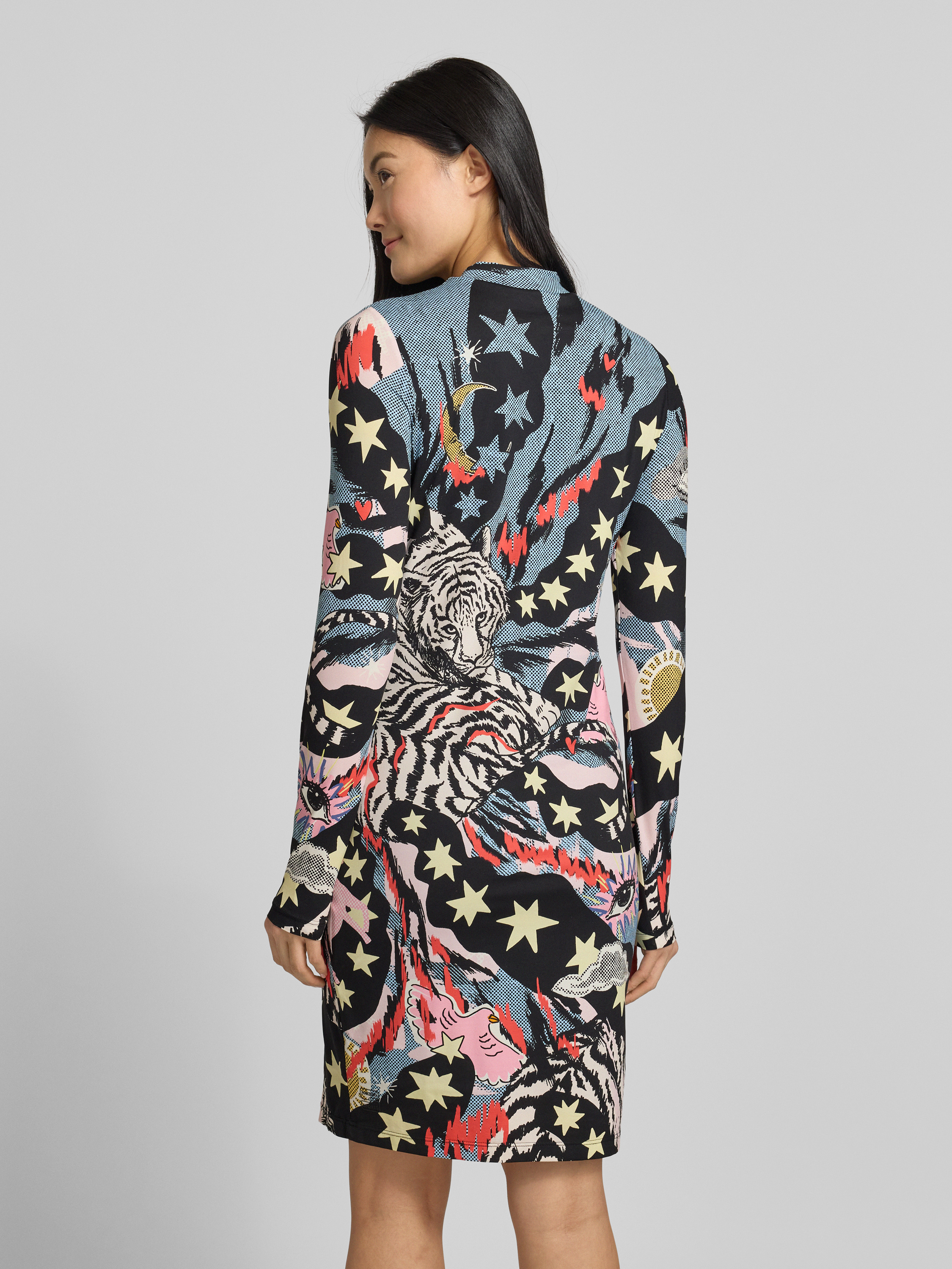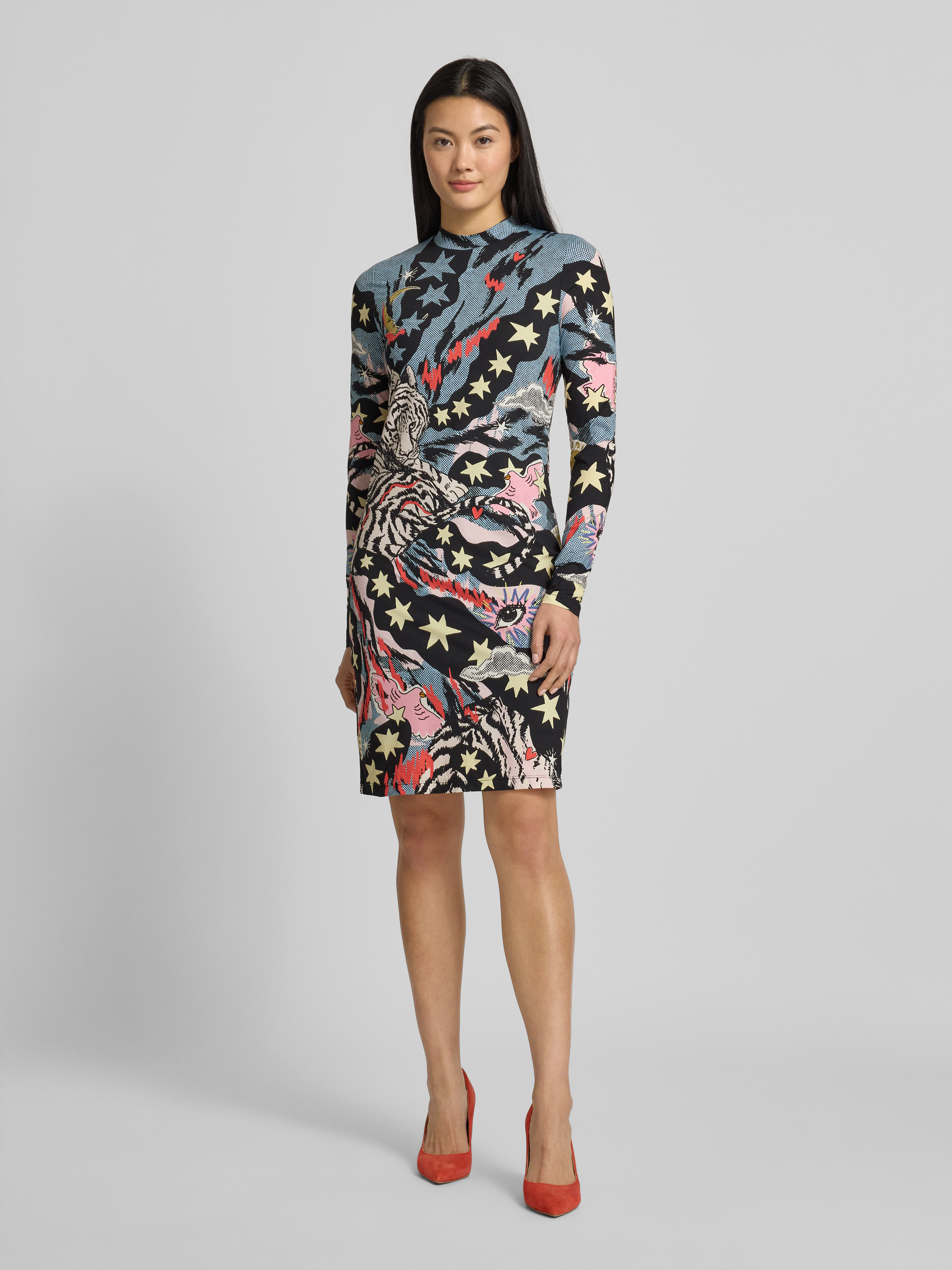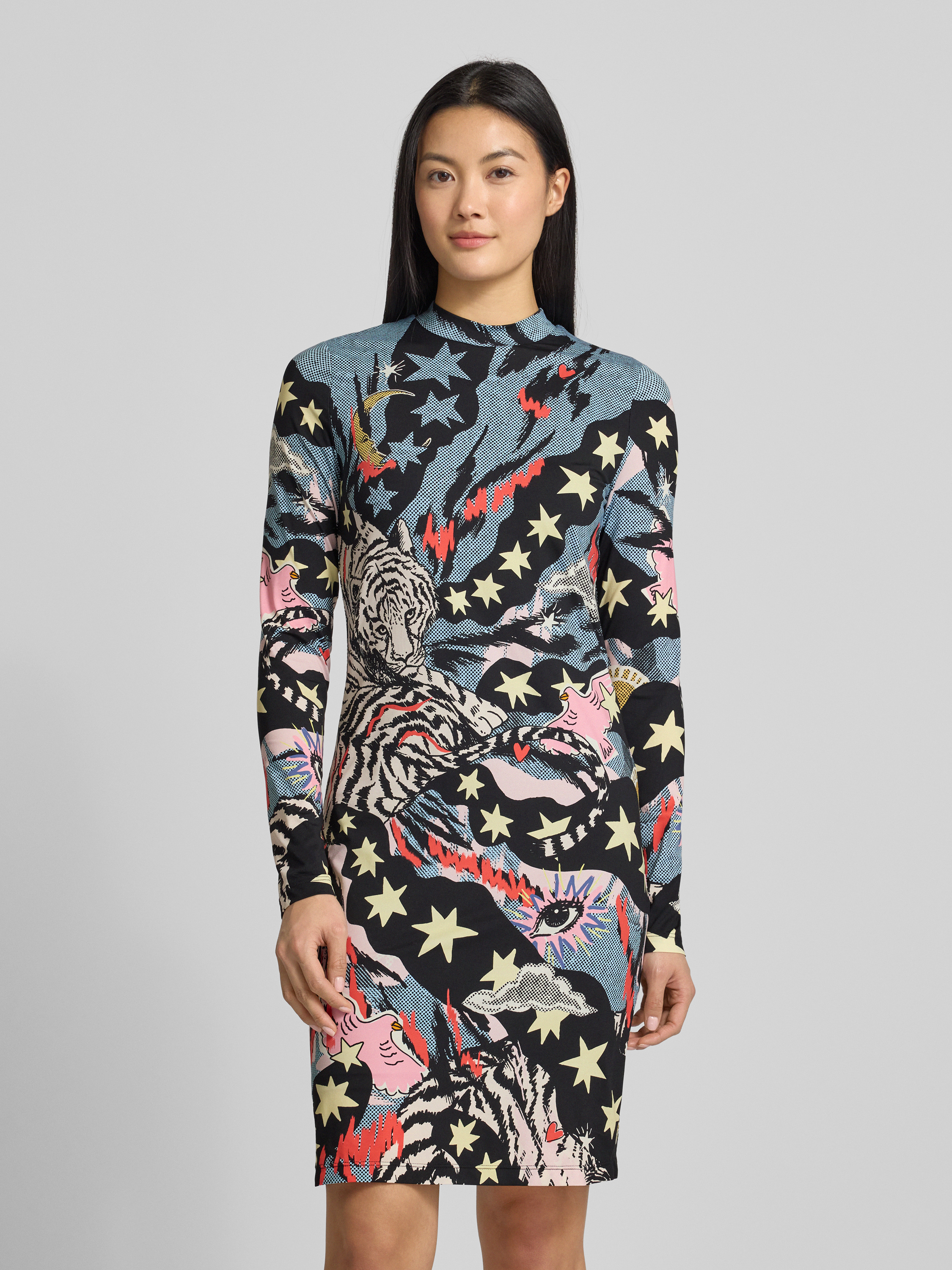 Marc CainKnielange jurk met opstaande kraag in zwart