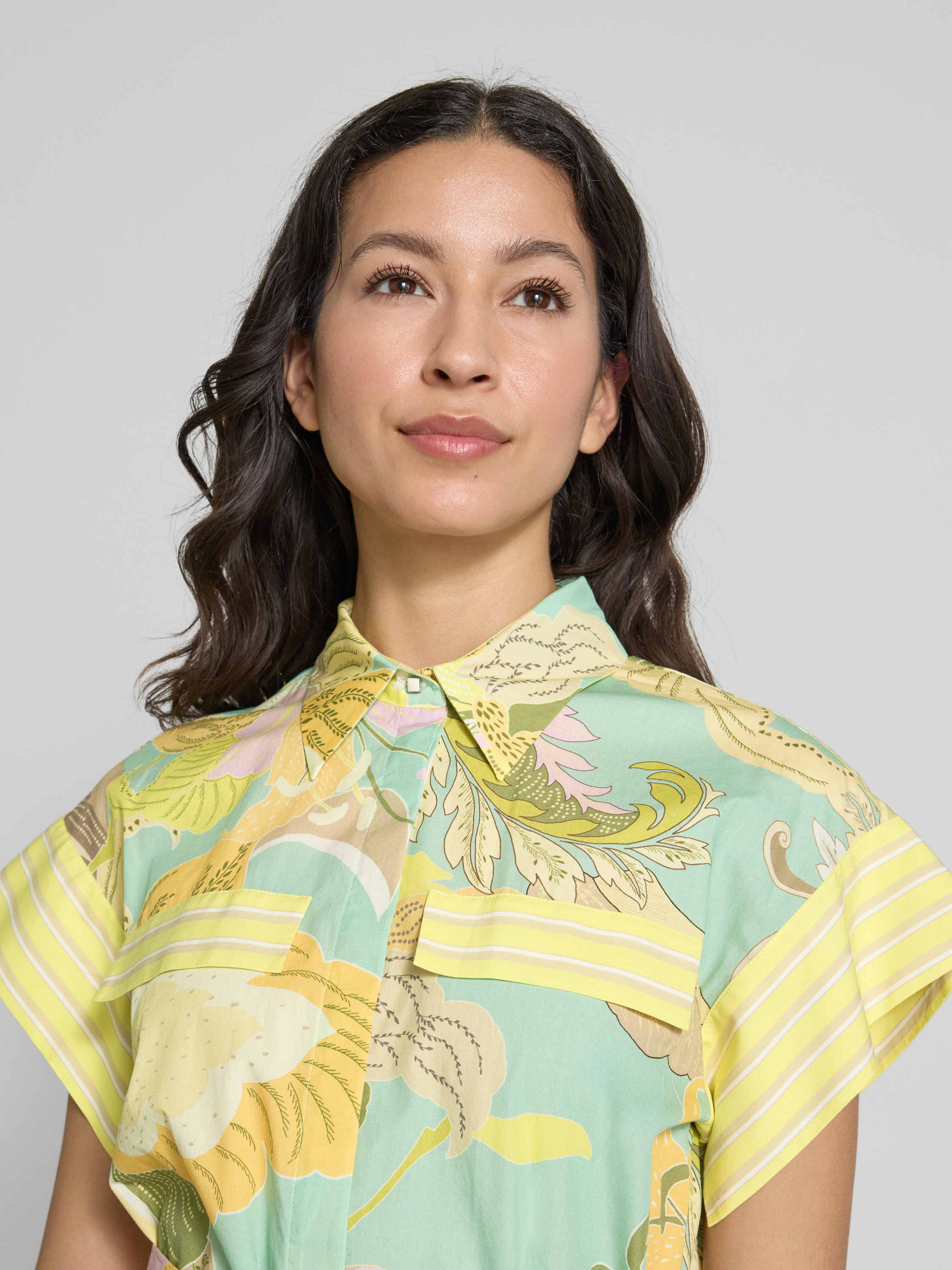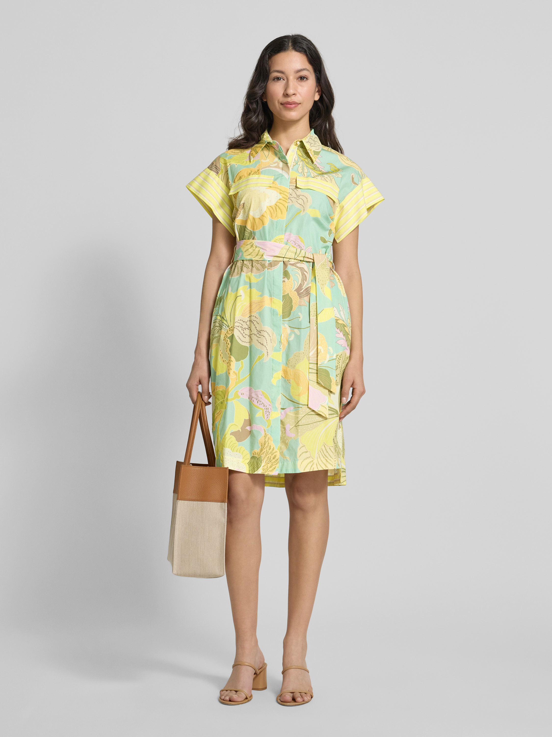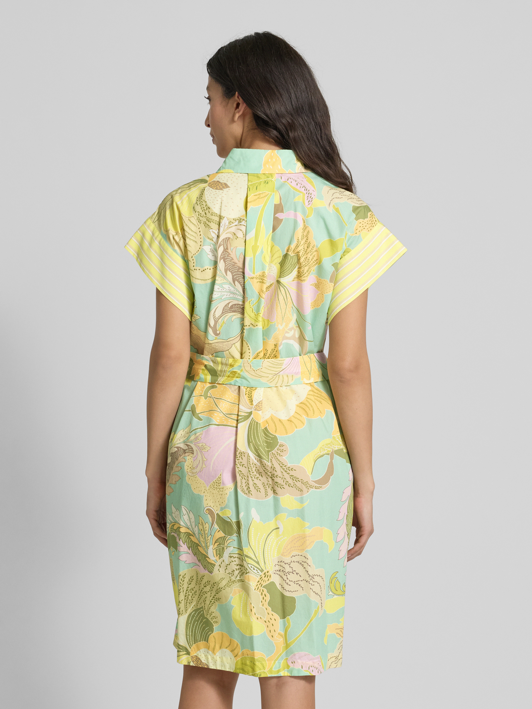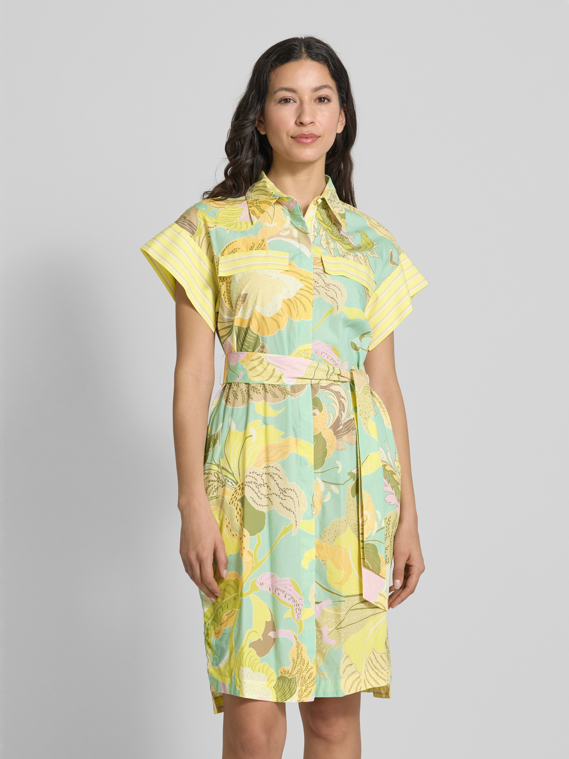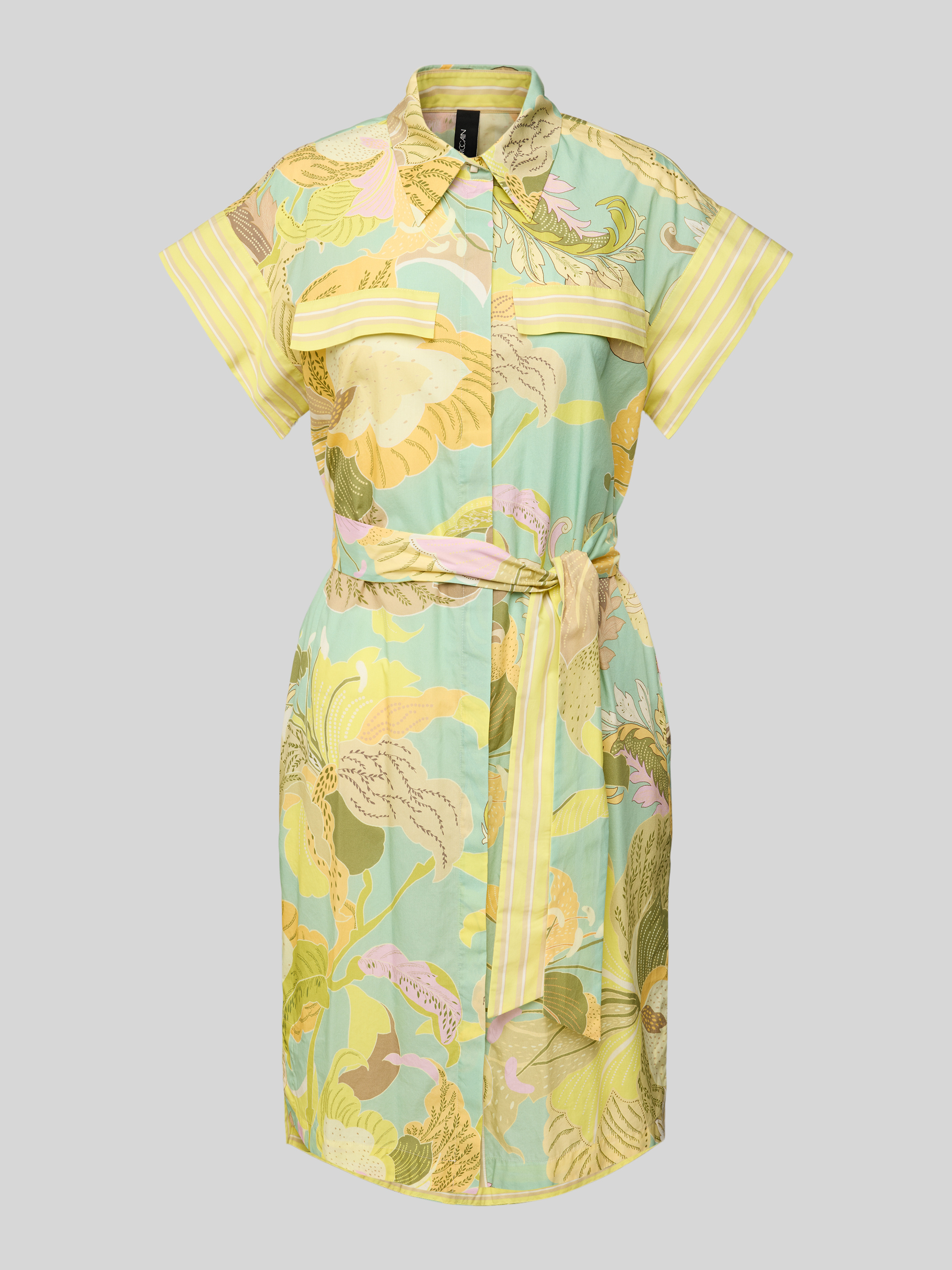 Marc CainKnielange overhemdjurk van linnenmix met strikceintuur in geel