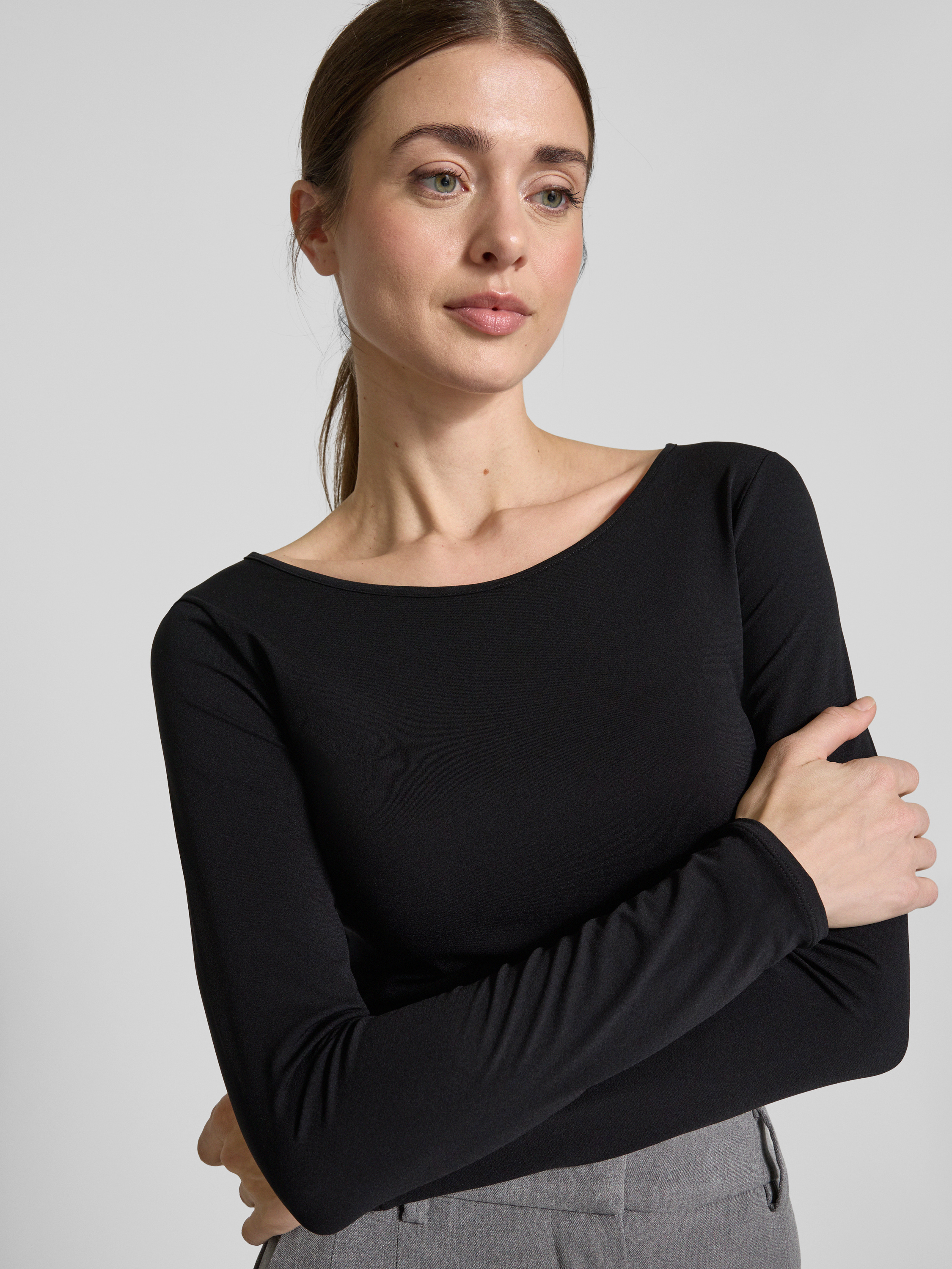 Longsleeve met ronde hals in zwart