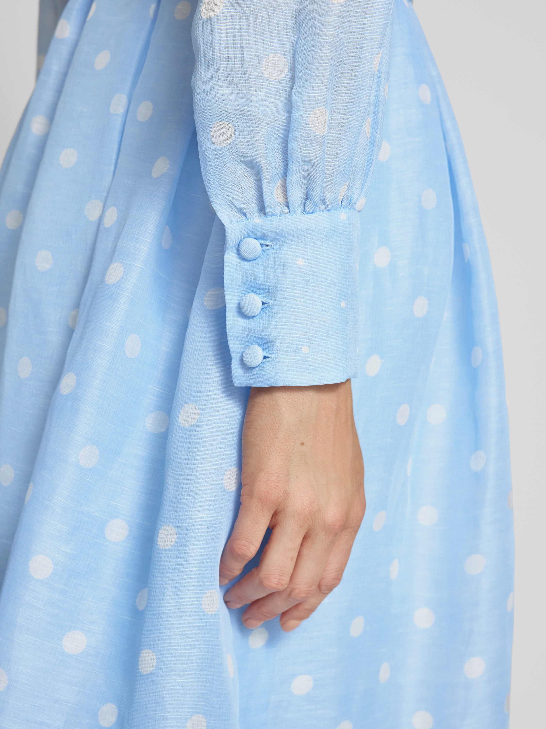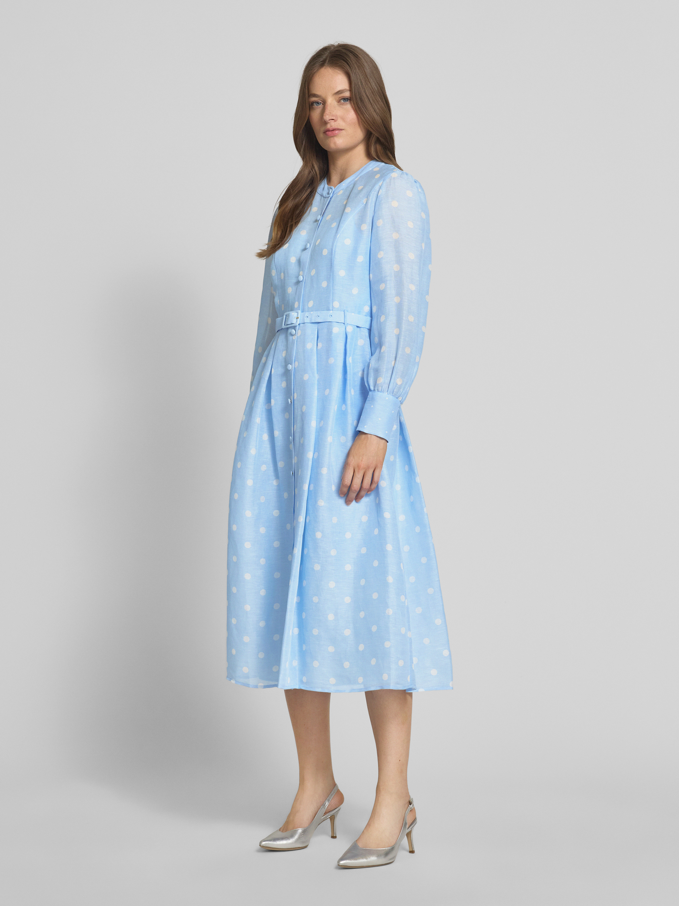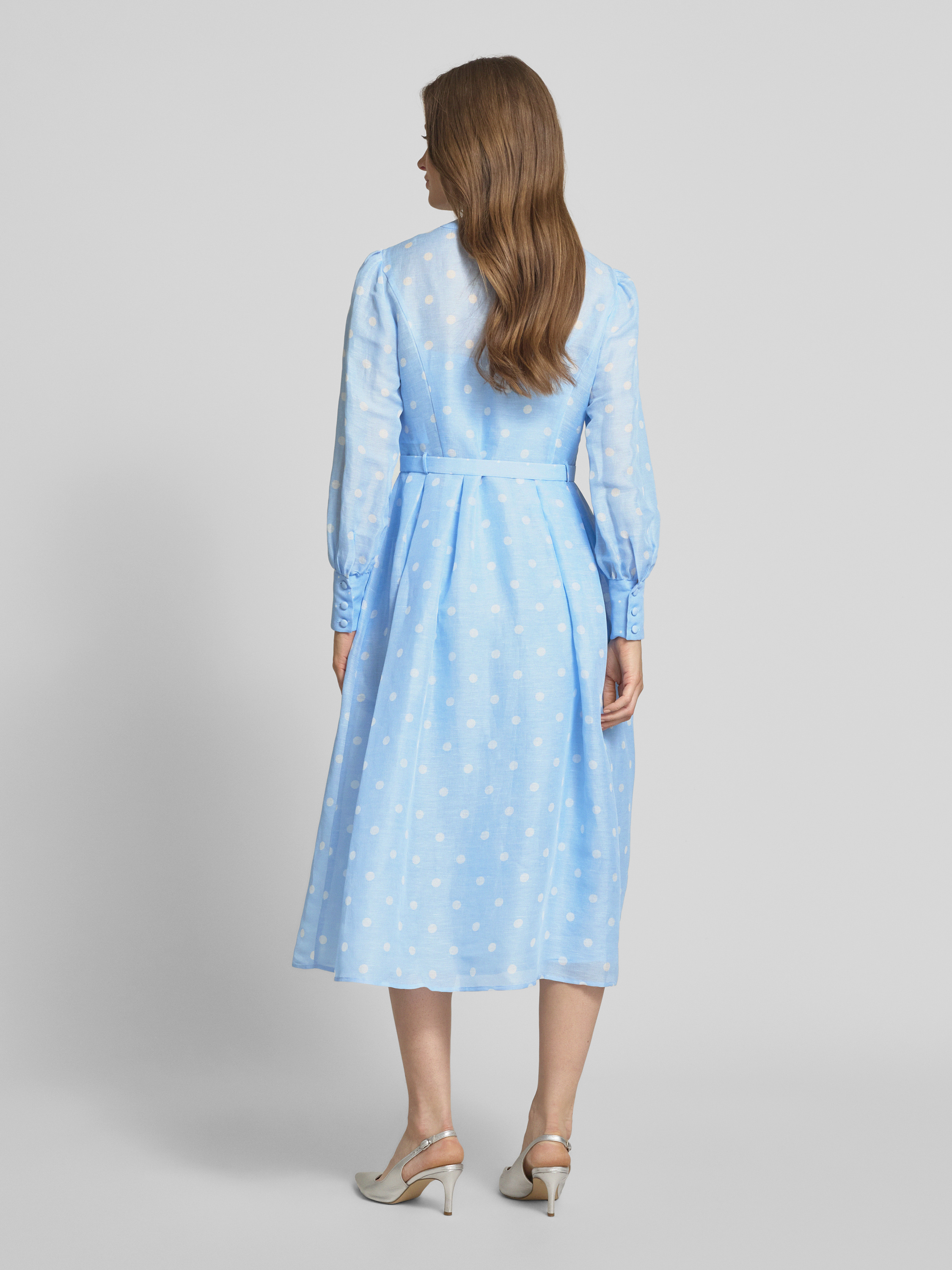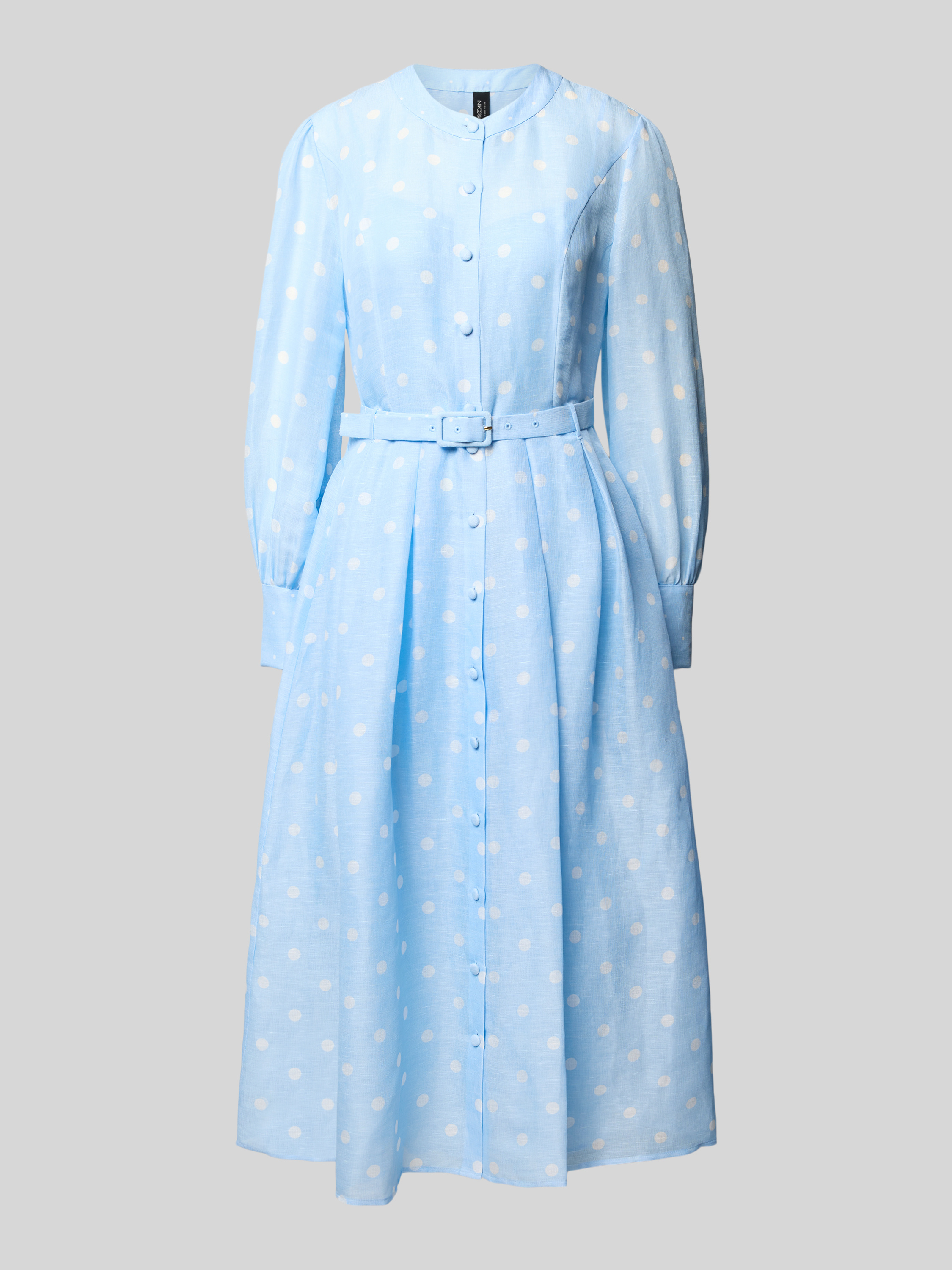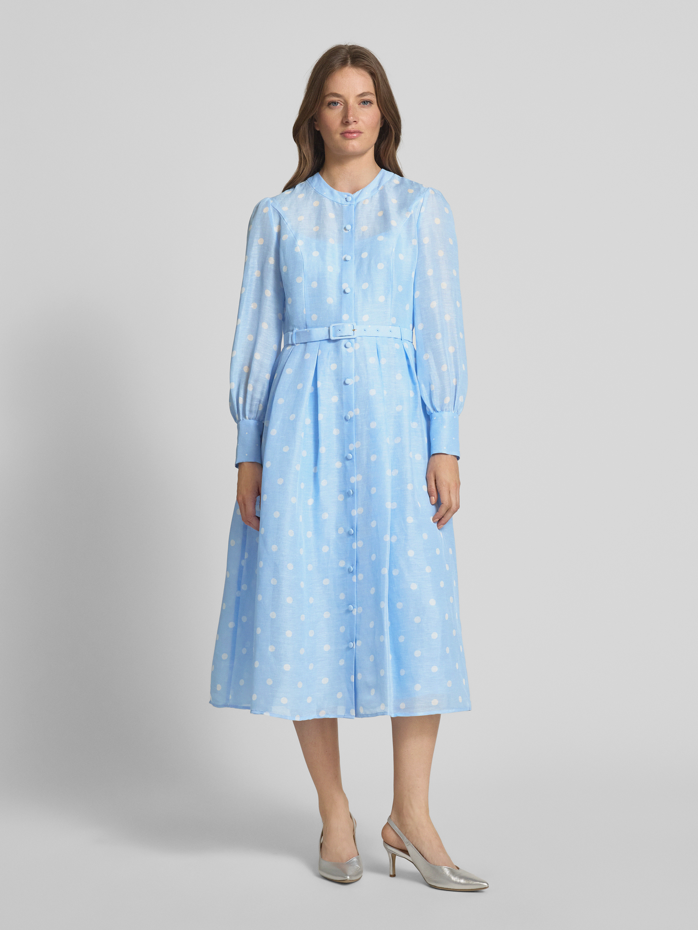 Marc CainMidi-jurk van een mix van linnen en zijde met riem in lichtblauw