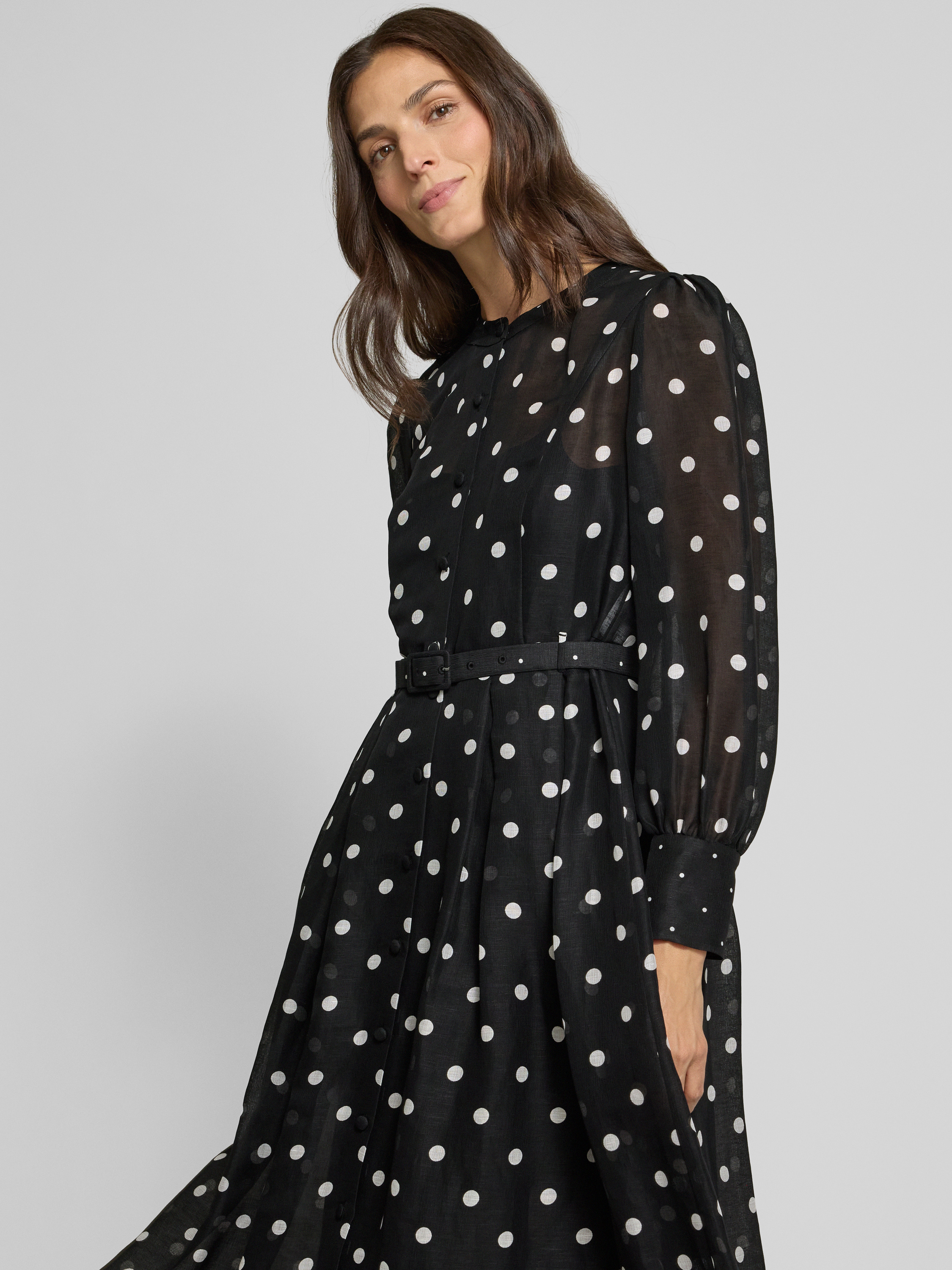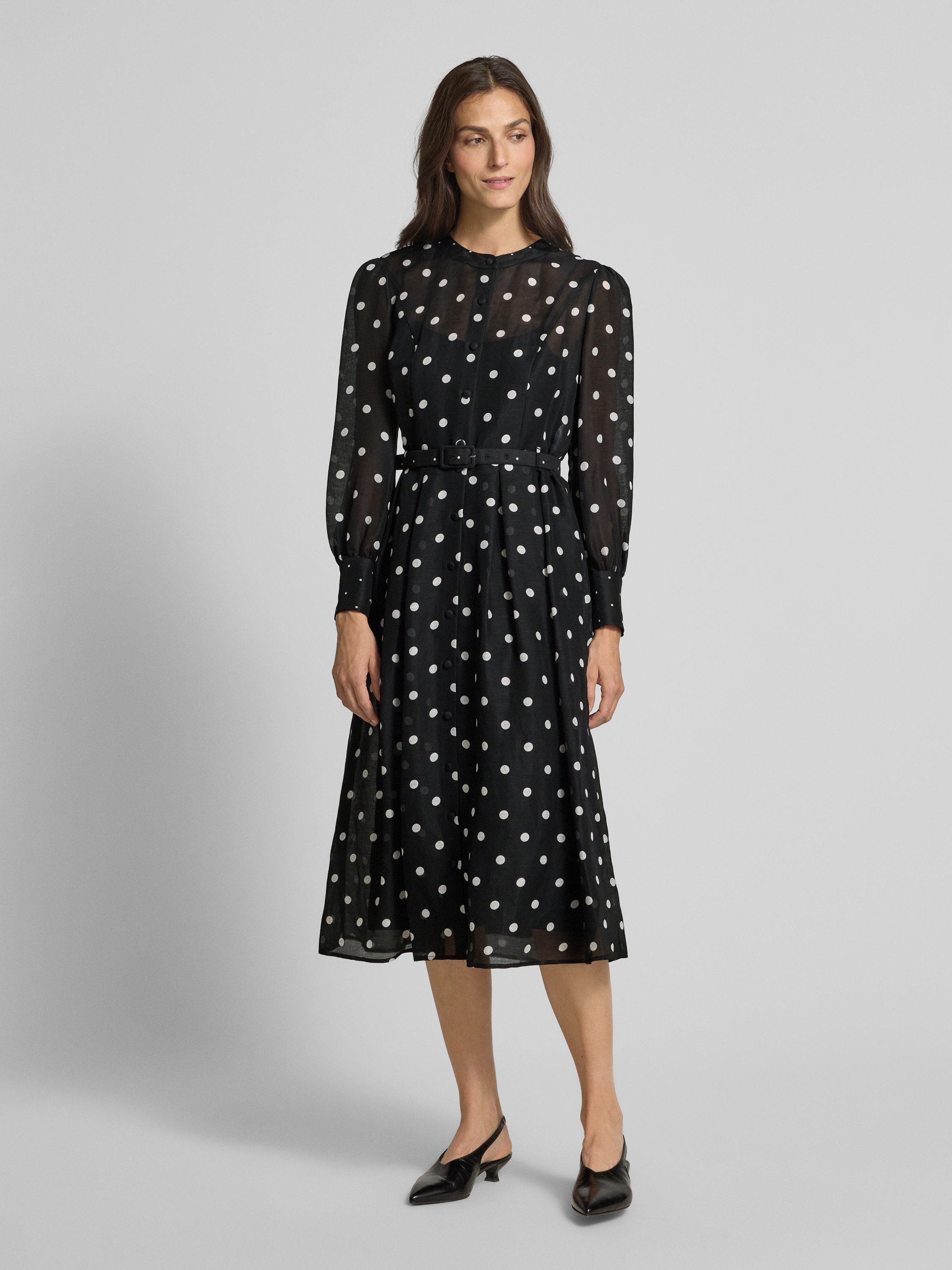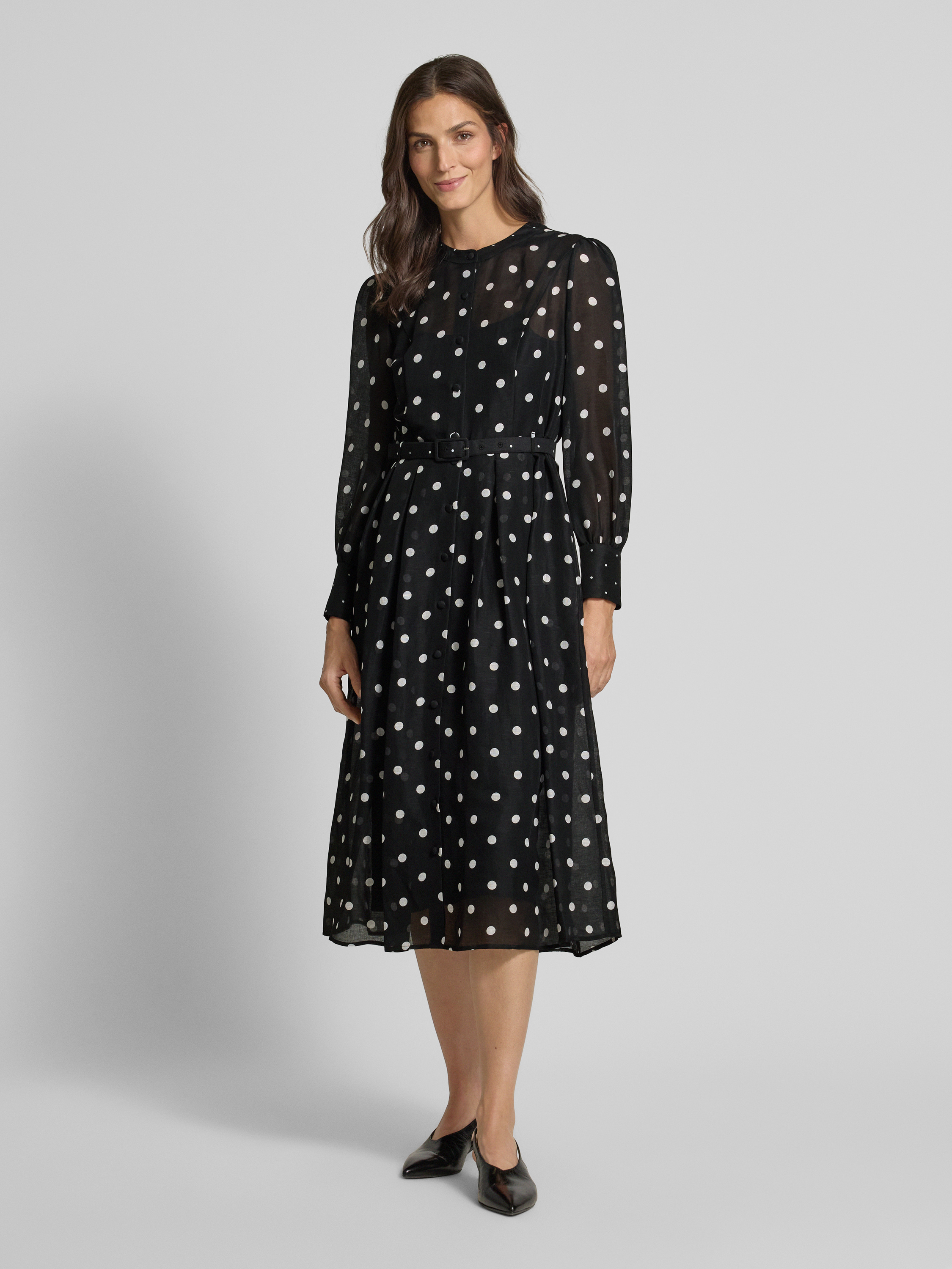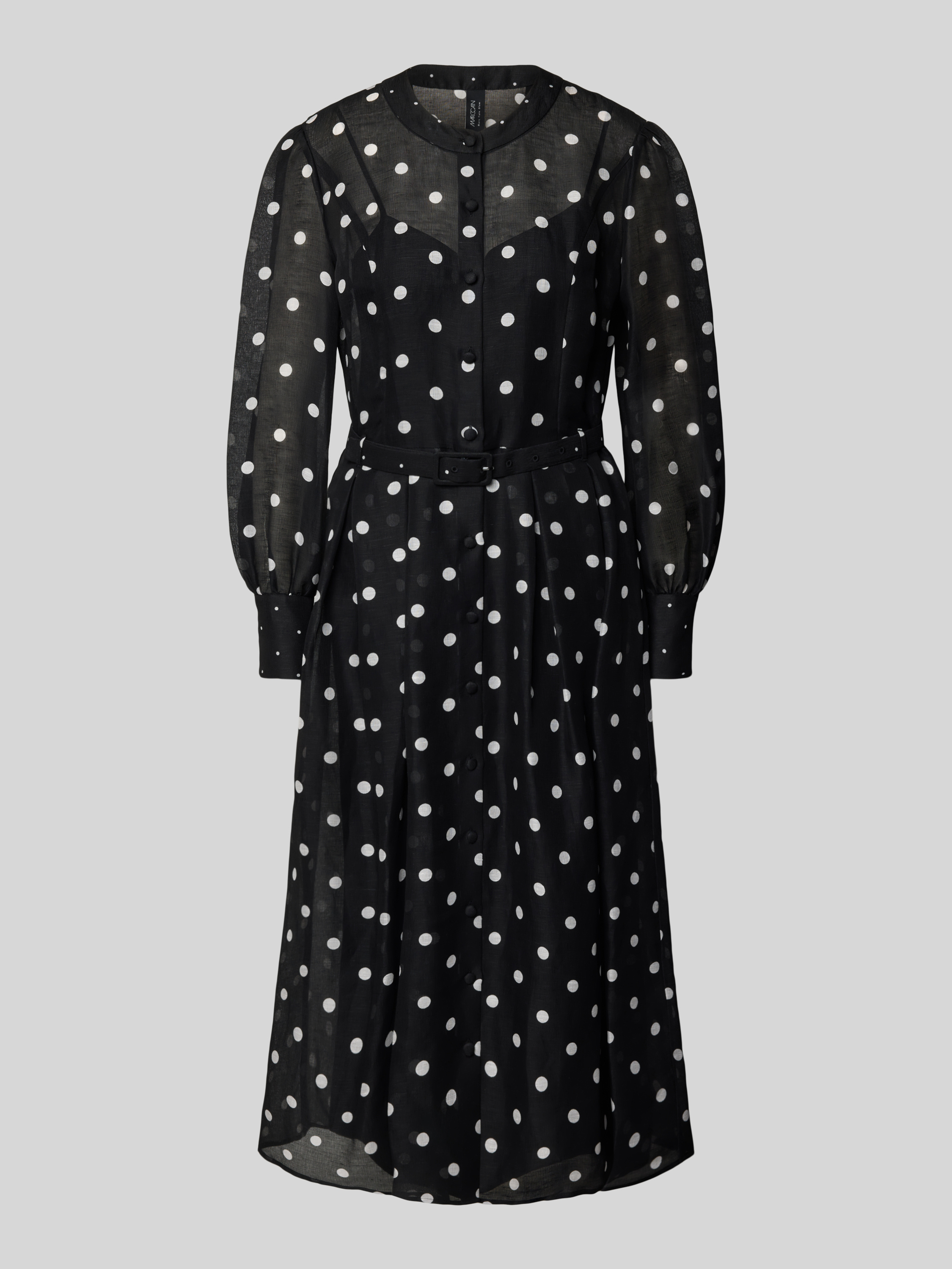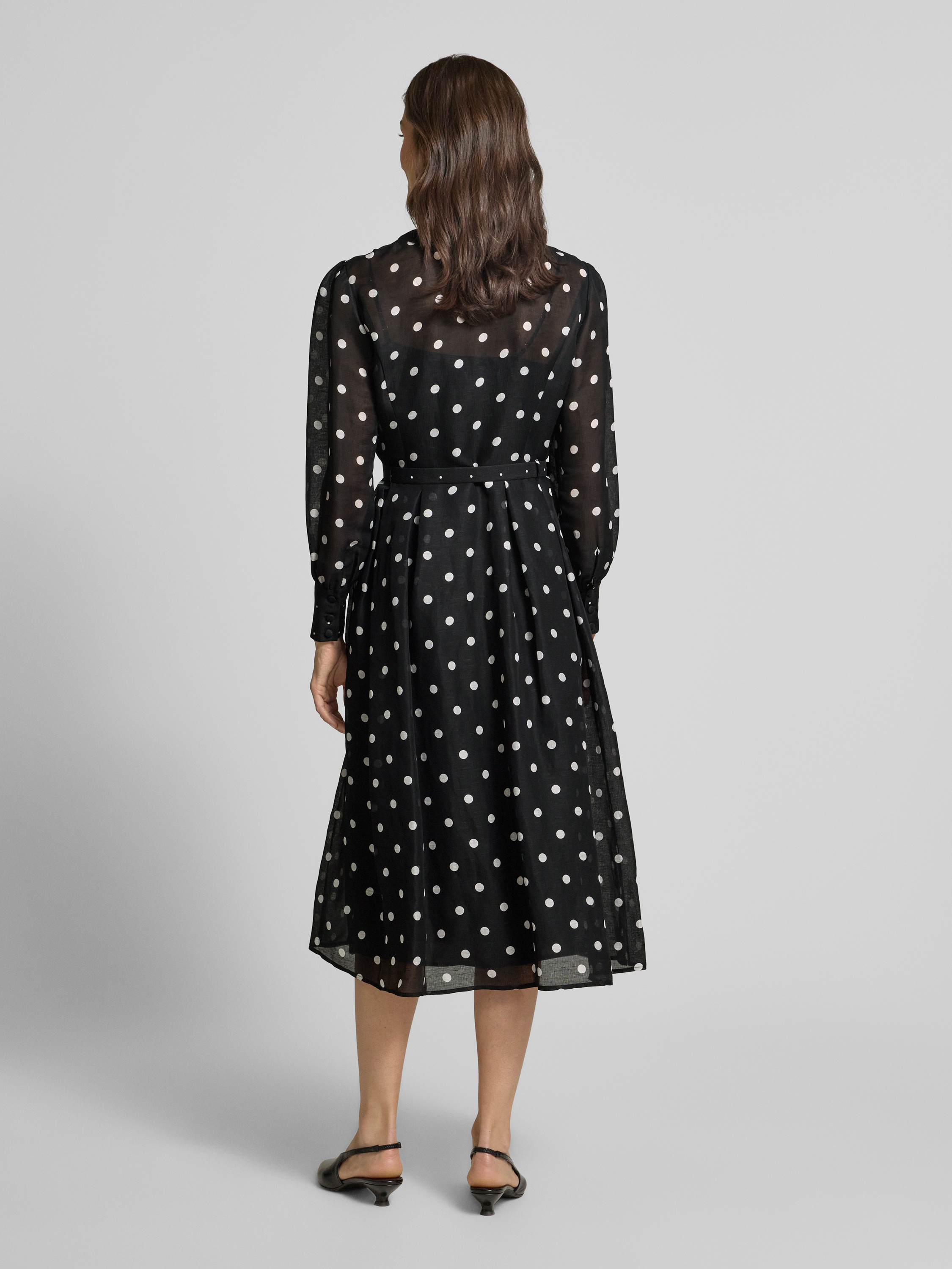 Marc CainMidi-jurk van een mix van linnen en zijde met riem in zwart